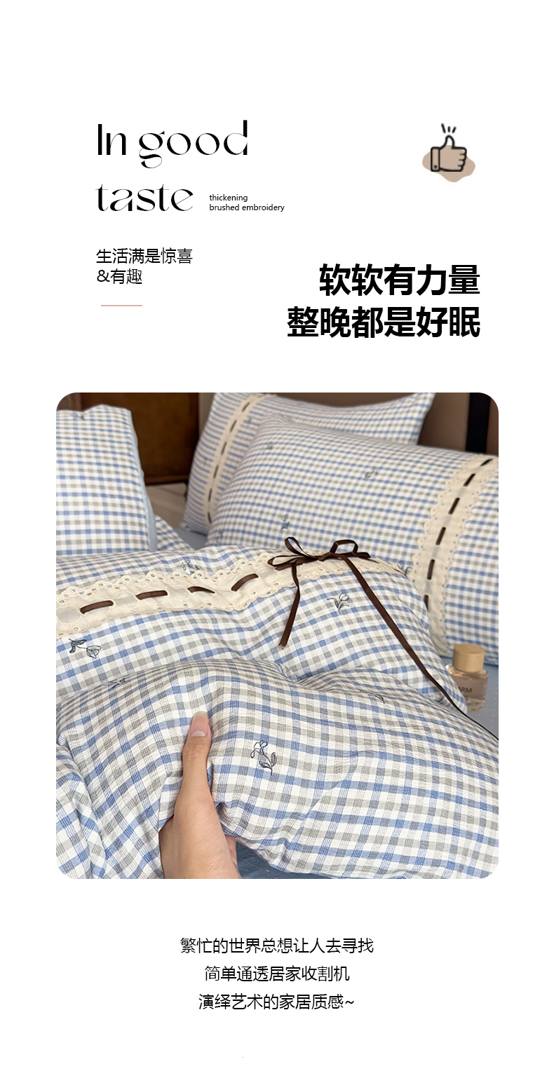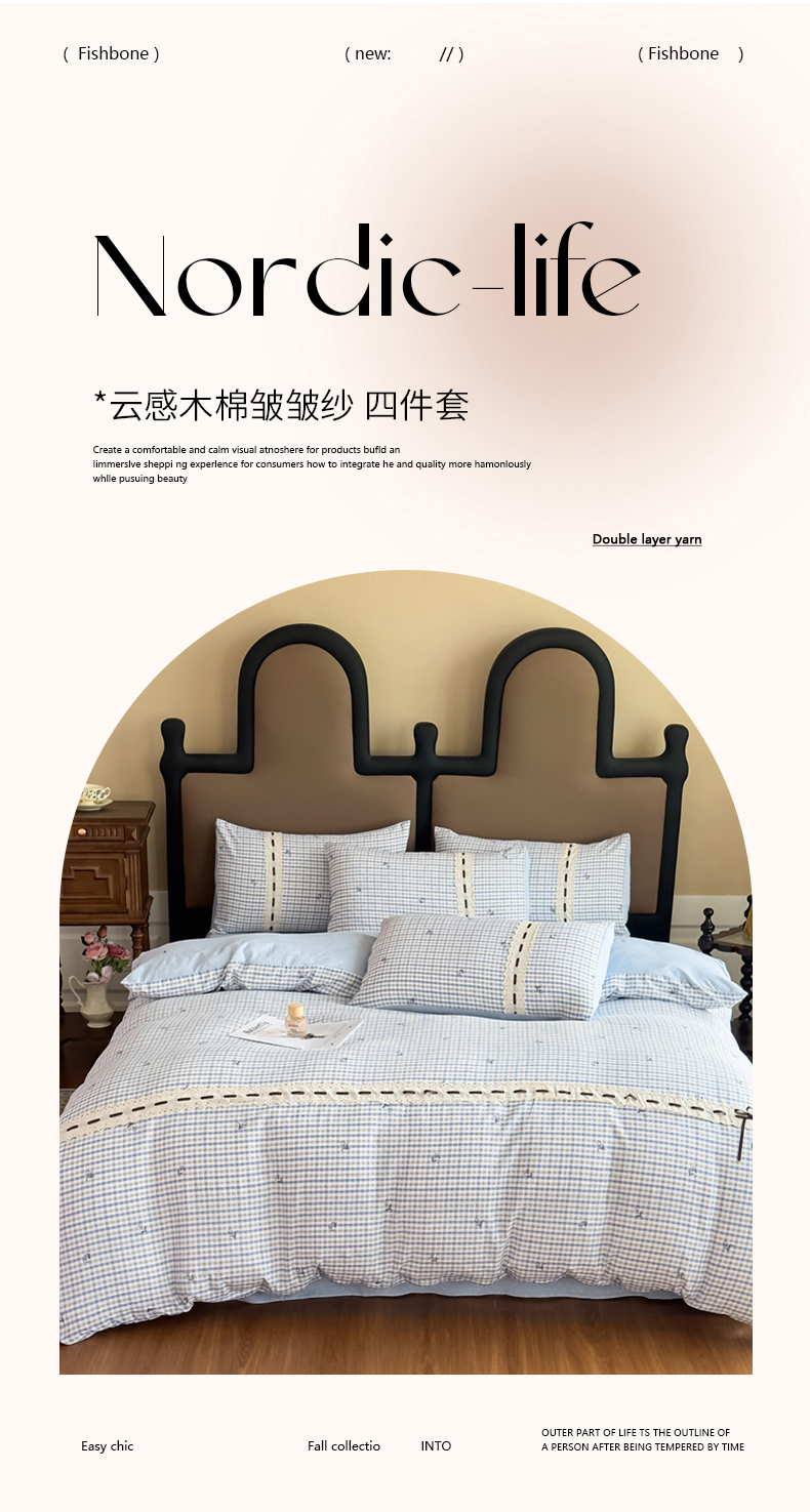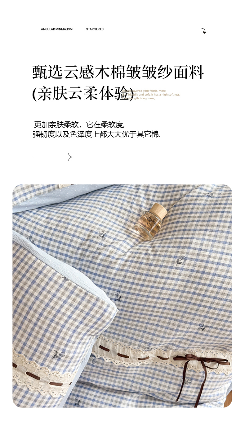 可思家纺2025新款云感木棉皱皱纱四件套 格调兰