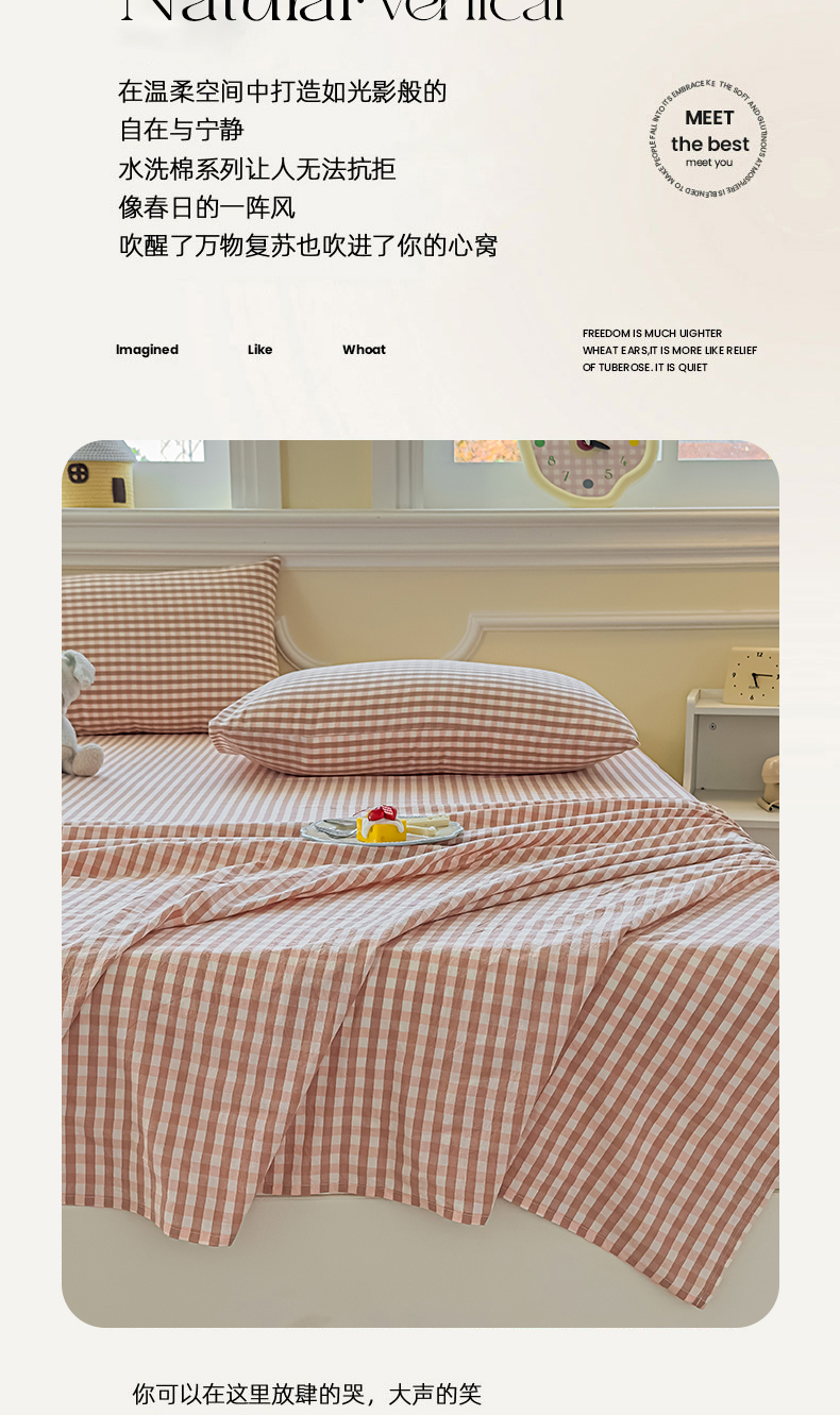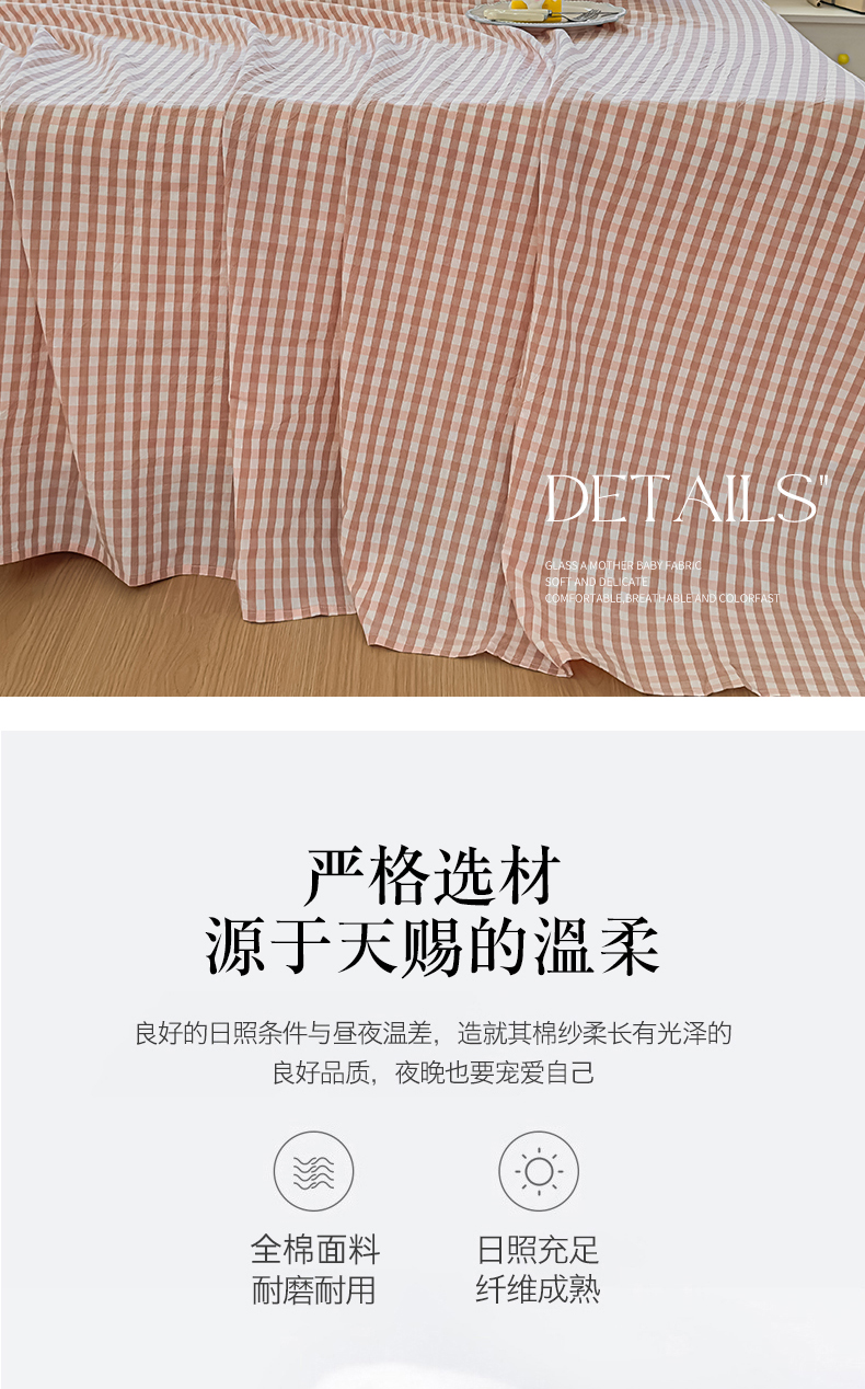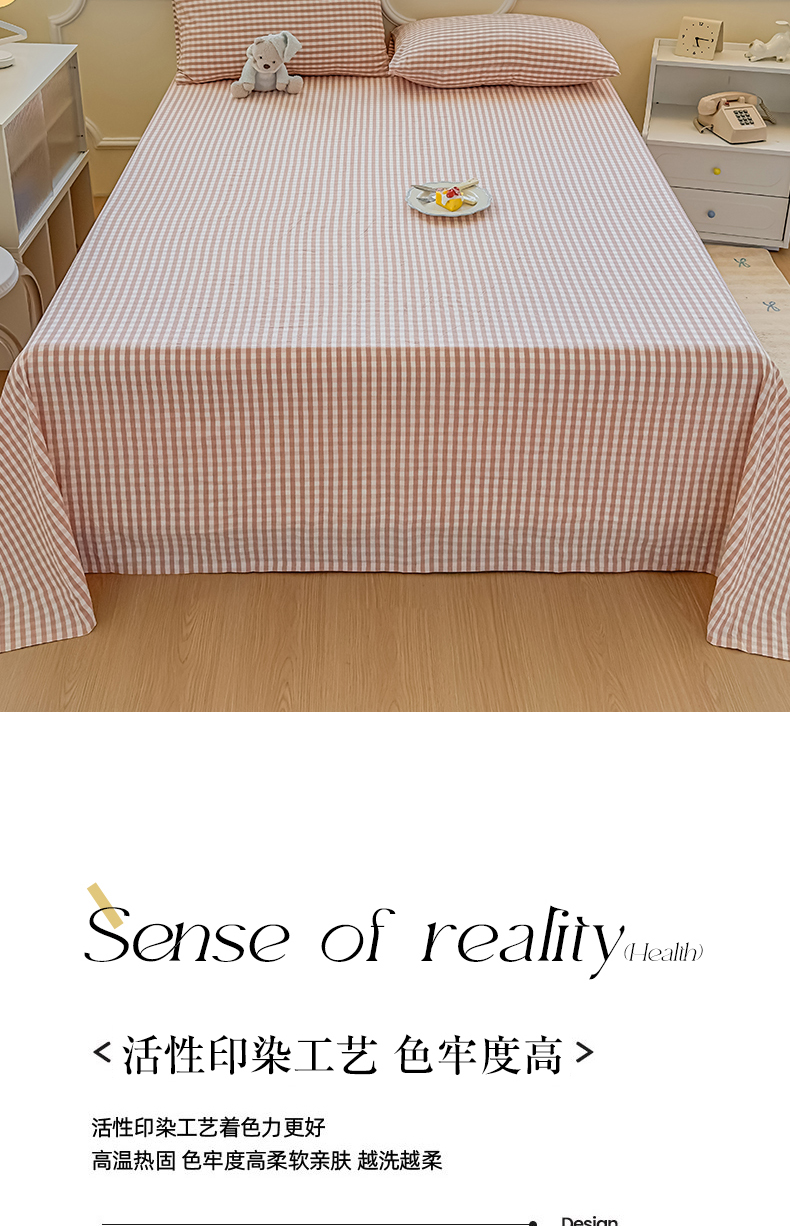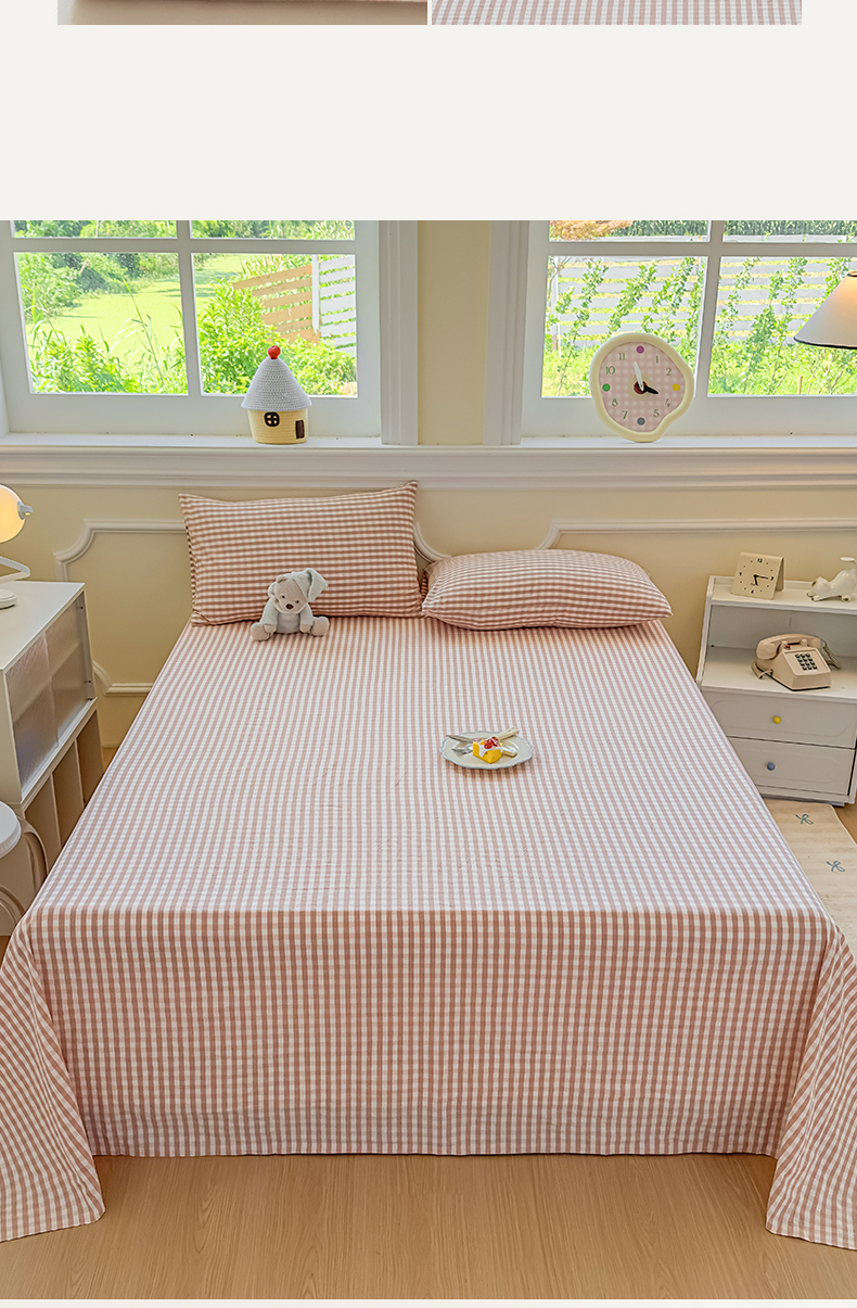 商品名称:菡宝 2025新款全棉纯棉色织水洗棉单床单 粉小格