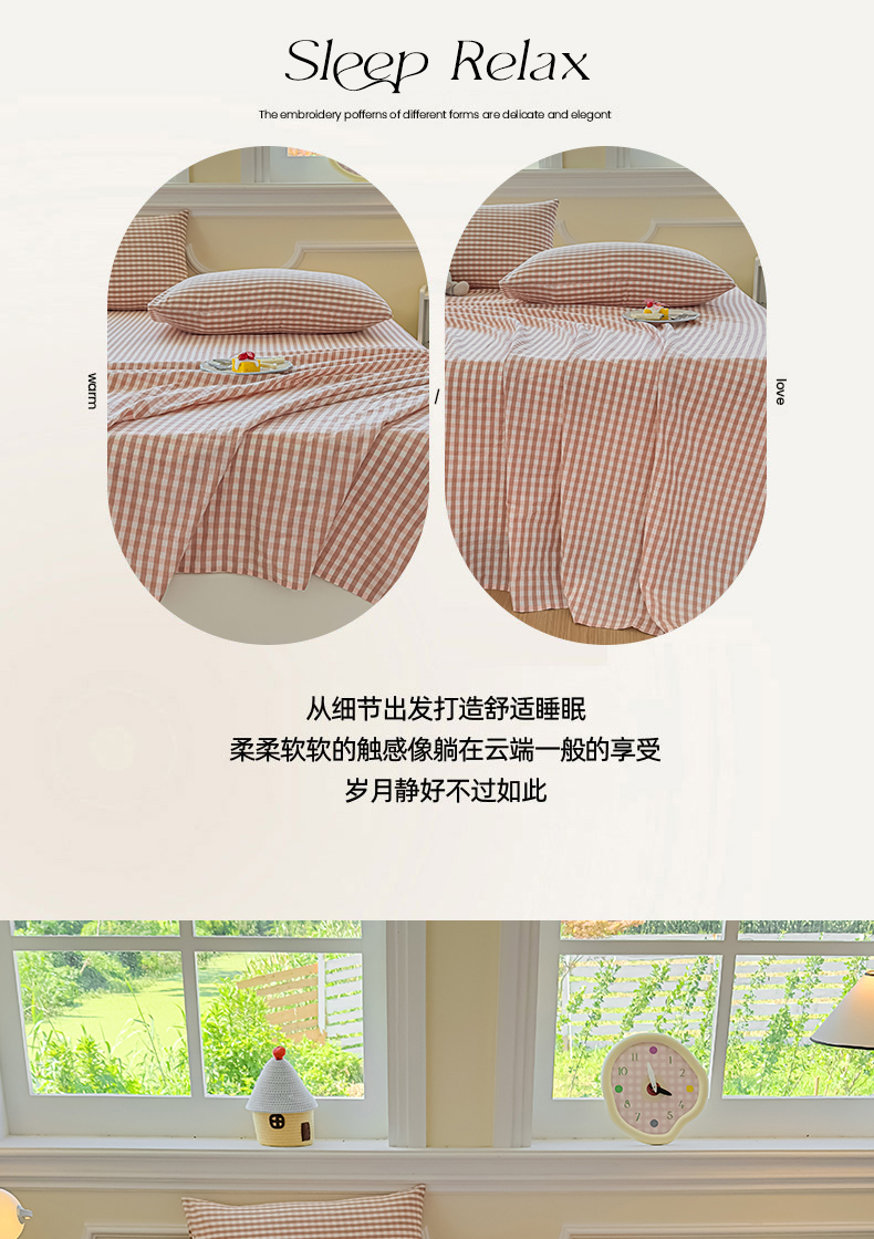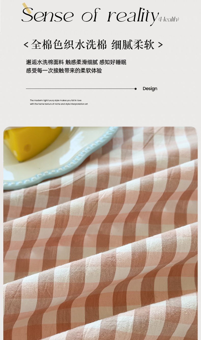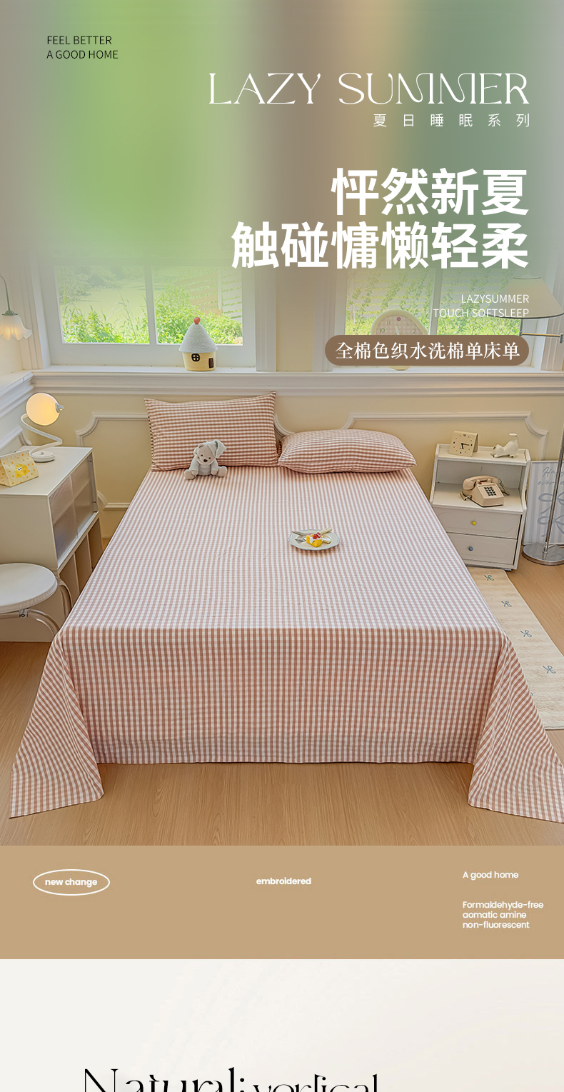 商品名称:菡宝 2025新款全棉纯棉色织水洗棉单床单 粉小格