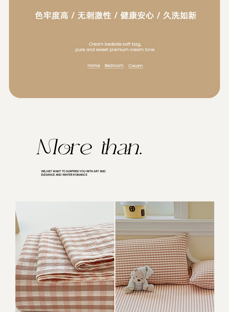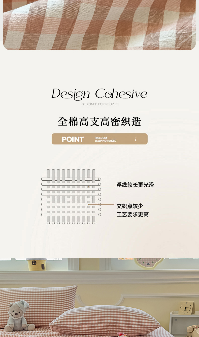 (总)菡宝 2025新款全棉纯棉色织小提花四件套支持定制定做尺寸,暴力熊卡其,暴力熊绿,大方块灰,大方块紫,千鸟格白,千鸟格灰,千鸟格绿,四叶草卡其