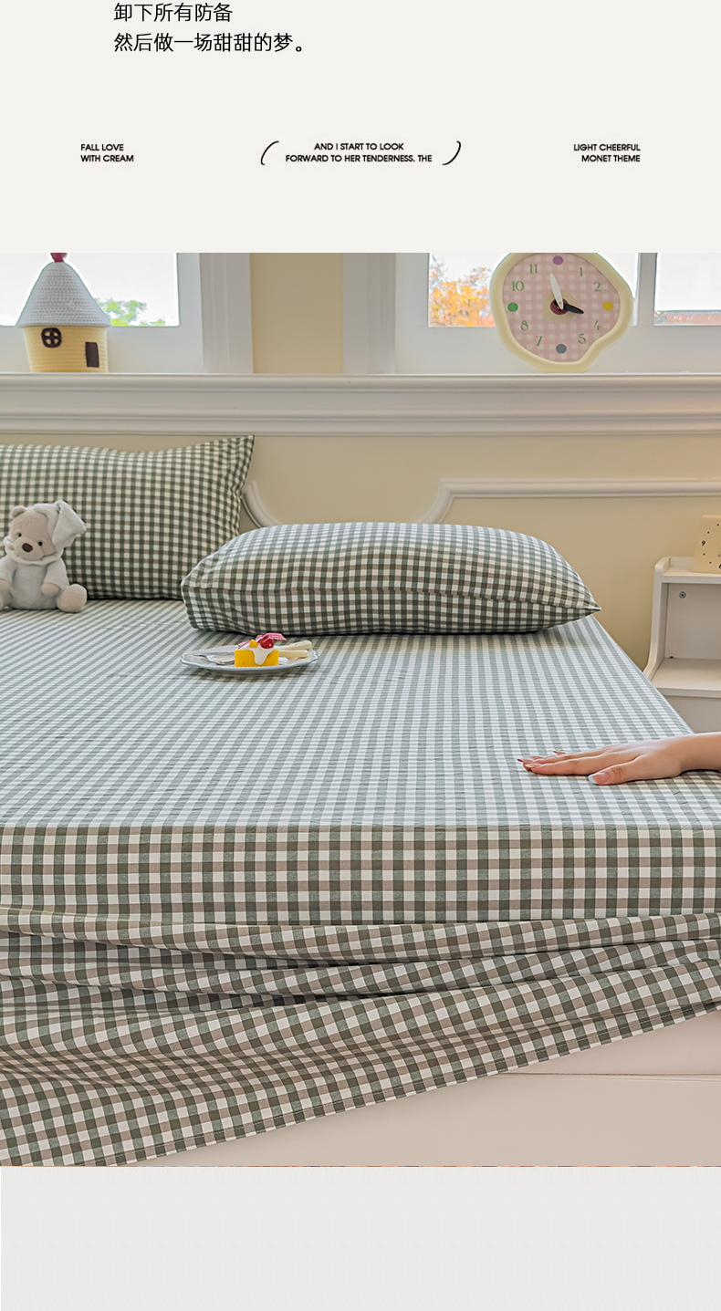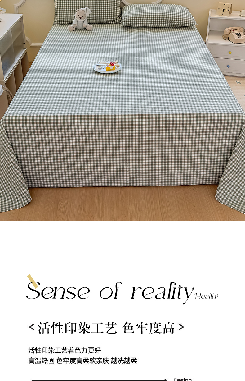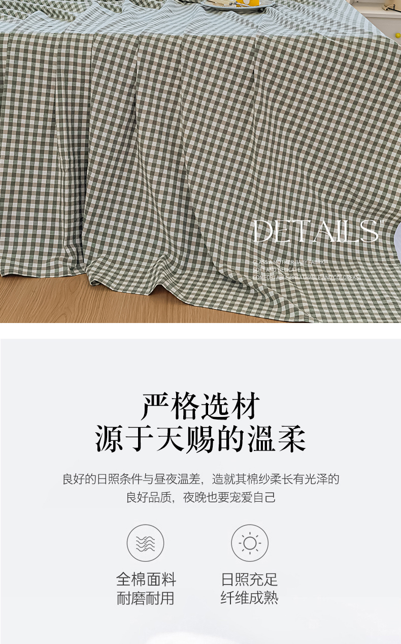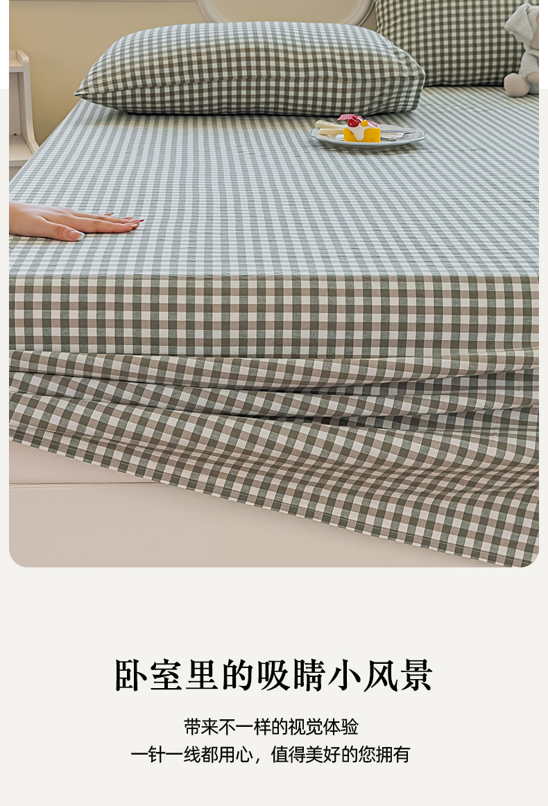 商品名称:菡宝 2025新款全棉纯棉色织水洗棉单床单 绿小格
