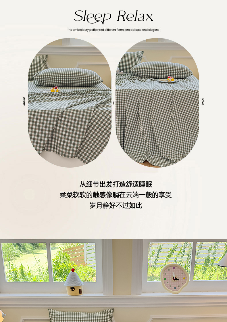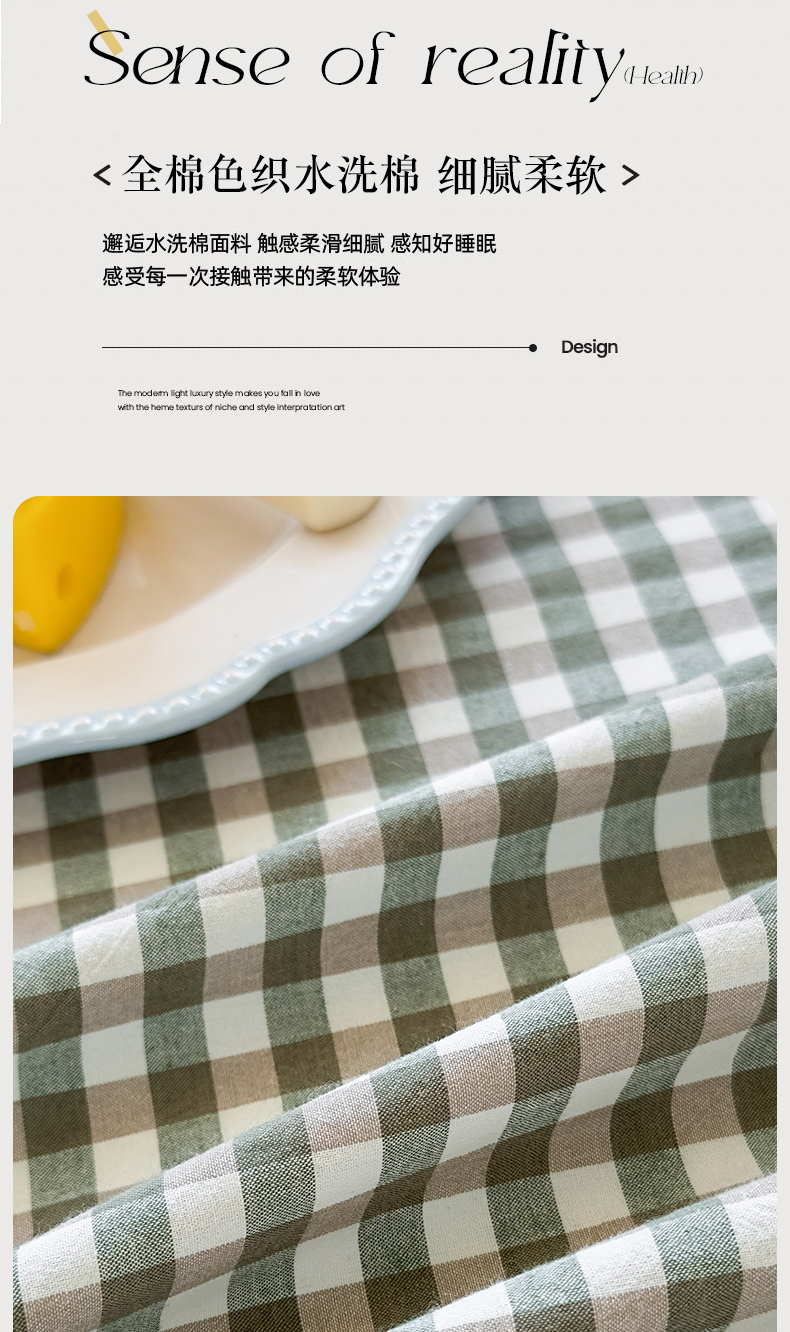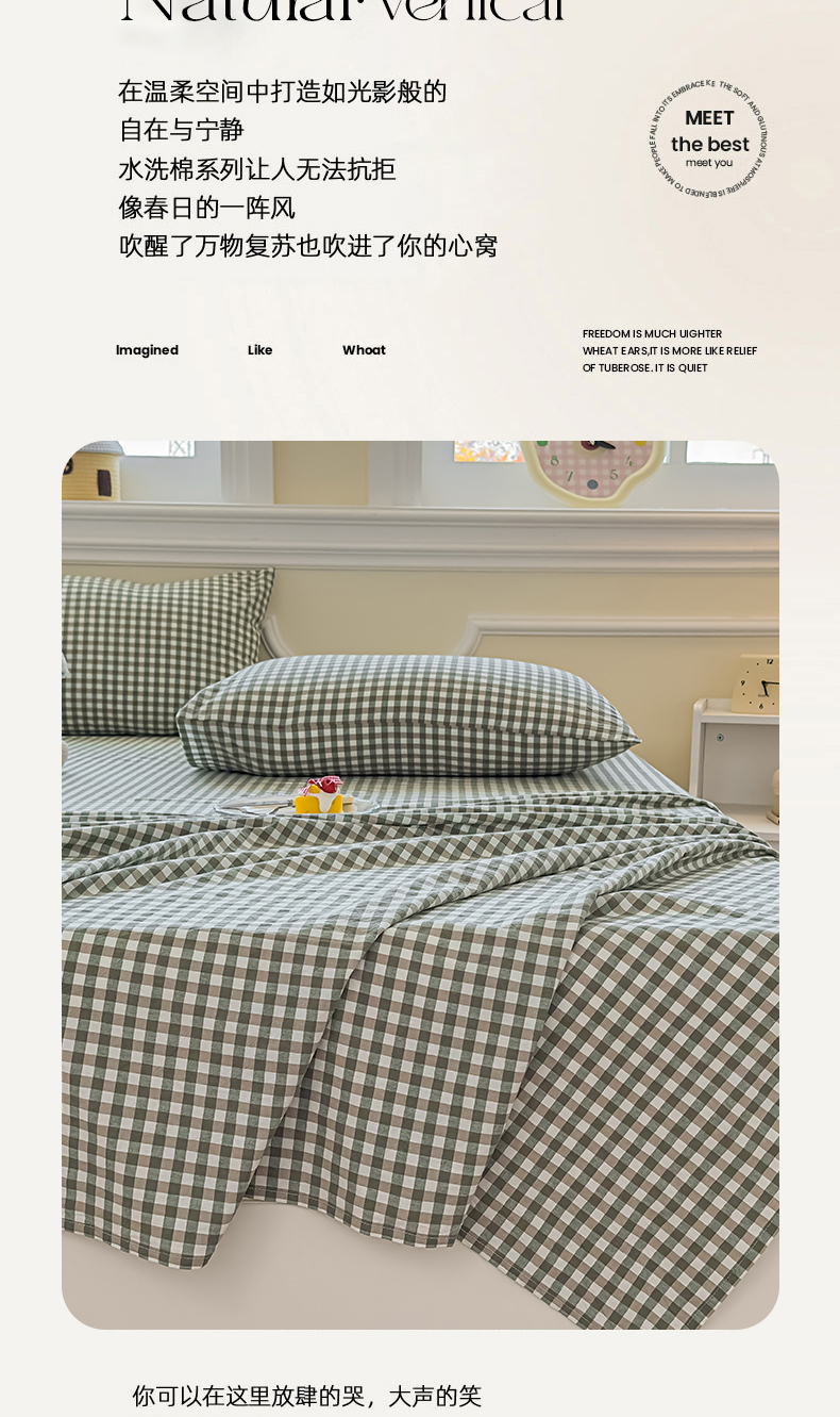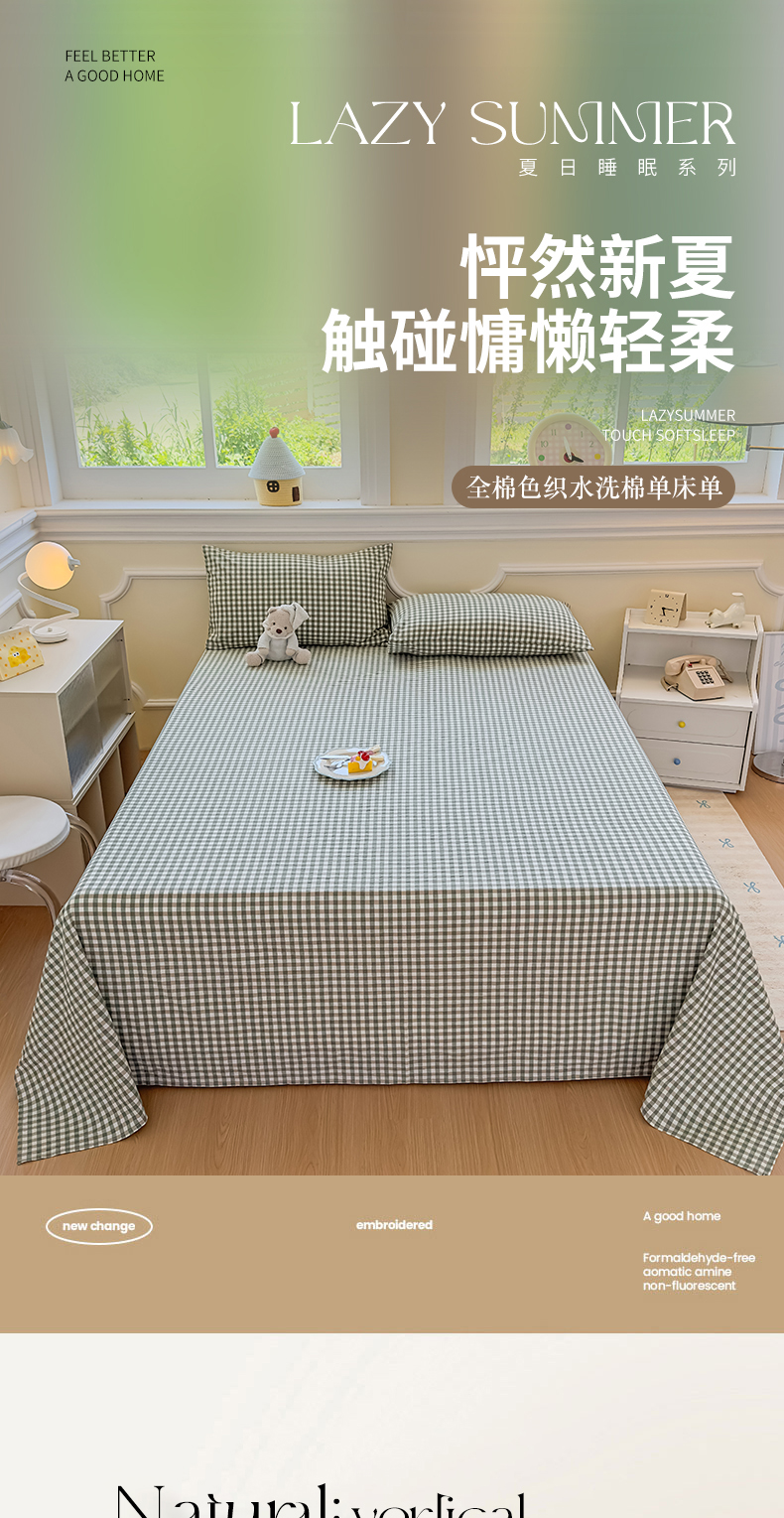 商品名称:菡宝 2025新款全棉纯棉色织水洗棉单床单 绿小格