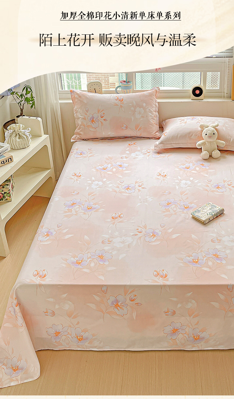 商品名称:恩泽家纺 2025新款加厚全棉纯棉印花系列床单单件-单床单 娇姿