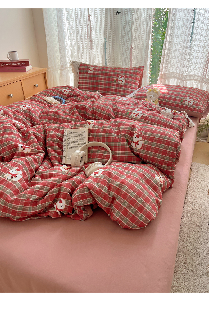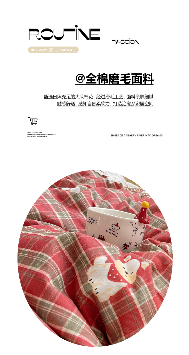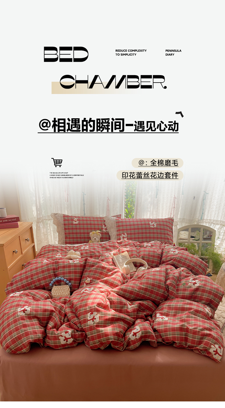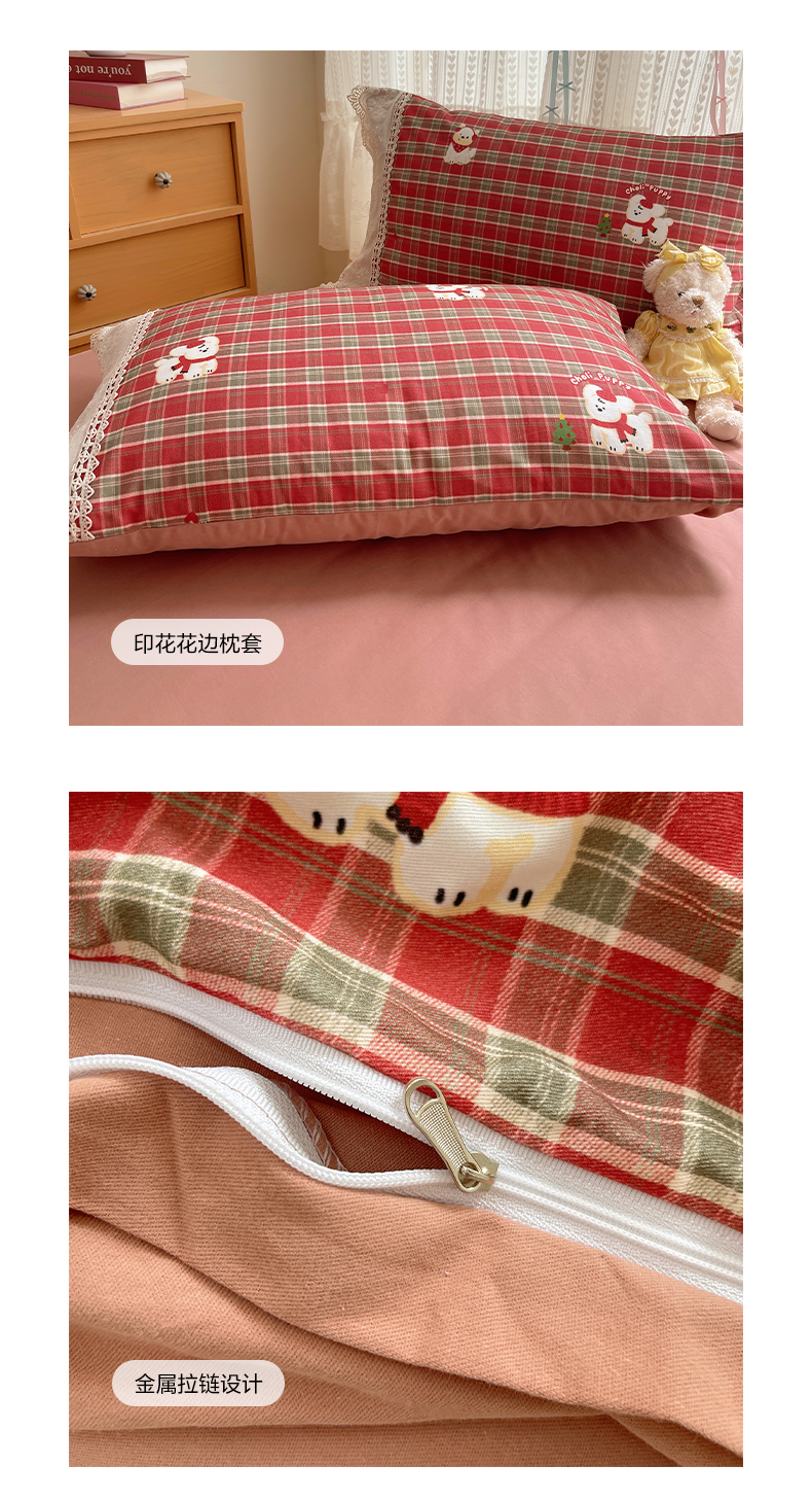 当前位置: 91家纺网 > 商品网购 > 床品套件 > 四件套 > 全棉普通四件套 > 雅居纺家纺 2025新款全棉纯棉韩版花边磨毛四件套 花边红色小狗