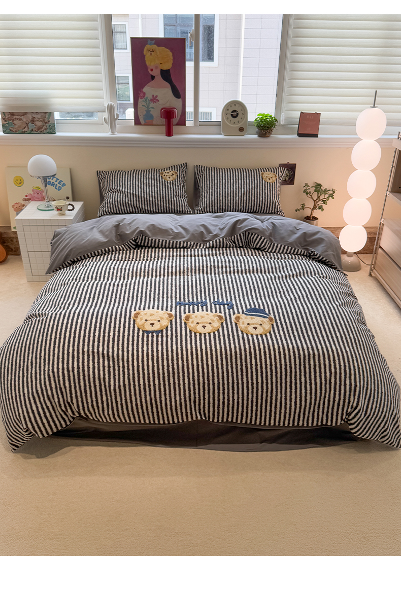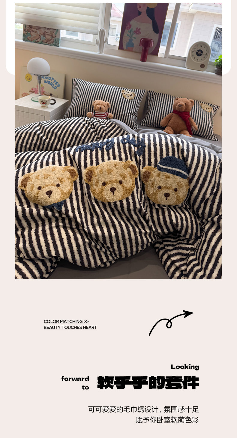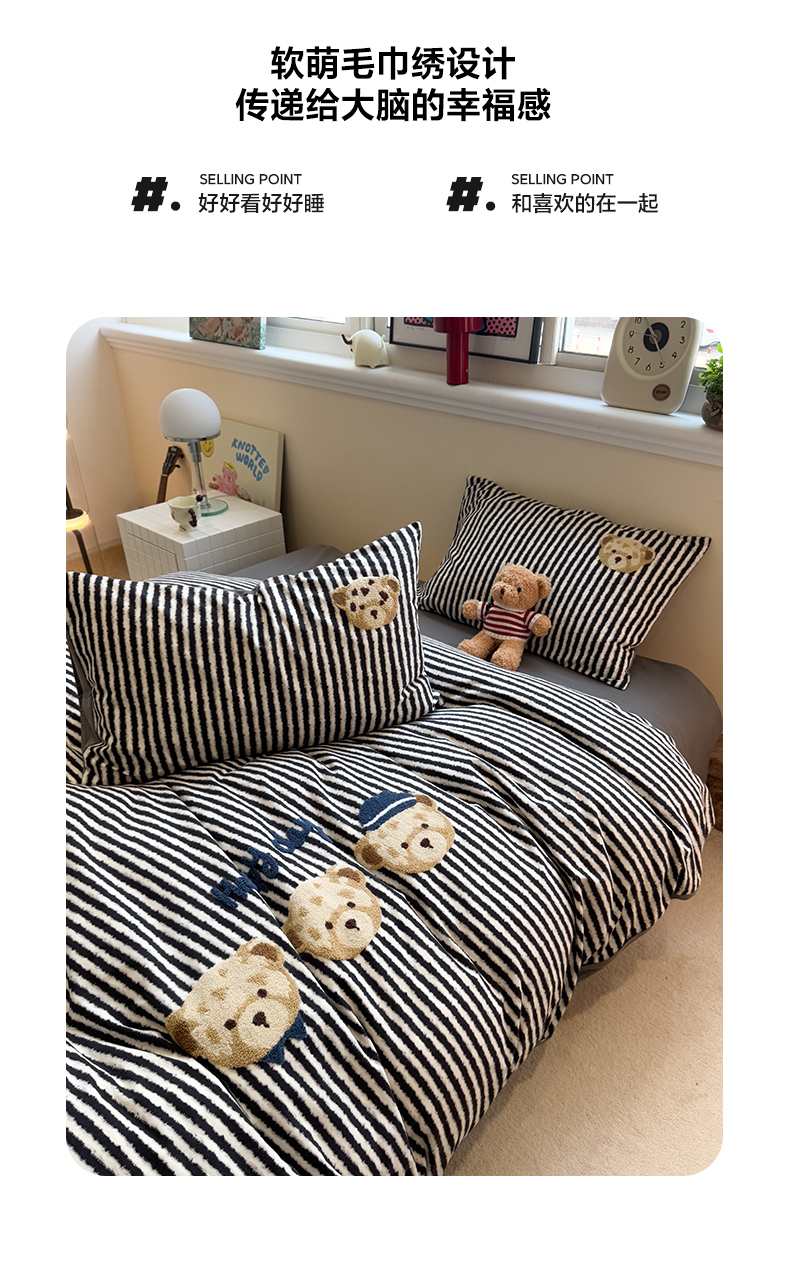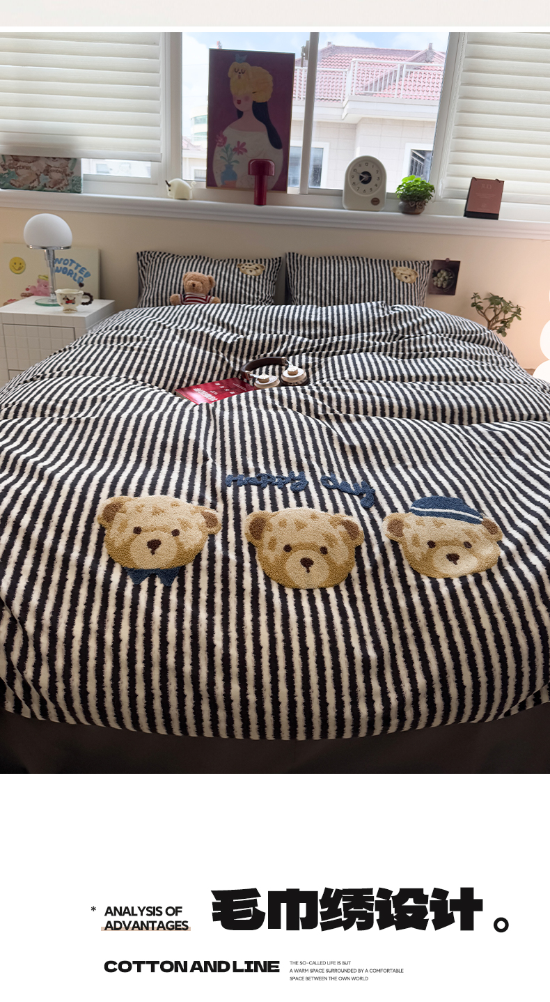 当前位置: 91家纺网 > 商品网购 > 床品套件 > 四件套 > 全棉普通四件套 > 雅居纺家纺 2025新款全棉纯棉磨毛毛巾绣四件套 快乐小熊