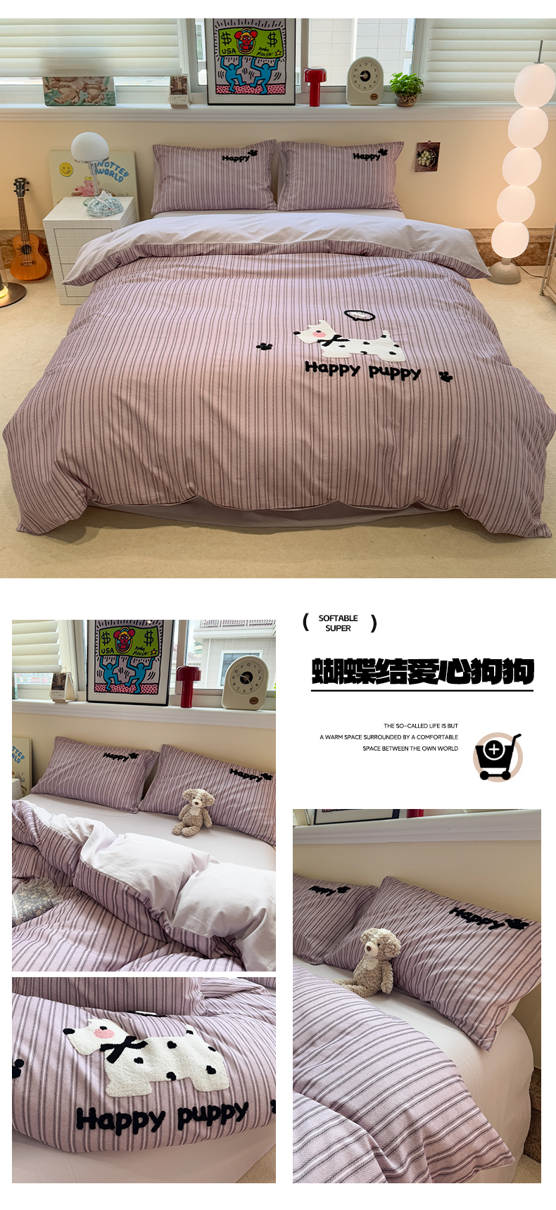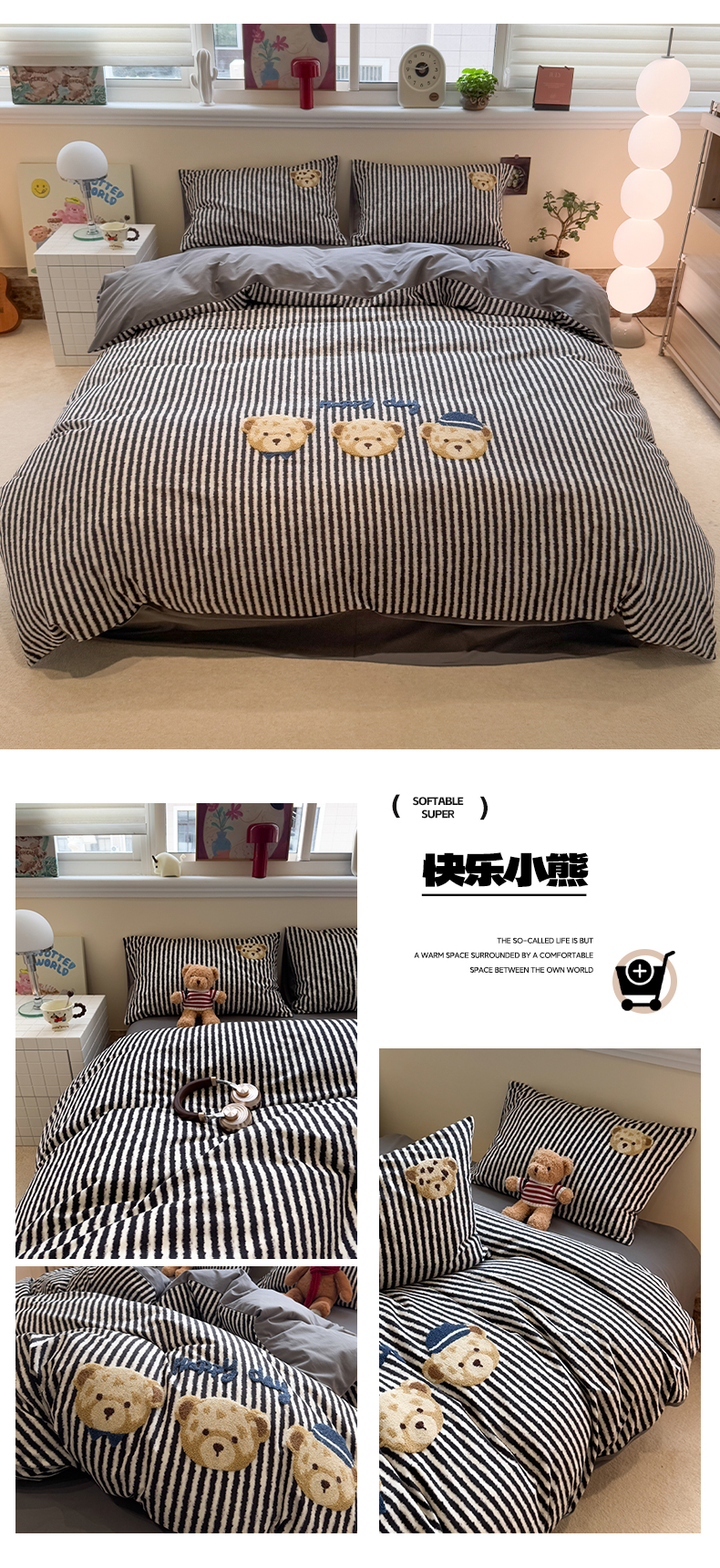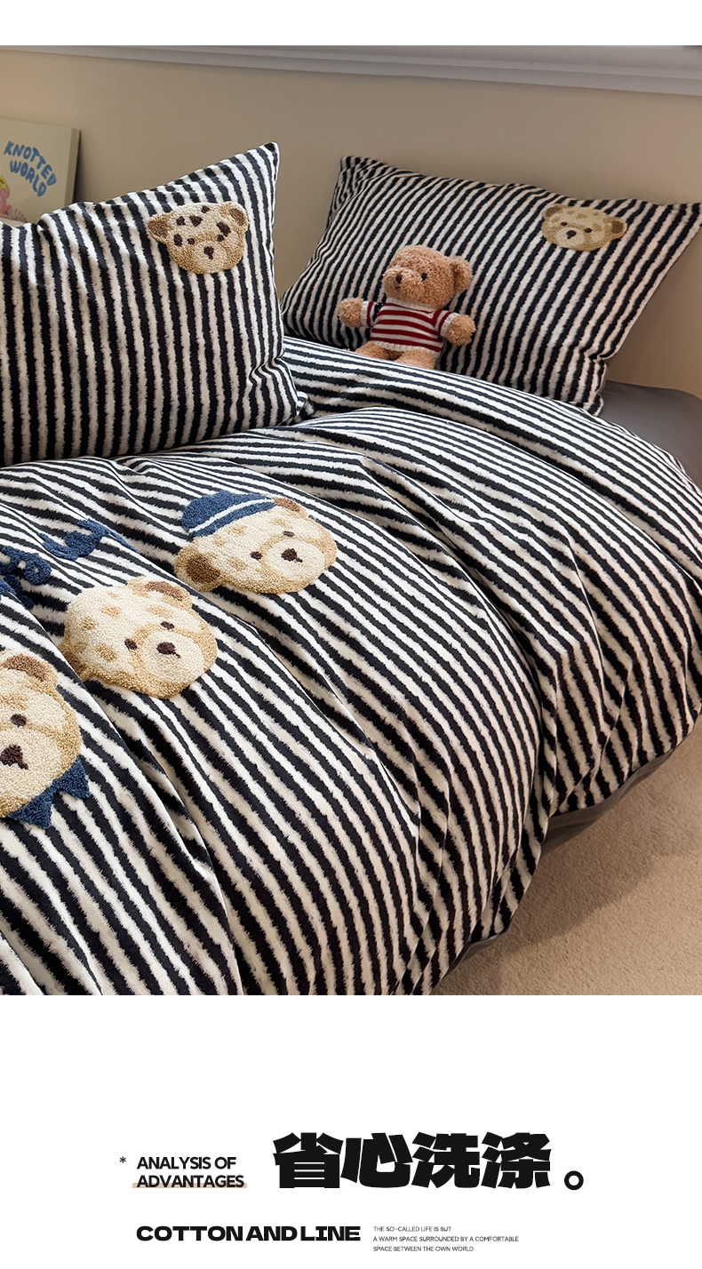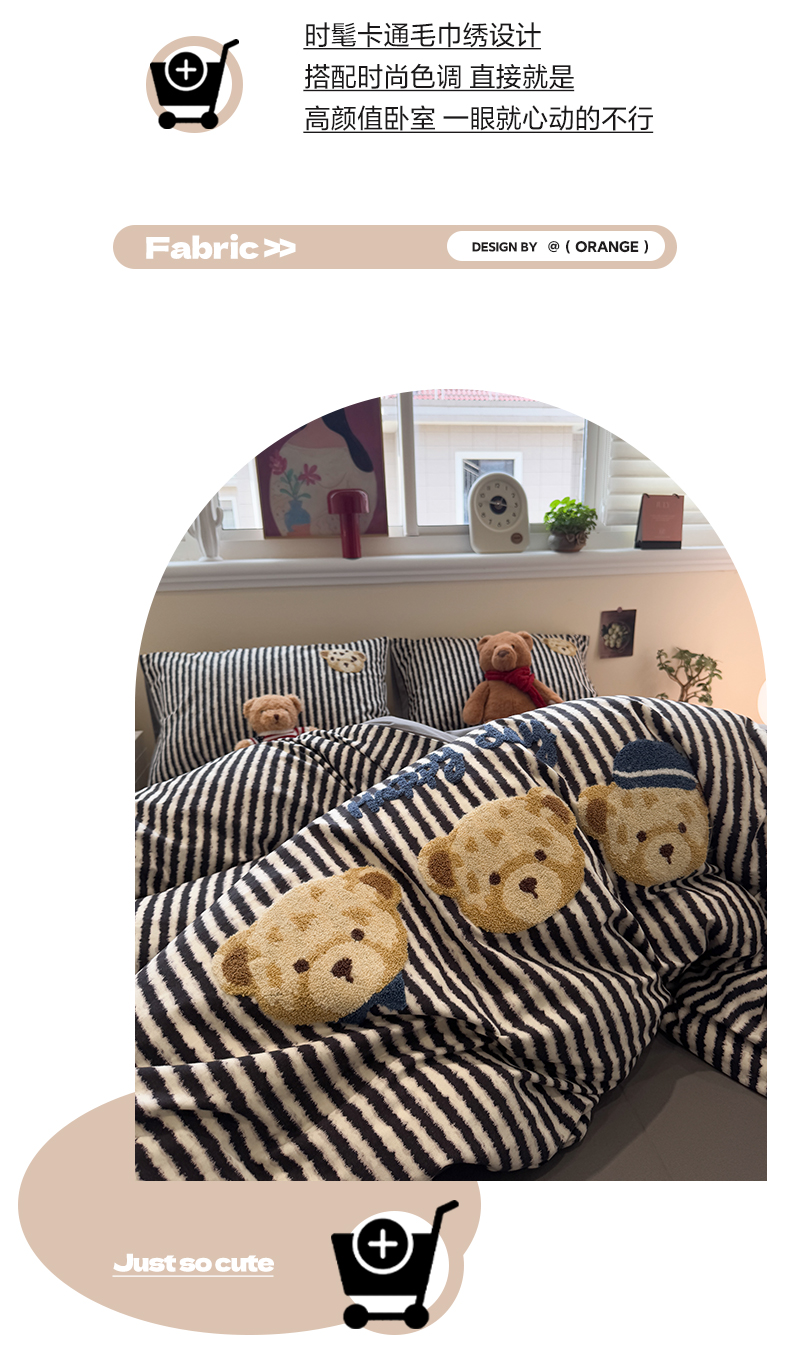 当前位置: 91家纺网 > 商品网购 > 床品套件 > 四件套 > 全棉普通四件套 > 雅居纺家纺 2025新款全棉纯棉磨毛毛巾绣四件套 快乐小熊