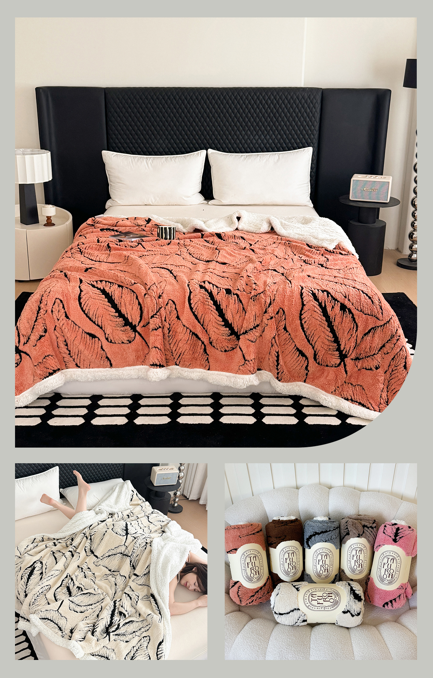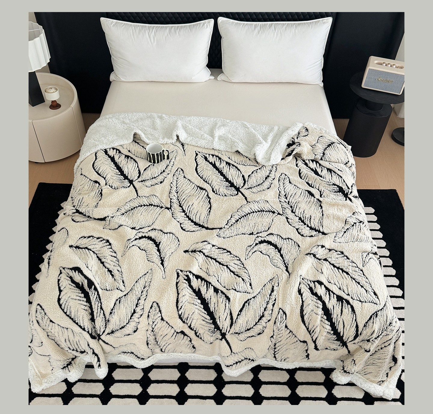 (总)丹本家纺 2025新款双层阳离子叶子提花塔芙绒羊羔绒跨境双层毛毯盖毯毯子