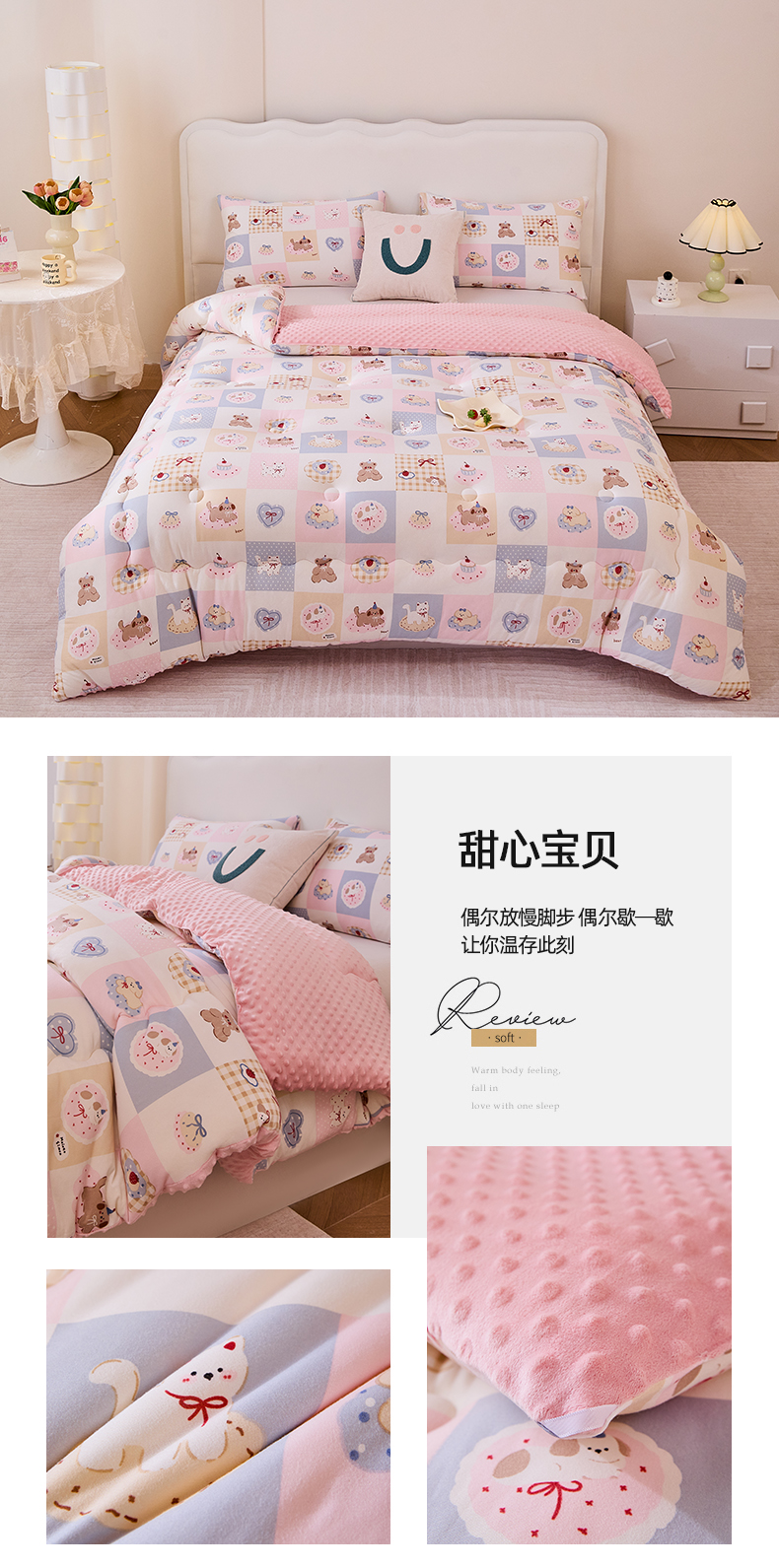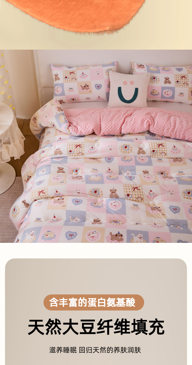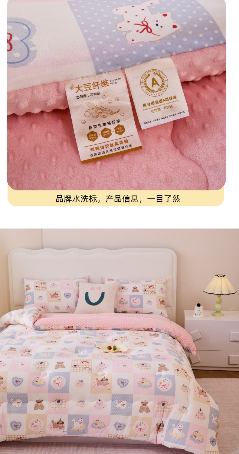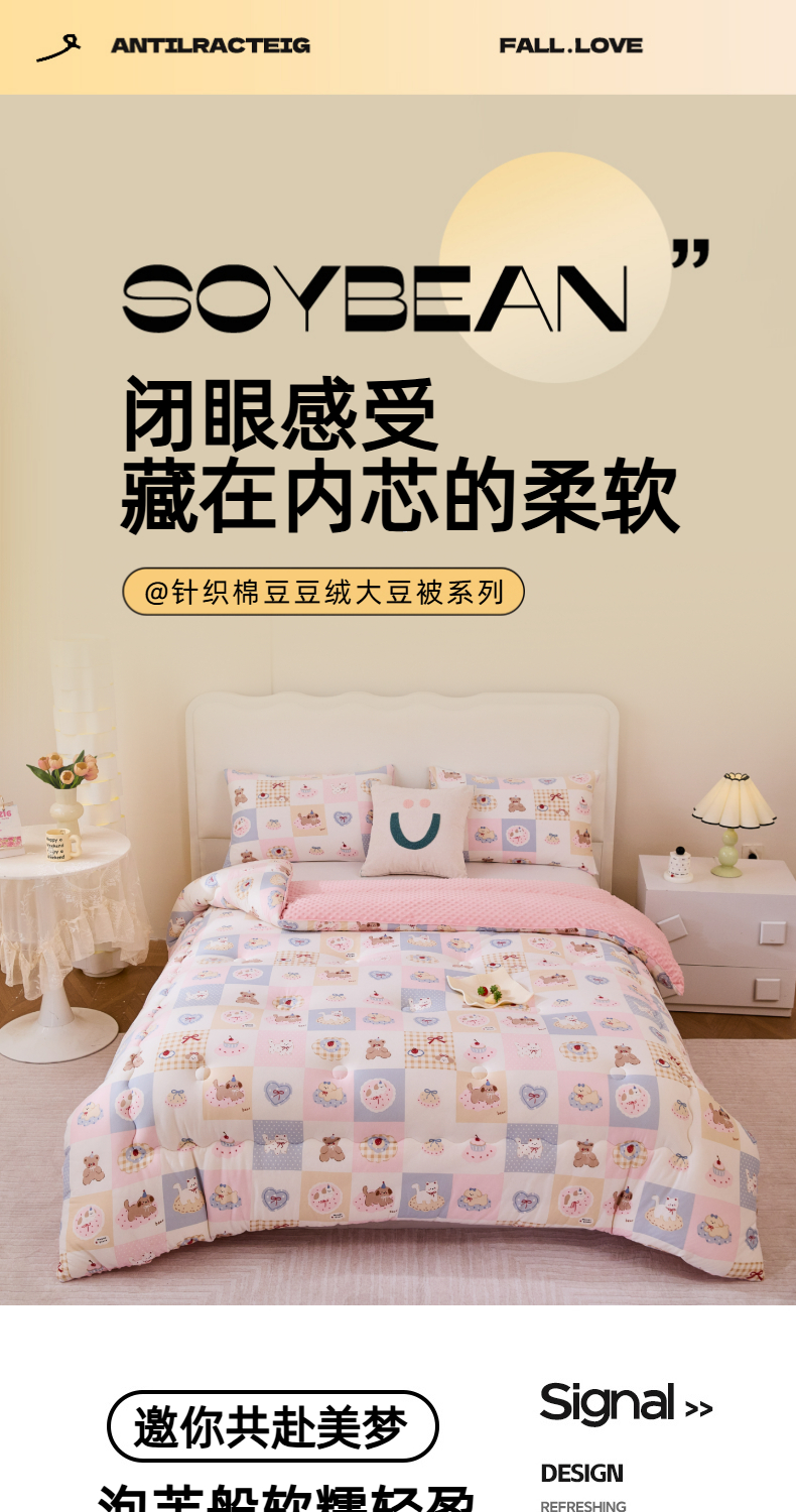 • 91家纺网 家纺一手货源 找家纺 天瑜家纺 2025新款针织棉豆豆绒大豆被冬被被子被芯 甜心宝贝