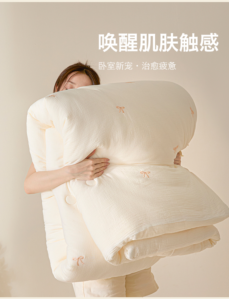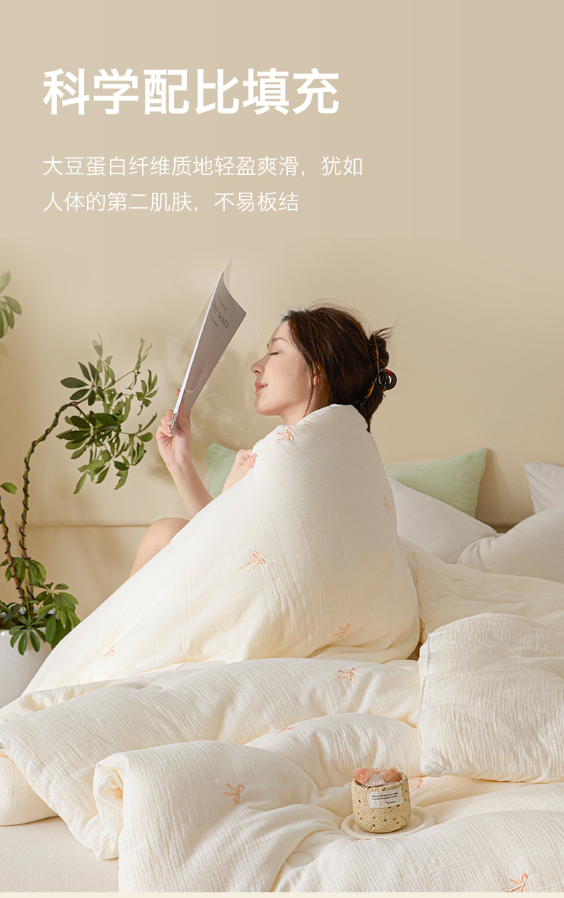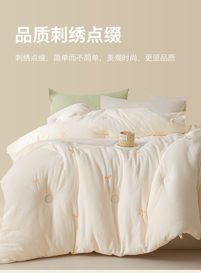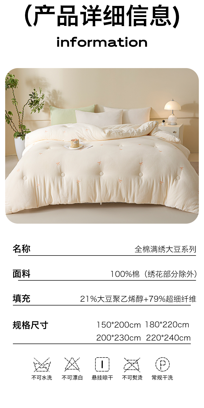 • 91家纺网 家纺一手货源 找家纺 创优家纺 2025新款专版绣花全棉满绣刺绣21%大豆被纯棉被芯被子春秋被加厚冬被夏被直播 蝴蝶结