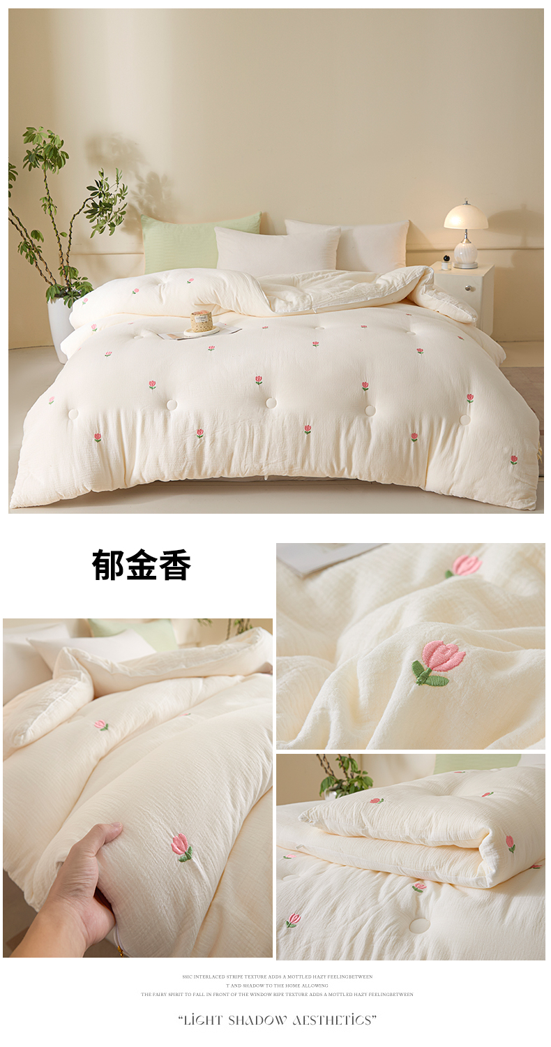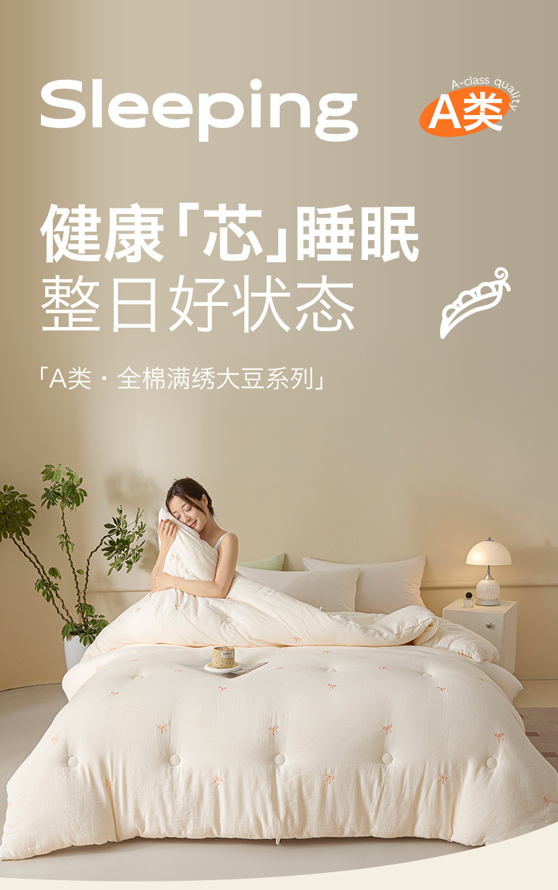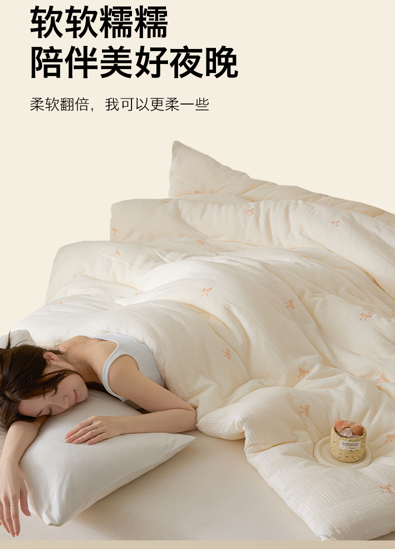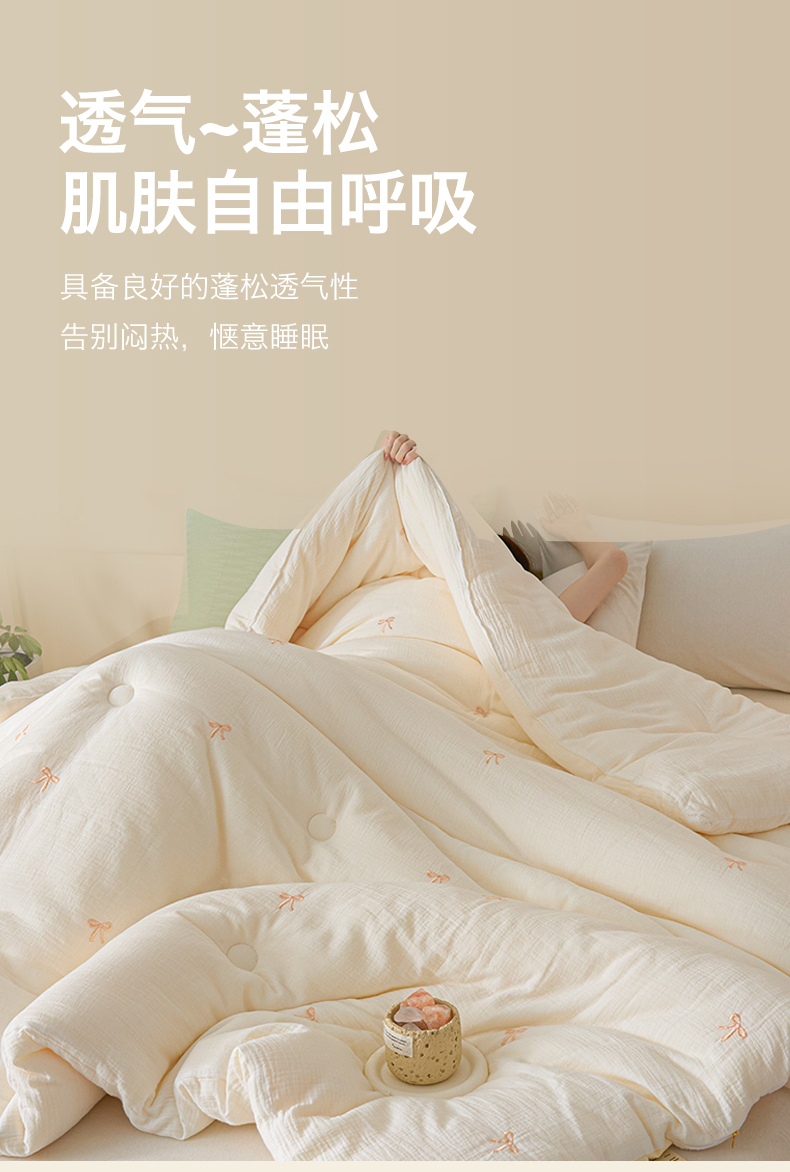 • 91家纺网 家纺一手货源 找家纺 创优家纺 2025新款专版绣花全棉满绣刺绣21%大豆被纯棉被芯被子春秋被加厚冬被夏被直播 蝴蝶结