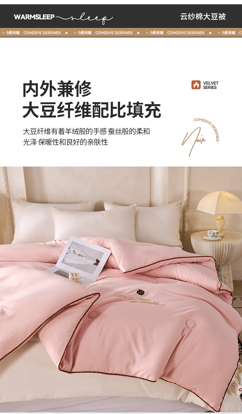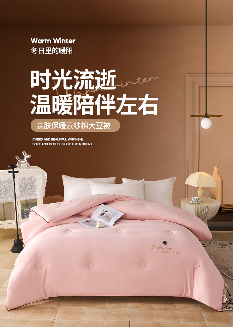 商品名称:爱诗诺家纺 2025年新款3D立体烫画亲肤保暖云纱棉大豆被被子被芯 云纱棉-粉