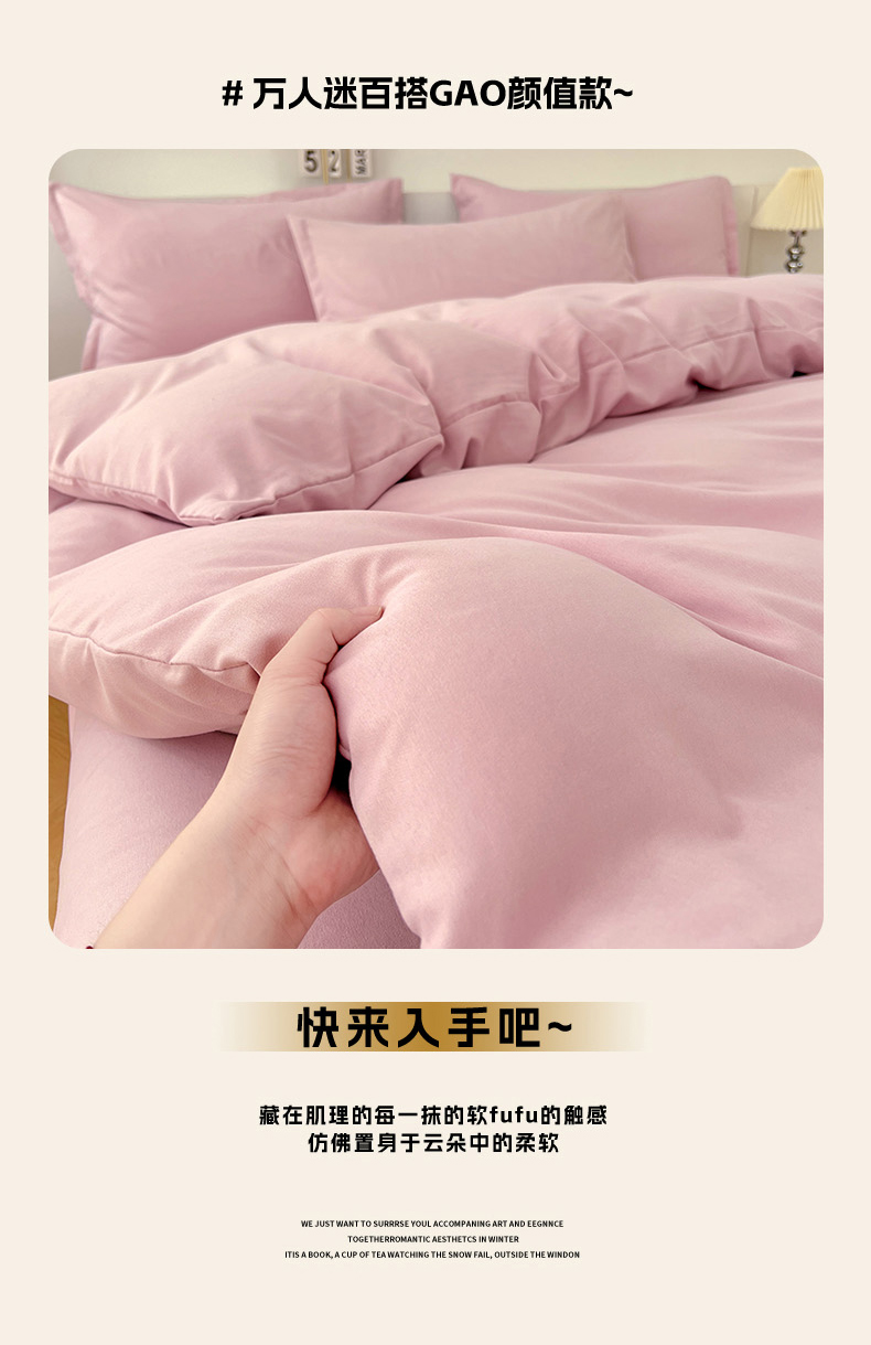 当前位置: 91家纺网 > 商品网购 > 床品套件 > 四件套 > 其它四件套 > 世爵 2025新款热款轻奢简约风高克重纯色140克水洗磨毛四件套 豆沙