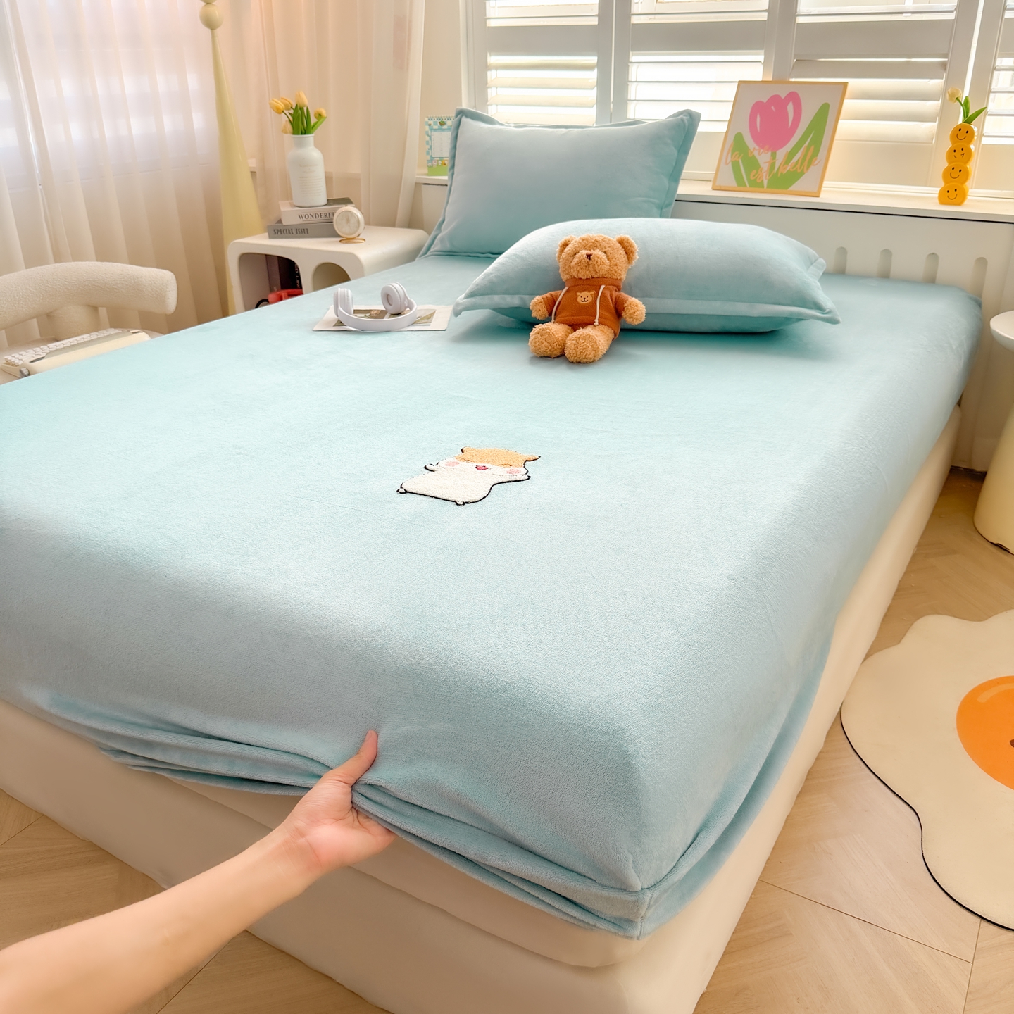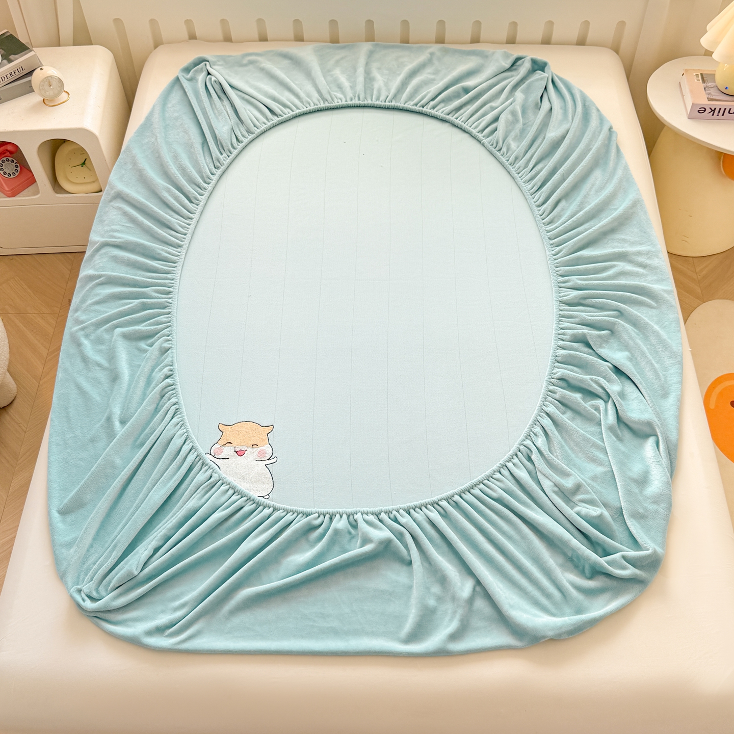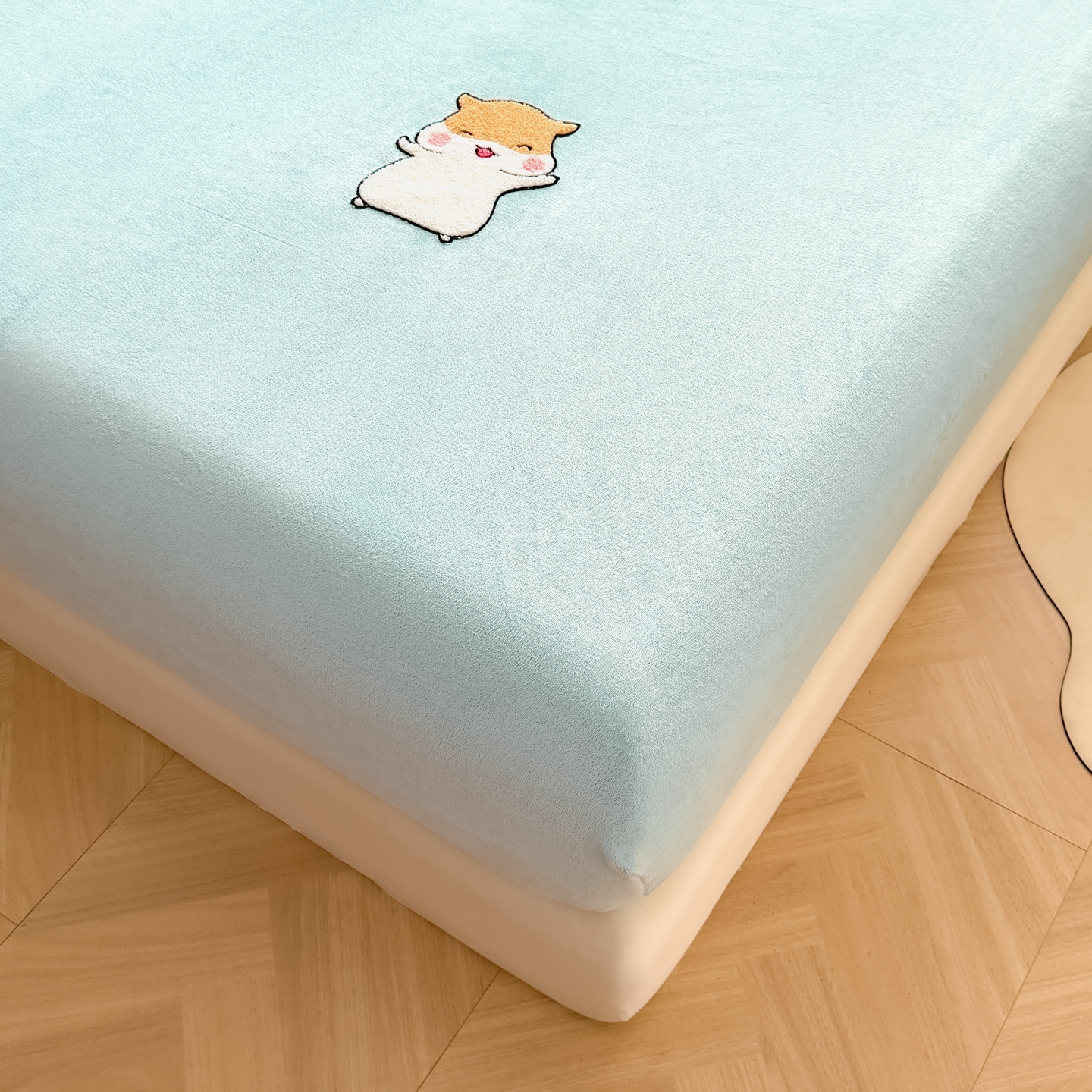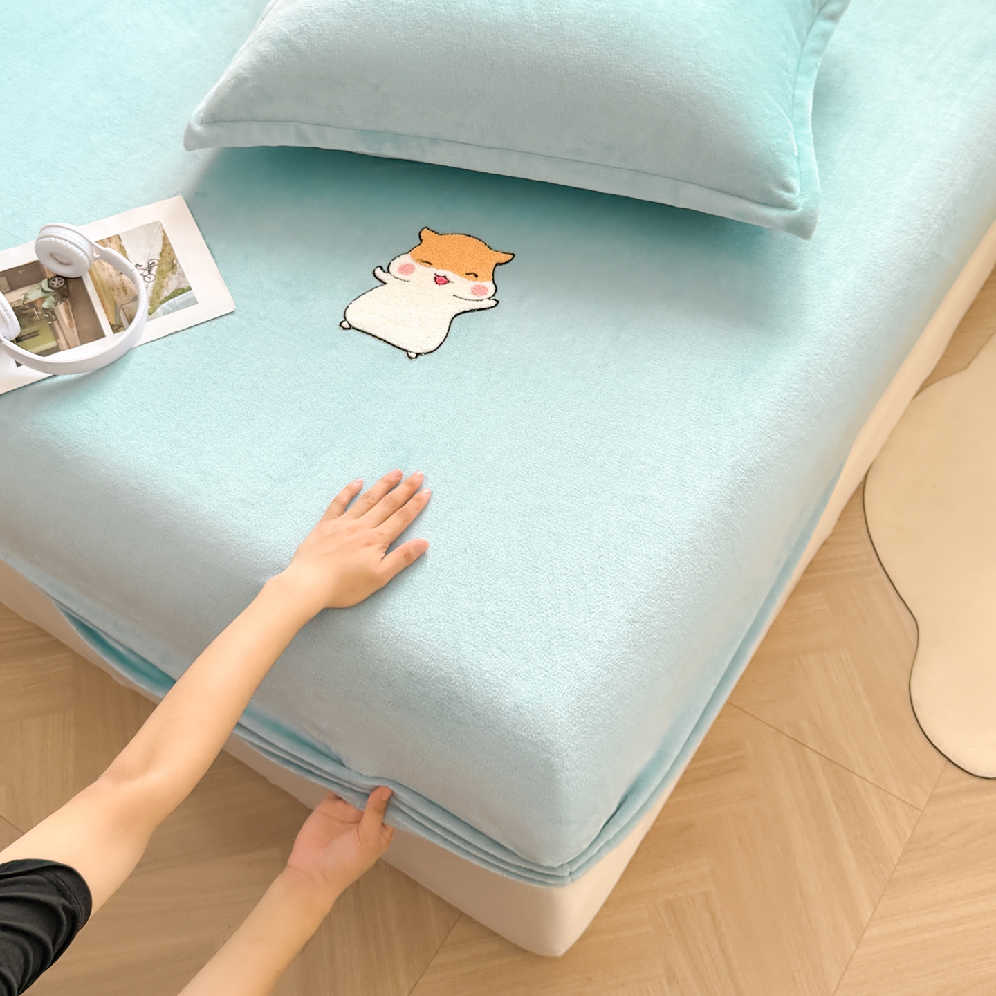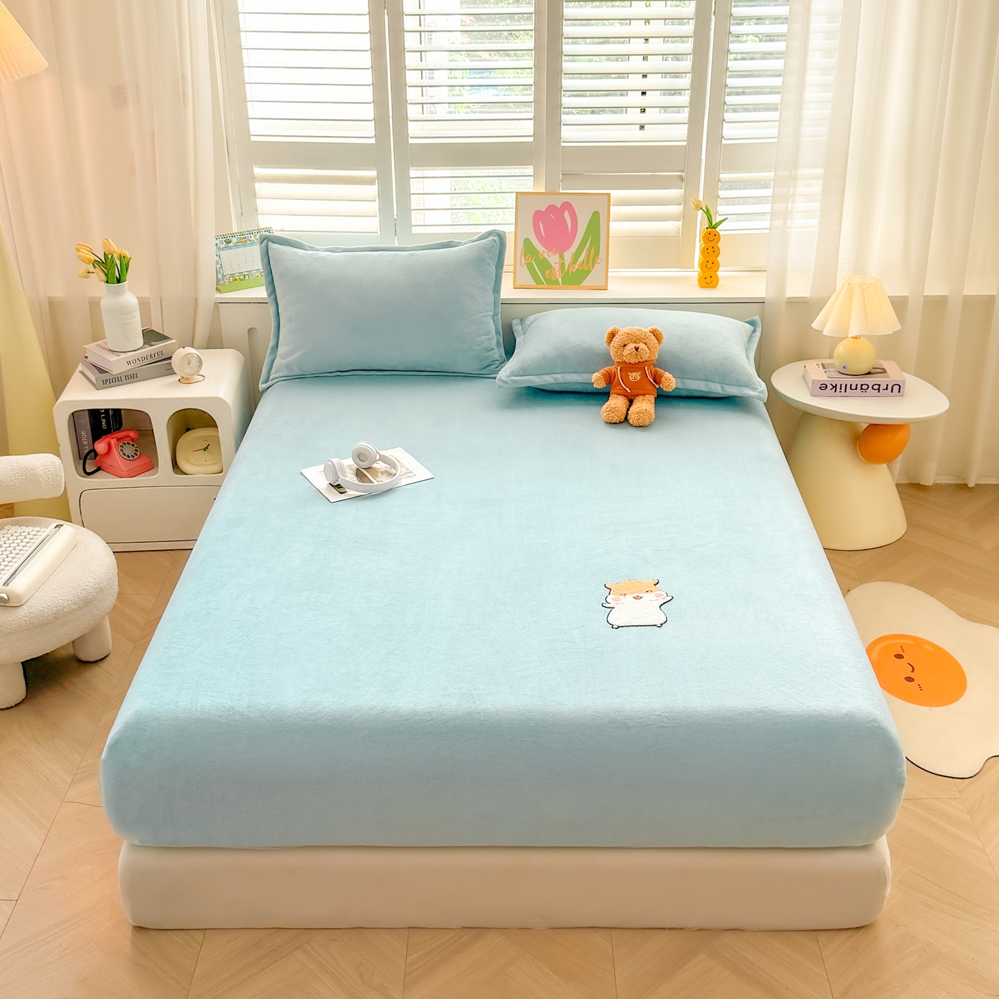 湘之帛 2025新款牛奶绒印花床笠 小松鼠-浅蓝