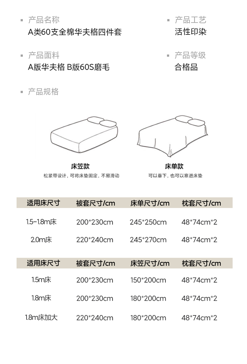 1.8m床笠单款四件套 | ¥165.00 |