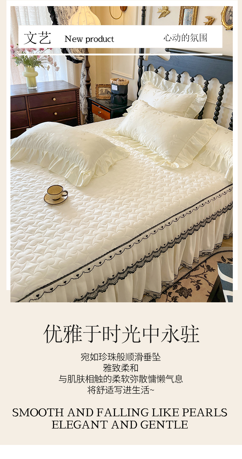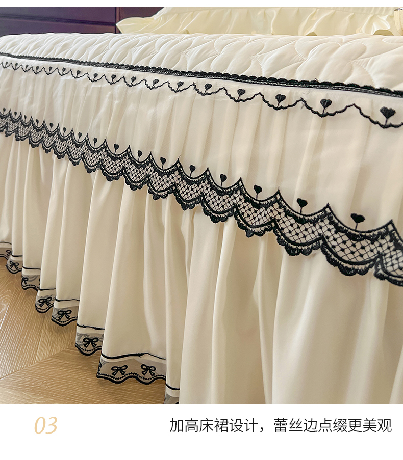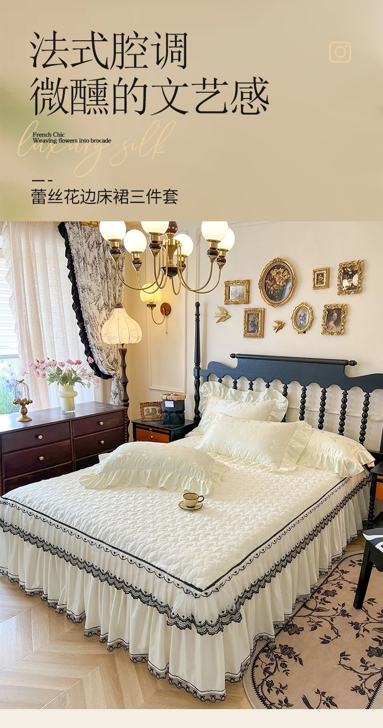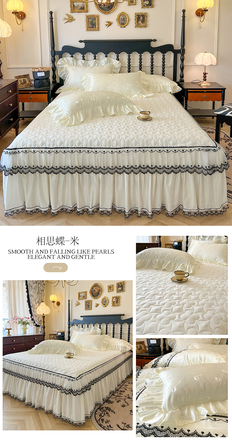 网红馆(ck家纺)2025新款提花蕾丝边床裙三件套-相思蝶 相思蝶-米