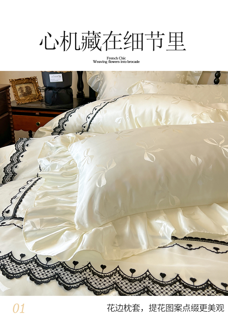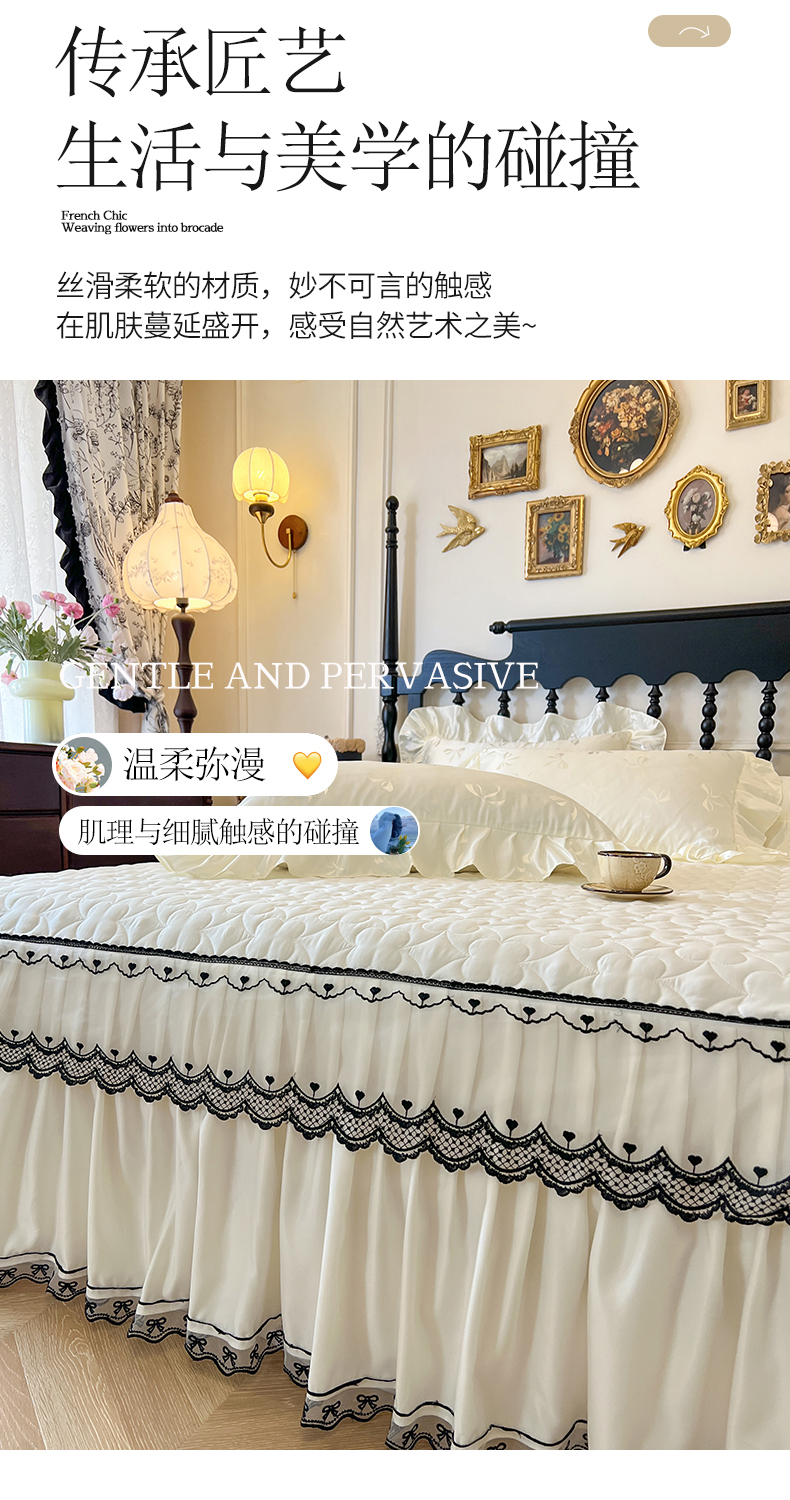 • 91家纺网 家纺一手货源 找家纺 网红馆(ck家纺)2025新款提花蕾丝边床裙三件套-相思蝶 相思蝶-米