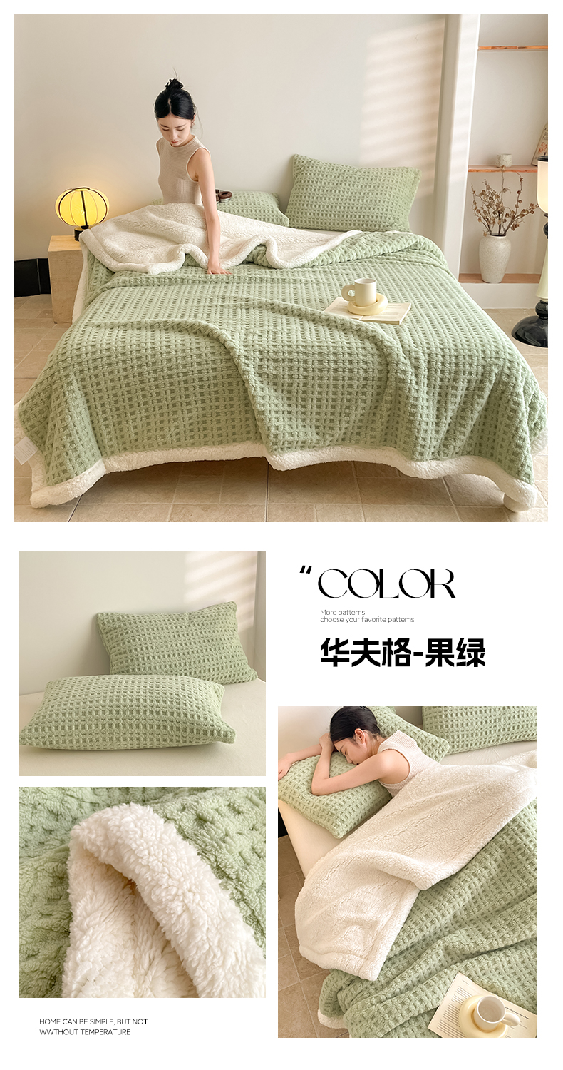欧邦 2025新款华夫格双层毯盖毯毯子-场景1 华夫格-果绿