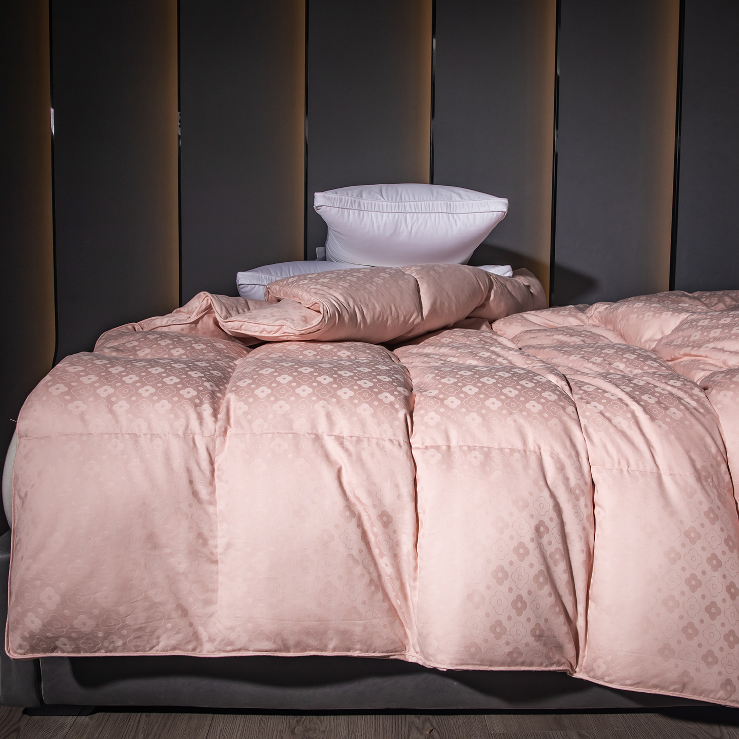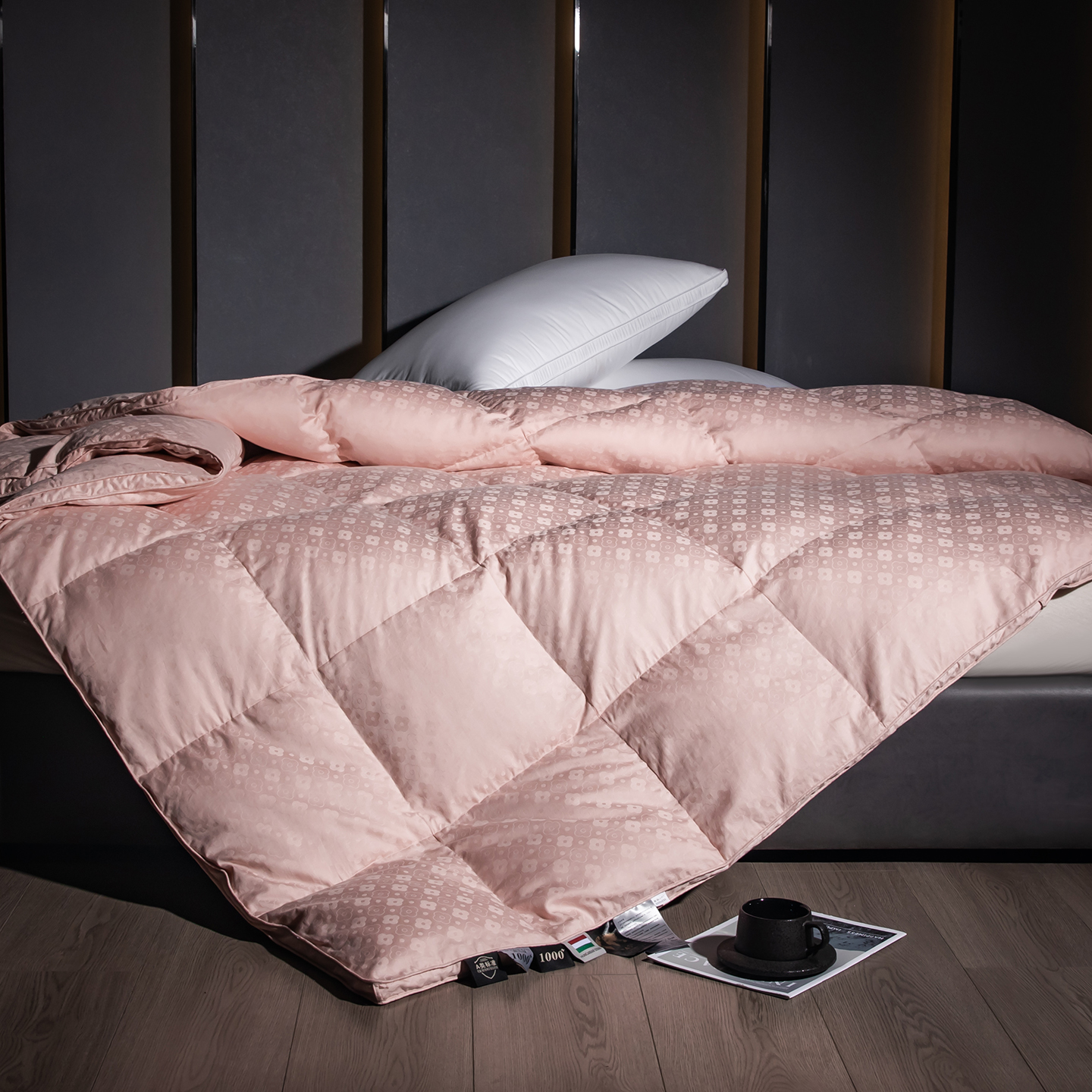 (总)静若居 2025新款高端提花羽绒被鸭绒被贡缎提花单层羽绒被壳,飘颜粉,飘金色,飘高级灰
