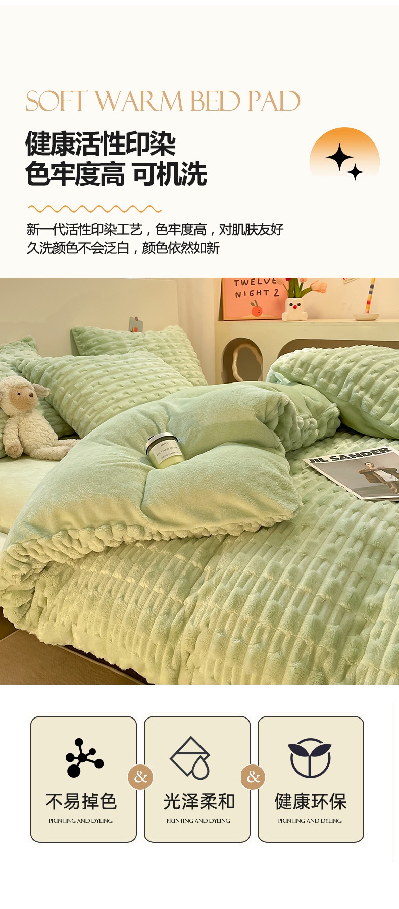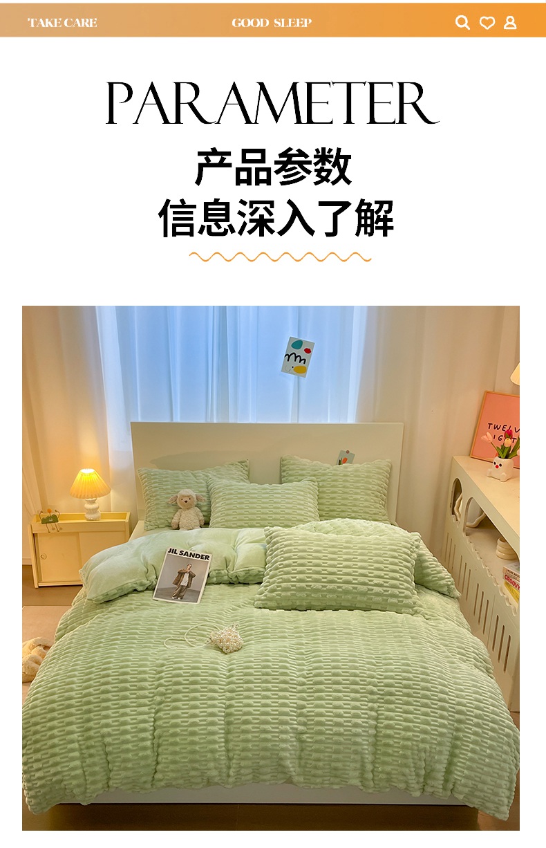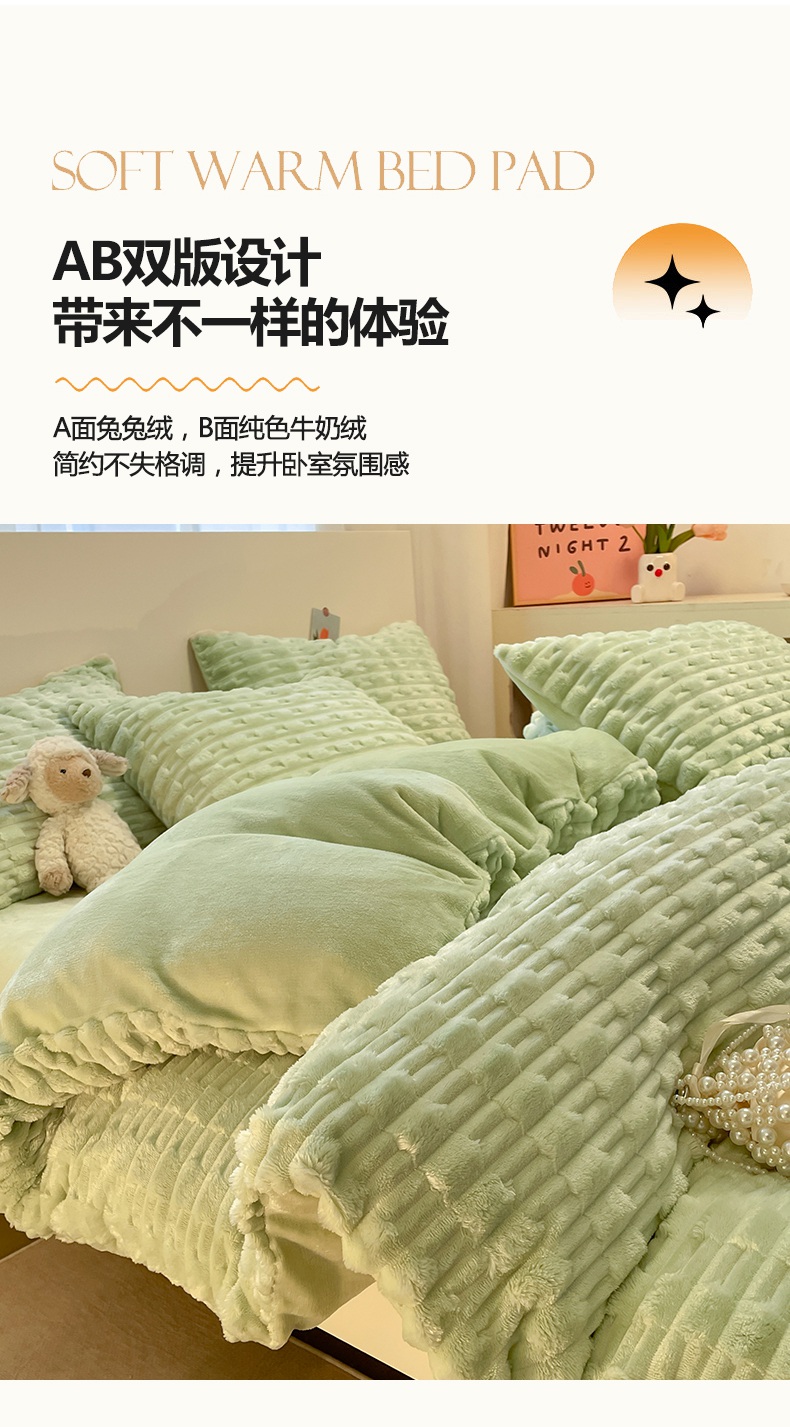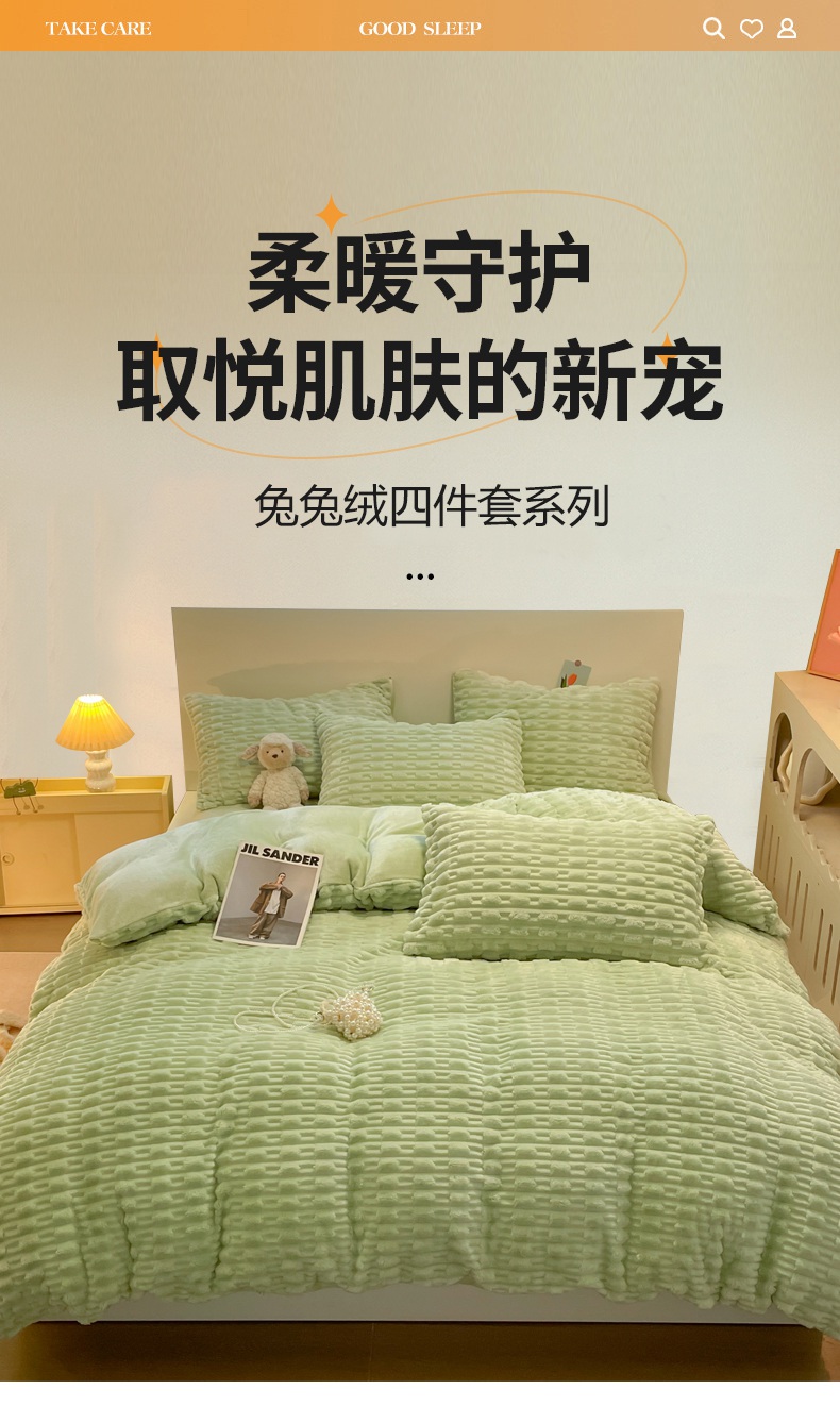 当前位置: 91家纺网 > 商品网购 > 床品套件 > 四件套 > 牛奶绒四件套 > 爱彼家纺 2024新款兔兔绒四件套系列 免兔绒-青果绿韵