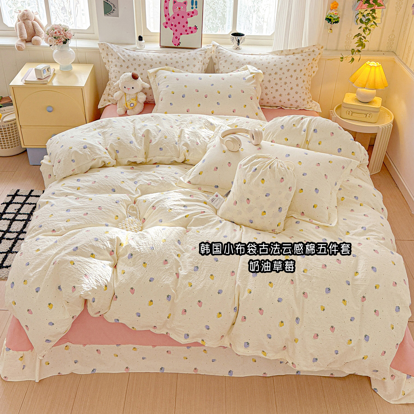 商品名称:梦莱斯 2025新款韩国小布袋古法云感棉四件套 奶油草莓
