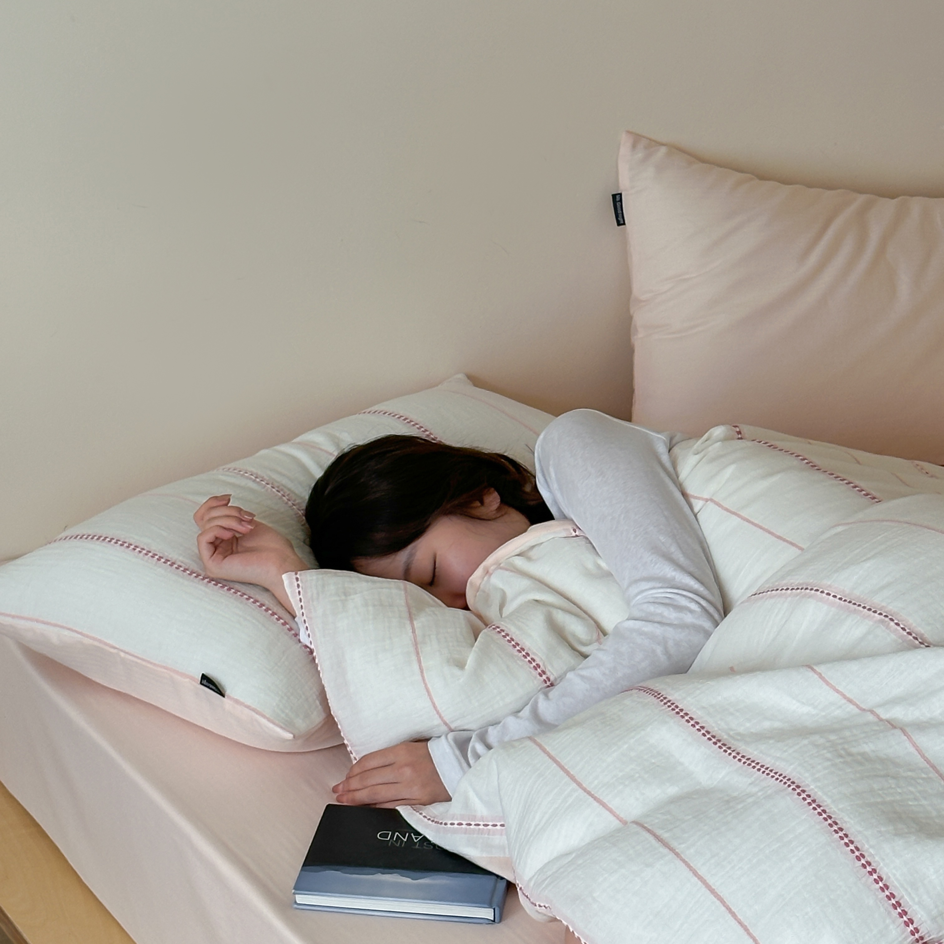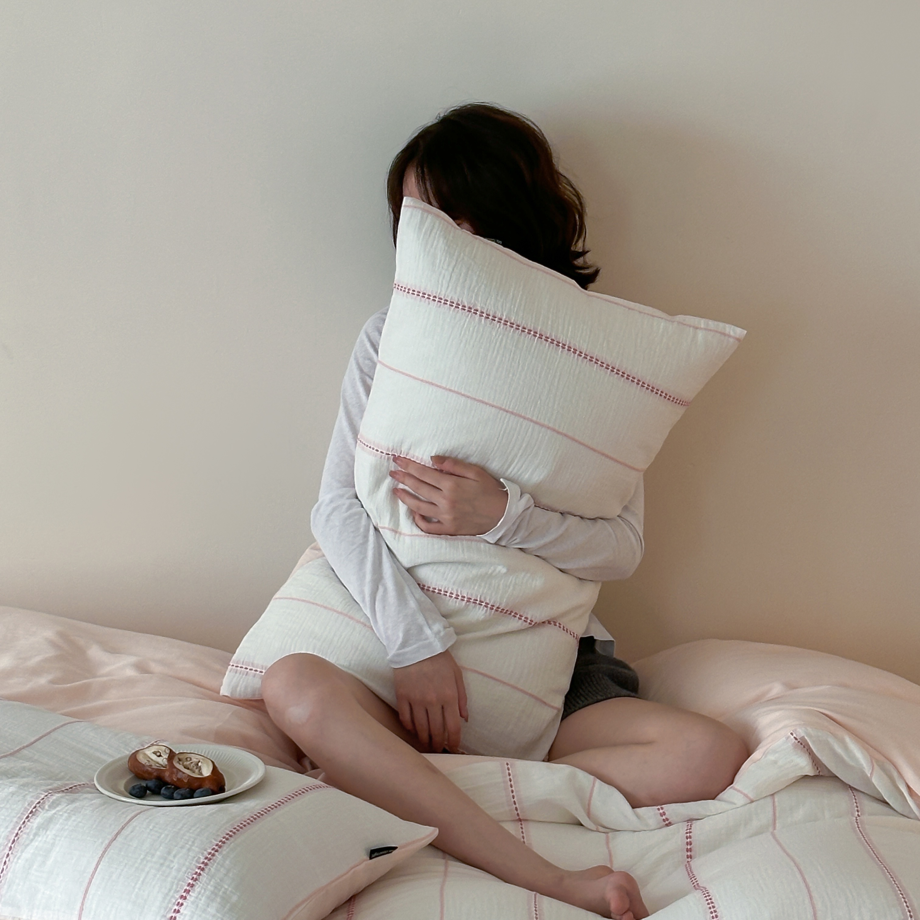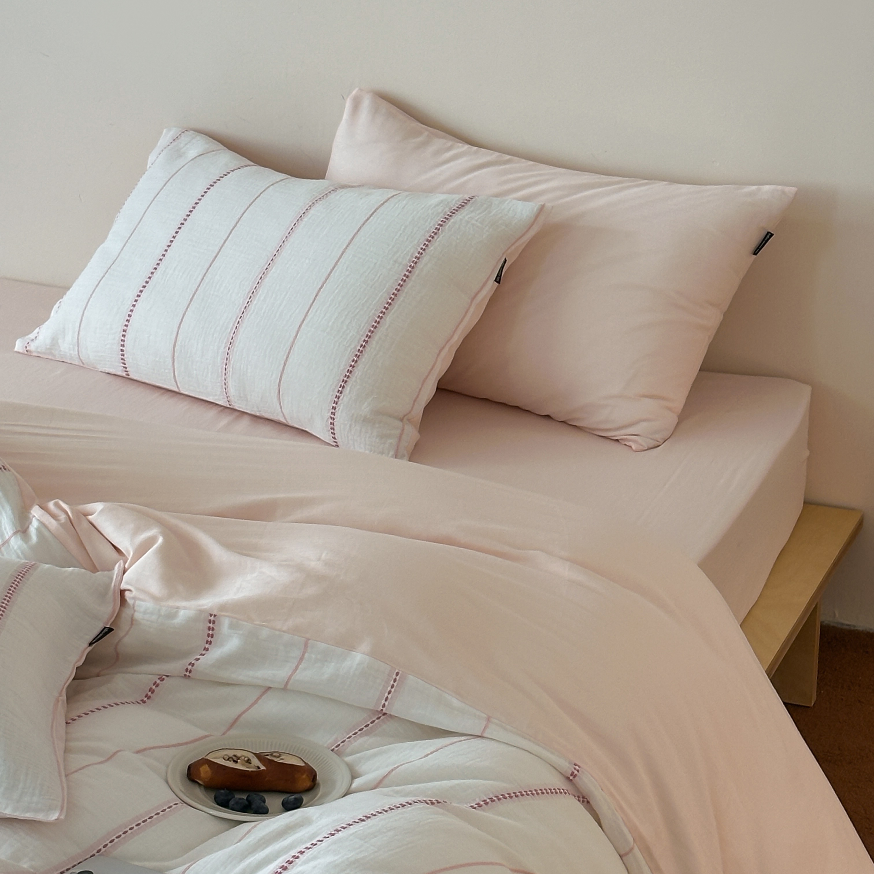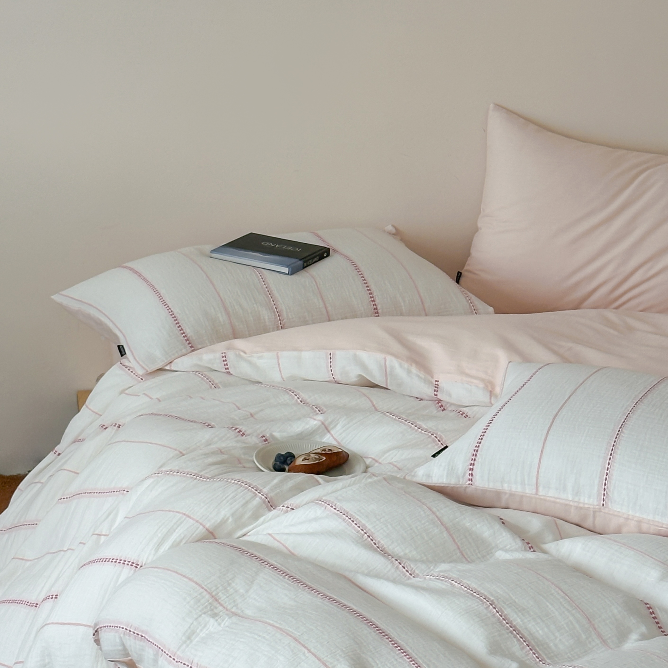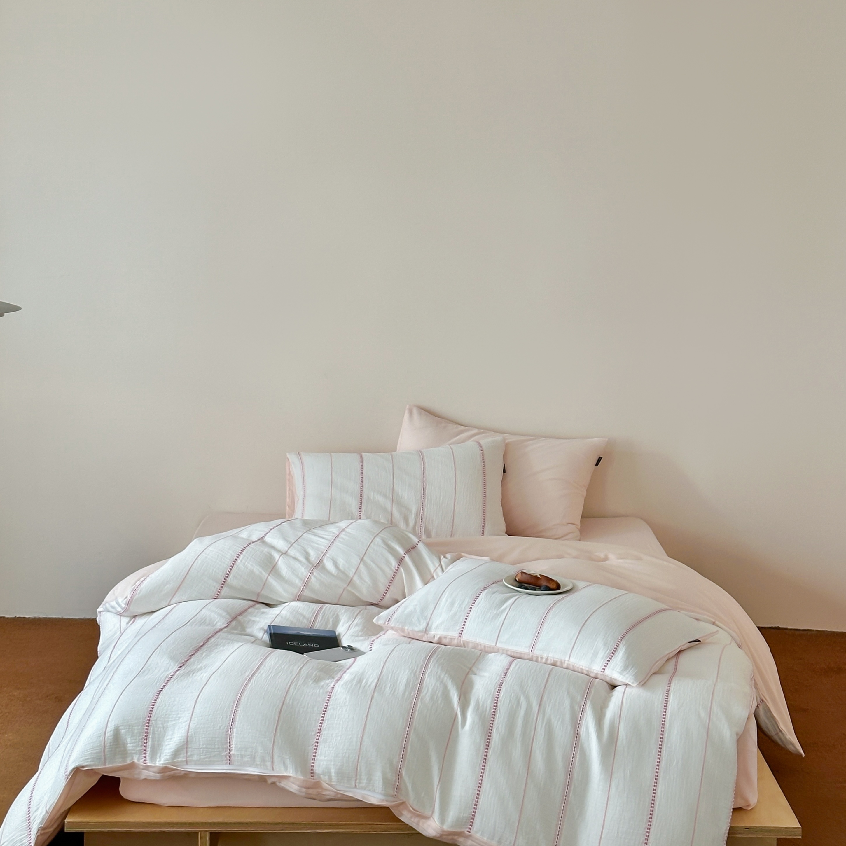 当前位置: 91家纺网 > 商品网购 > 床品套件 > 四件套 > 全棉普通四件套 > 蜜宿 2025新款全棉纯棉水洗双层纱穿线提花四件套 梨白-蓝