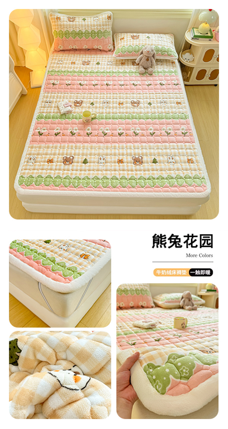 • 91家纺网 家纺一手货源 找家纺 优品惠 2025新款牛奶绒床垫床褥垫子床护垫冬季加绒加厚夹棉床盖 熊兔花园
