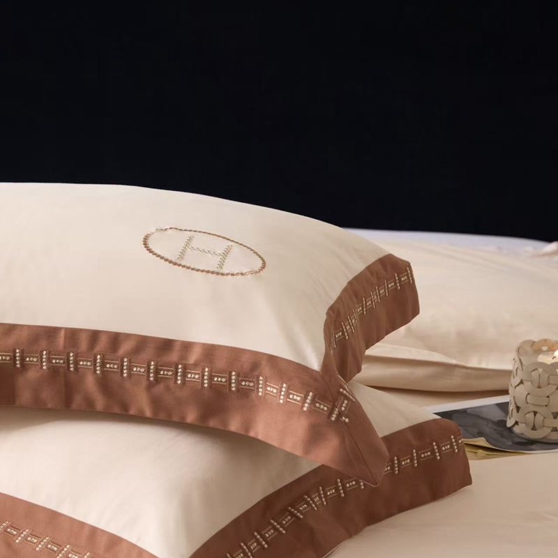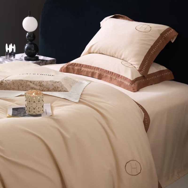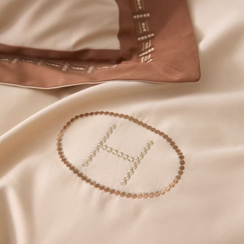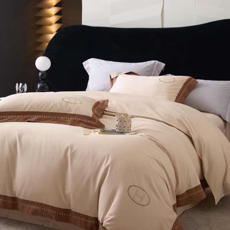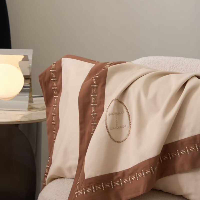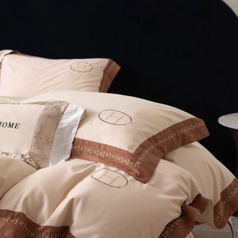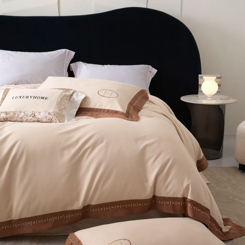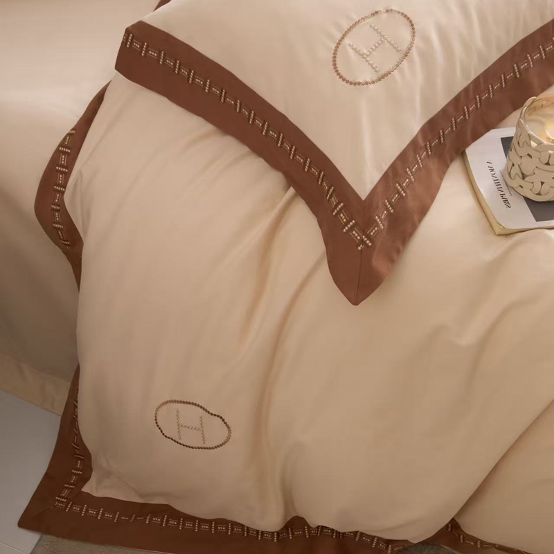 (总)嘉汀兰 2023新款60支全棉磨毛绣花撞色轻奢四件套—暮里,粉色,红灰色,芥绿色,浅灰色,深青色