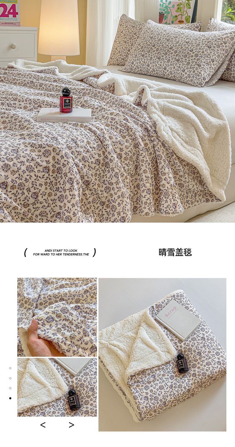 (总)布柔 2025新款原麻皱皱纱羊羔绒双层毛毯多功能盖毯午睡沙发毯子,暗香盖毯,春半盖毯,蓝兔盖毯,晴雪盖毯,秋序盖毯