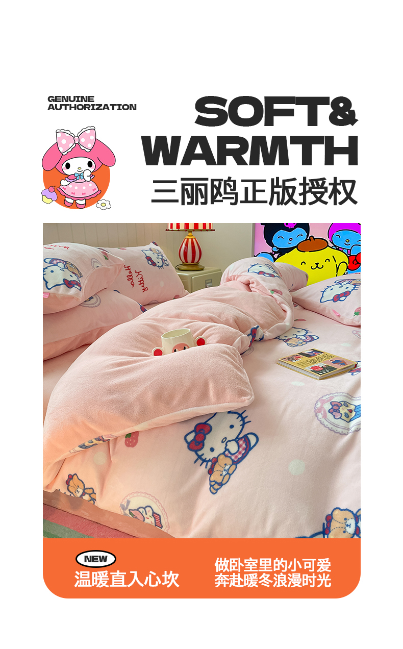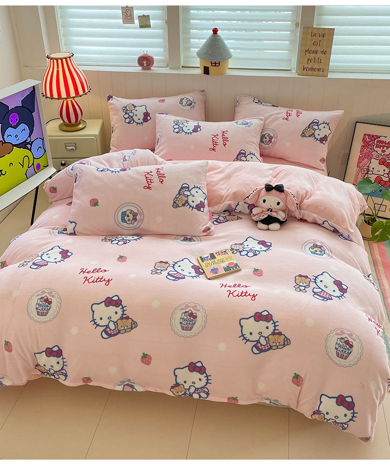 当前位置: 91家纺网 > 商品网购 > 床品套件 > 四件套 > 牛奶绒四件套 > 桃子家居 2025新款A类正版三丽鸥授权卡通加厚高克重牛奶绒系列四件套 绒三丽鸥-甜美kitty