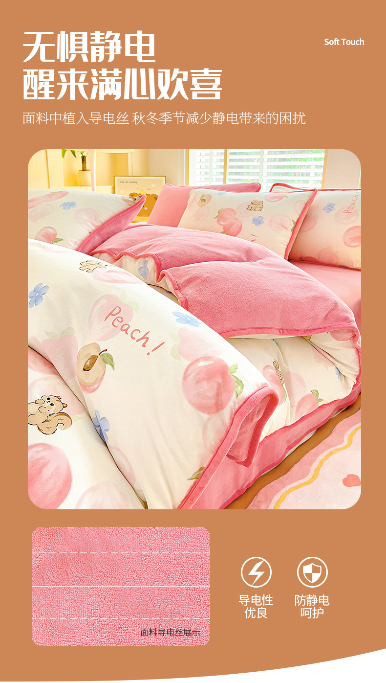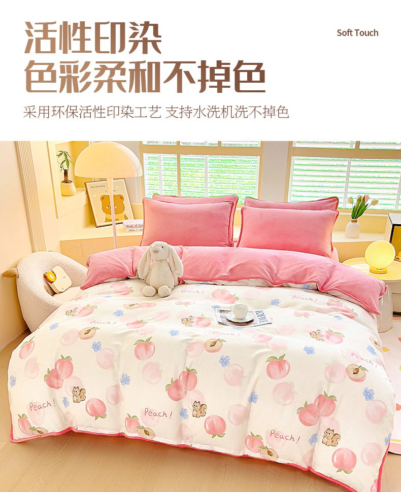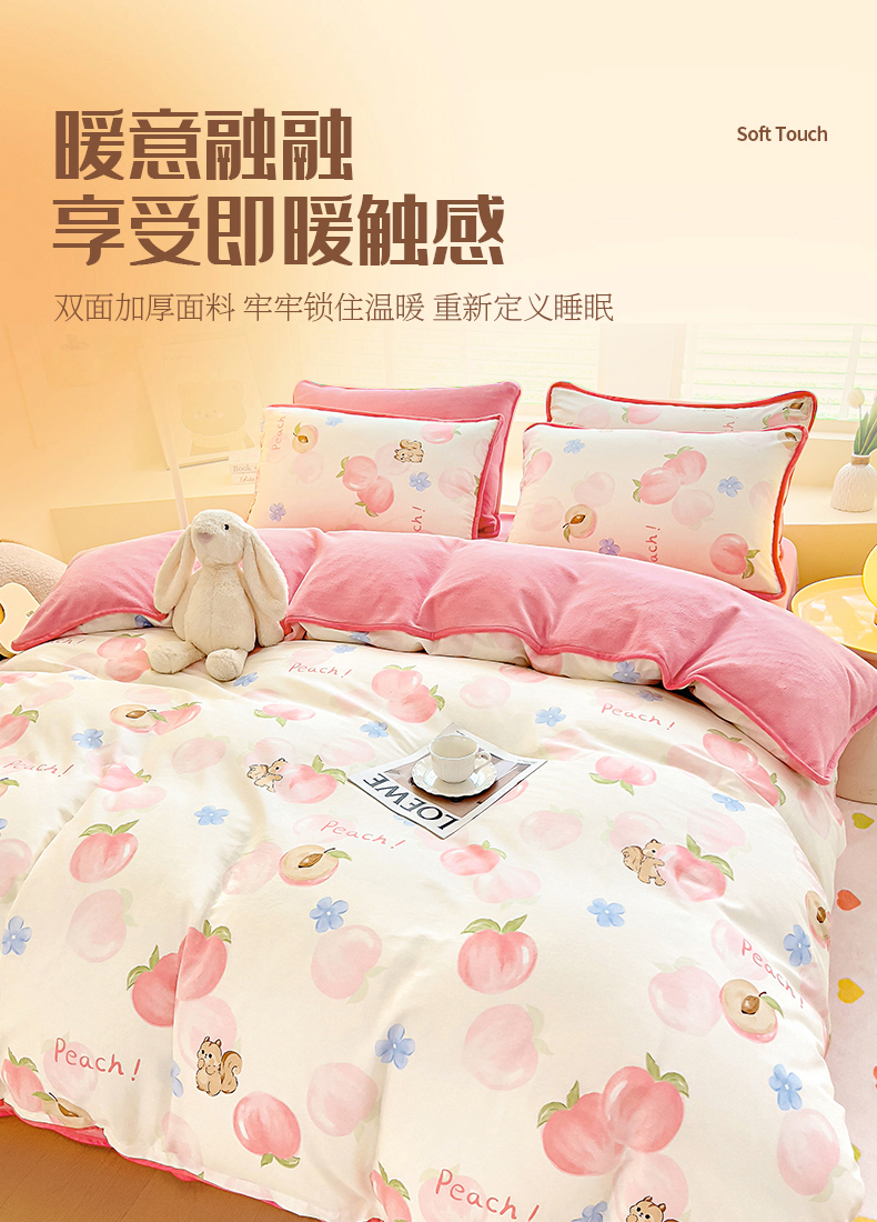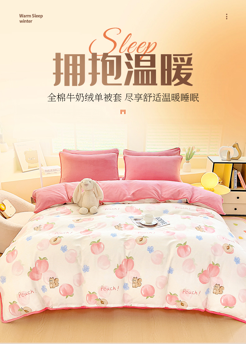 琪琪阁家纺 2025秋冬新款全棉加牛奶绒单被套棉加绒被套 蜜桃松鼠