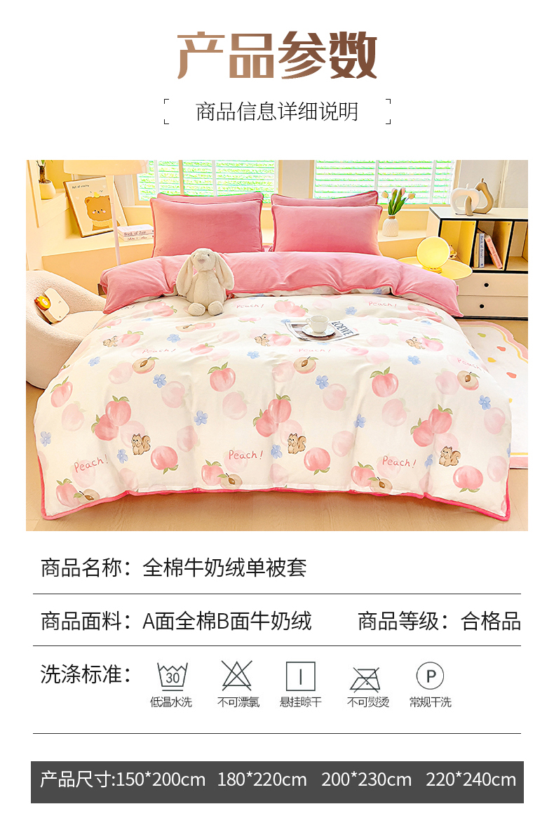商品名称:琪琪阁家纺 2025秋冬新款全棉加牛奶绒单被套棉加绒被套 蜜桃松鼠