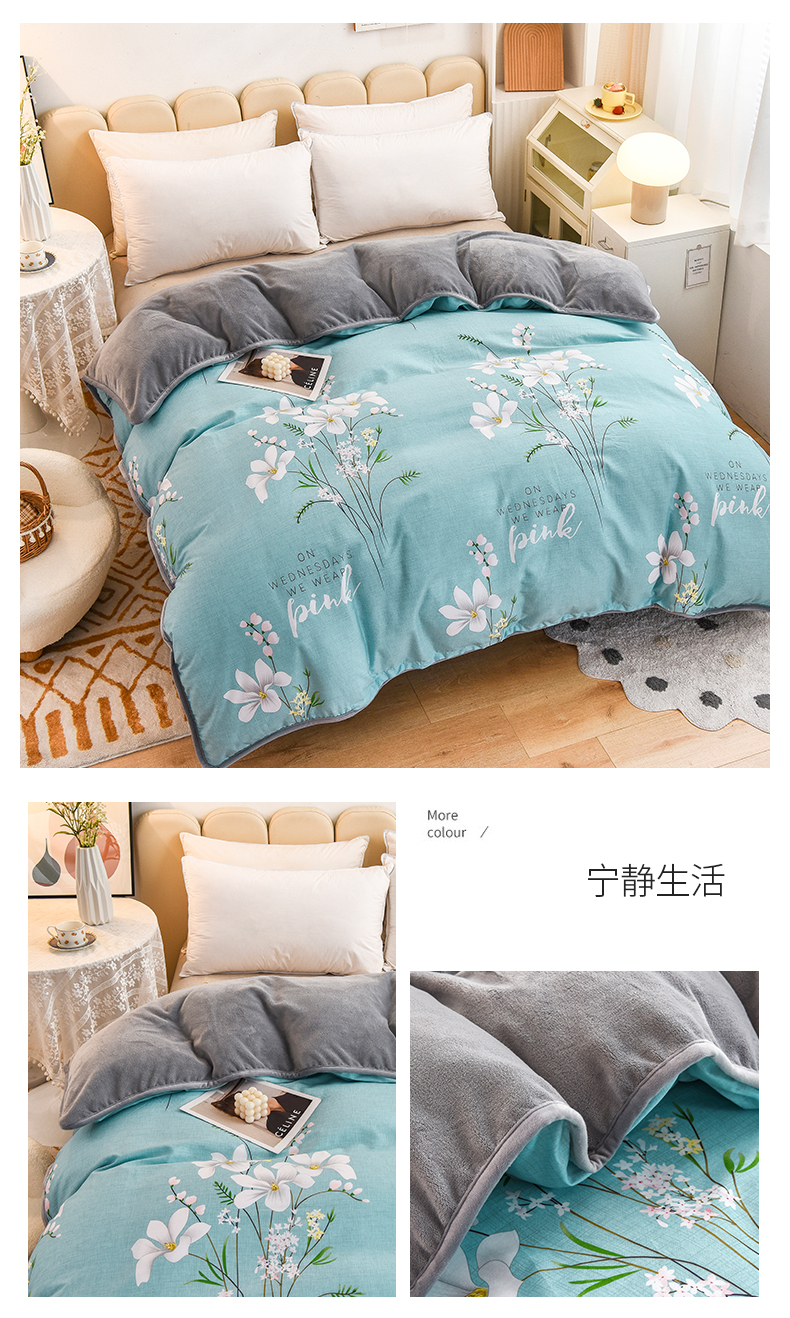 琪琪阁 2023新款A棉B绒棉加绒牛奶绒四件套单被套 宁静生活,宁静生活