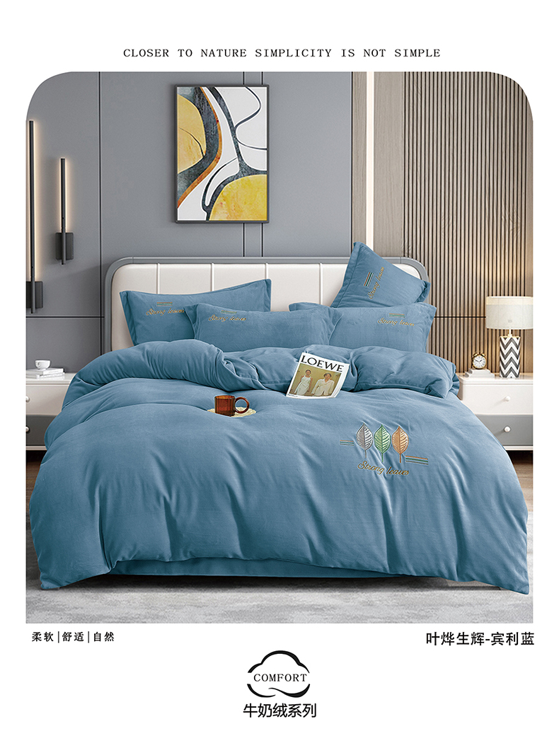 (总)绒博士 2025新款220克牛奶绒刺绣四件套--叶烨生辉系列,叶烨生辉-奶绿,叶烨生辉-宾利蓝,叶烨生辉-豆沙,叶烨生辉-芳菲紫,叶烨生辉-灰色,叶烨生辉-樱花粉