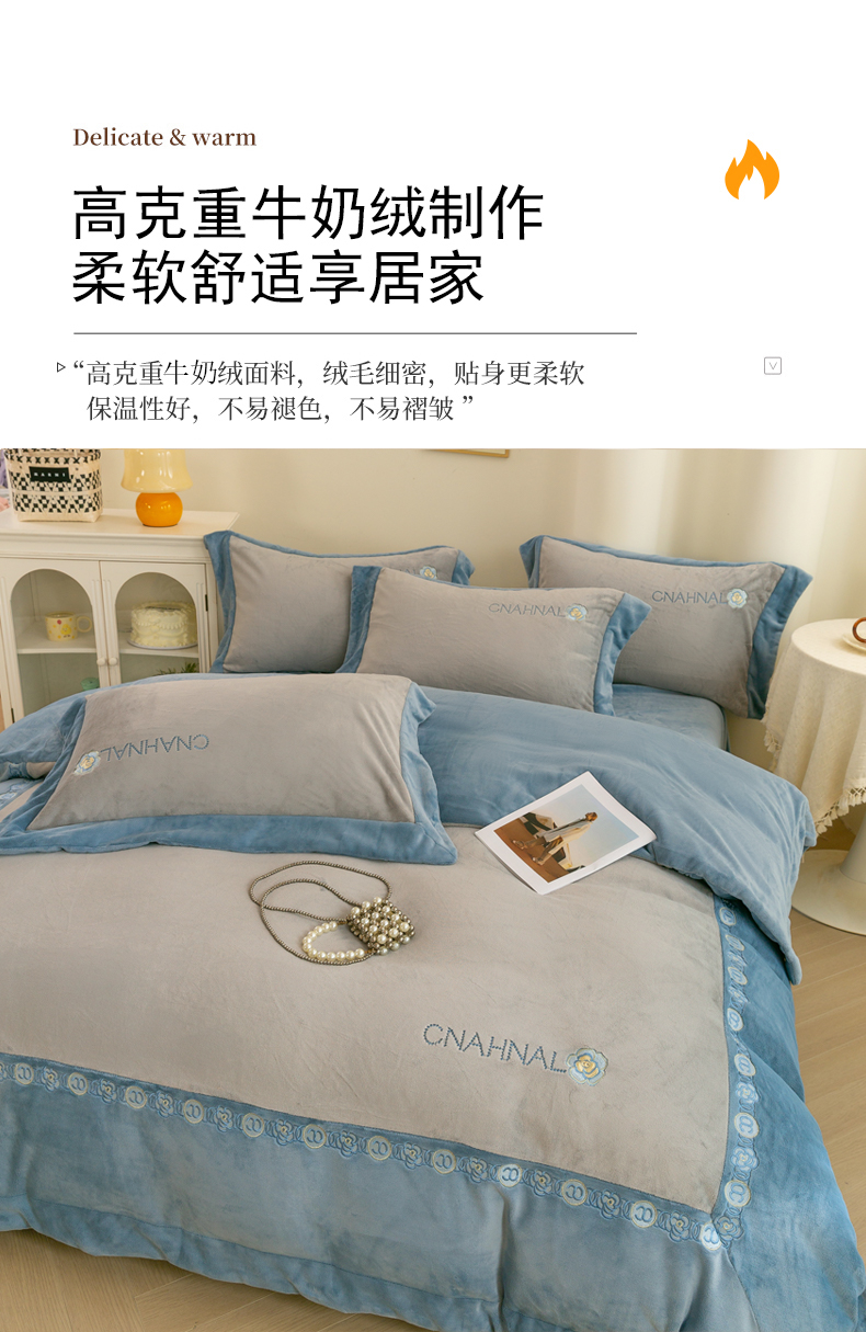 (总)绒博士 2025新款220克牛奶绒刺绣三件套--欧拉系列,欧拉-宾利蓝,欧拉-芳菲紫,欧拉-灰色,欧拉-奶绿,欧拉-樱花粉