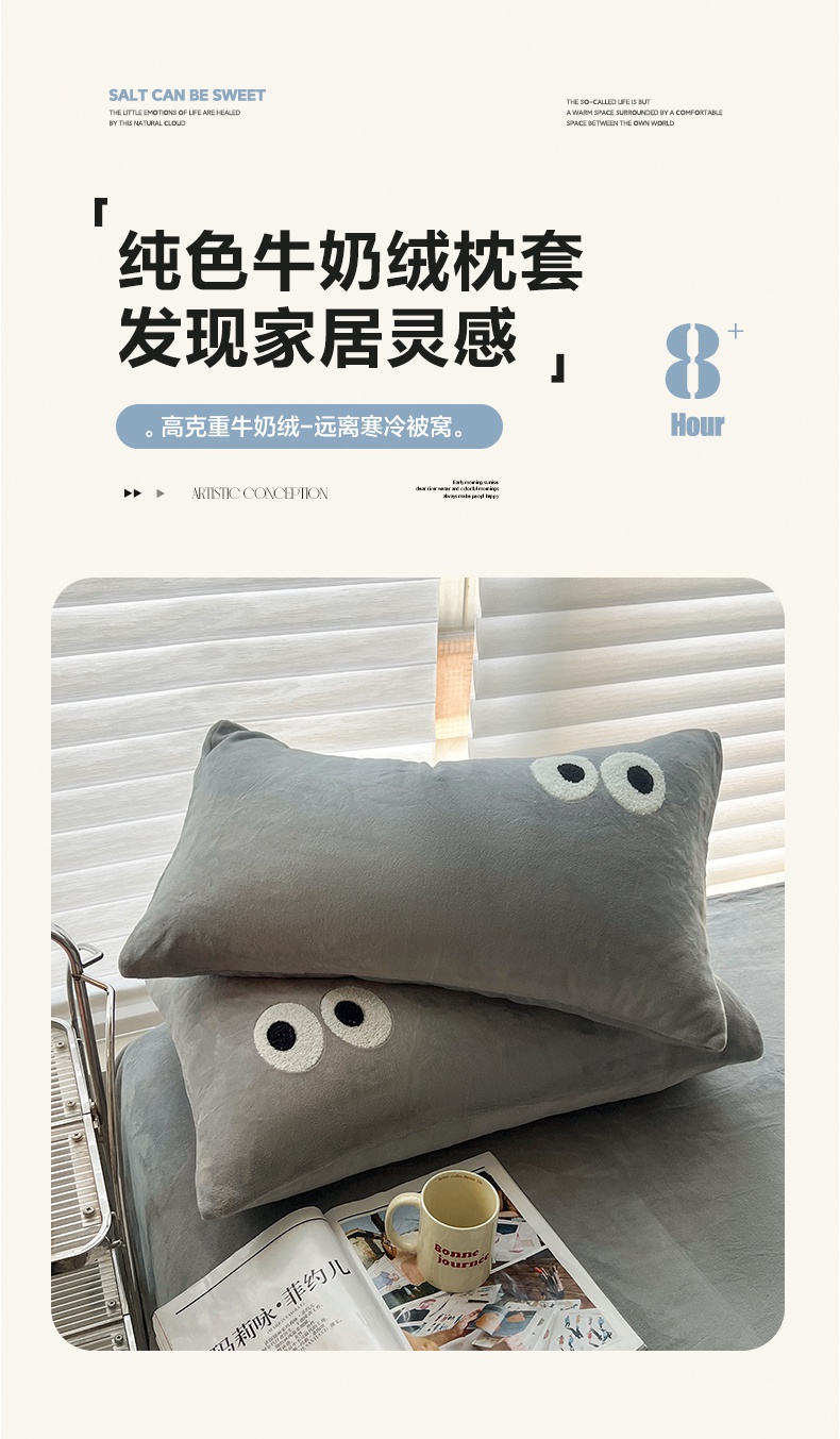 商品名称:悦织湾家纺 2025新款牛奶绒纯色单品枕套冬季加厚保暖透气轻奢时尚卡通枕套单品枕套枕套单件 牛奶绒浅灰