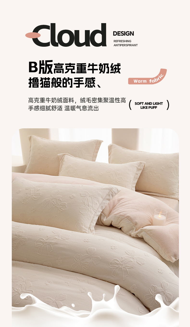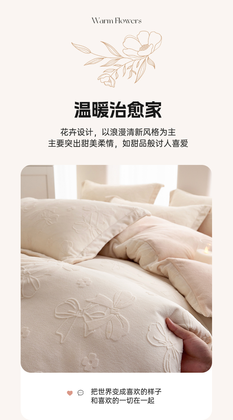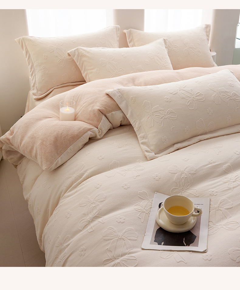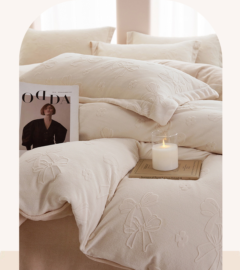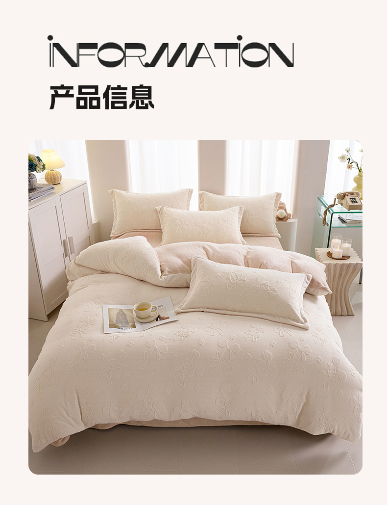 当前位置: 91家纺网 > 商品网购 > 床品套件 > 四件套 > 牛奶绒四件套 > 亿梵 2025秋冬新款A类全消光牛奶绒立体5D雕花绒四件套 蝴蝶结-奶油白