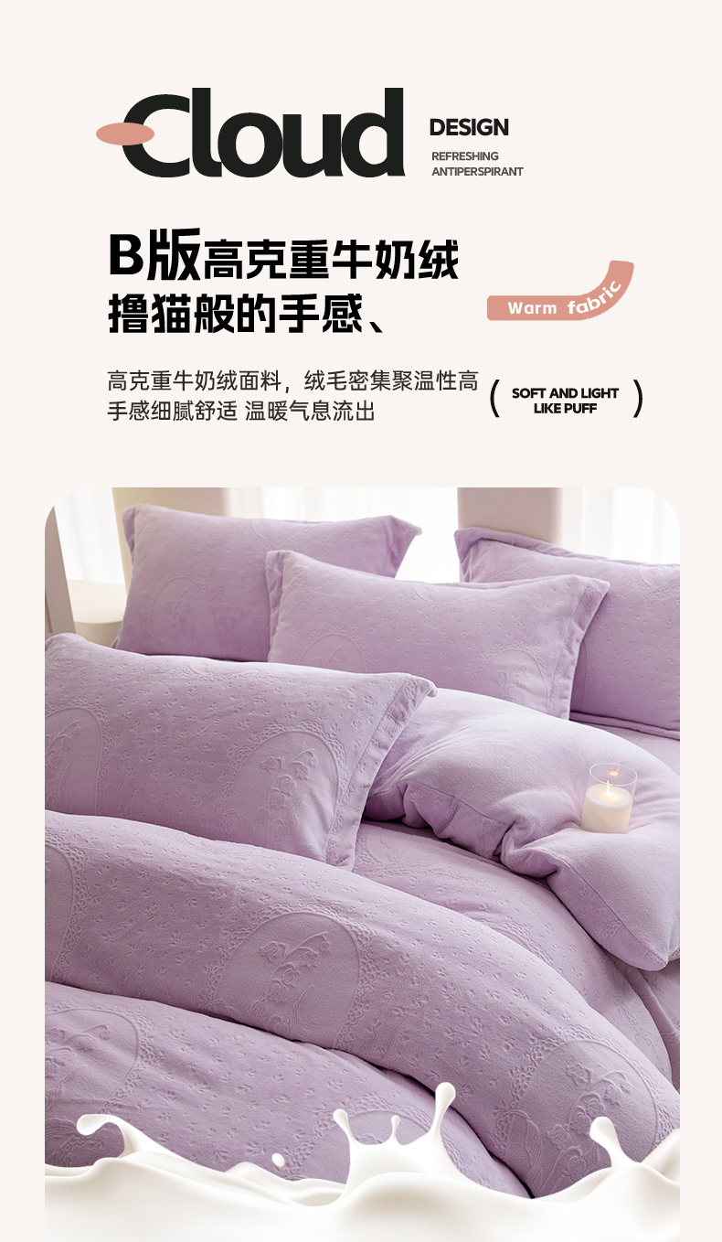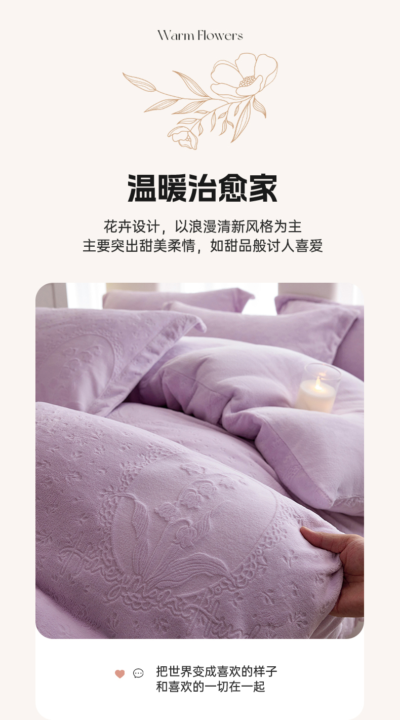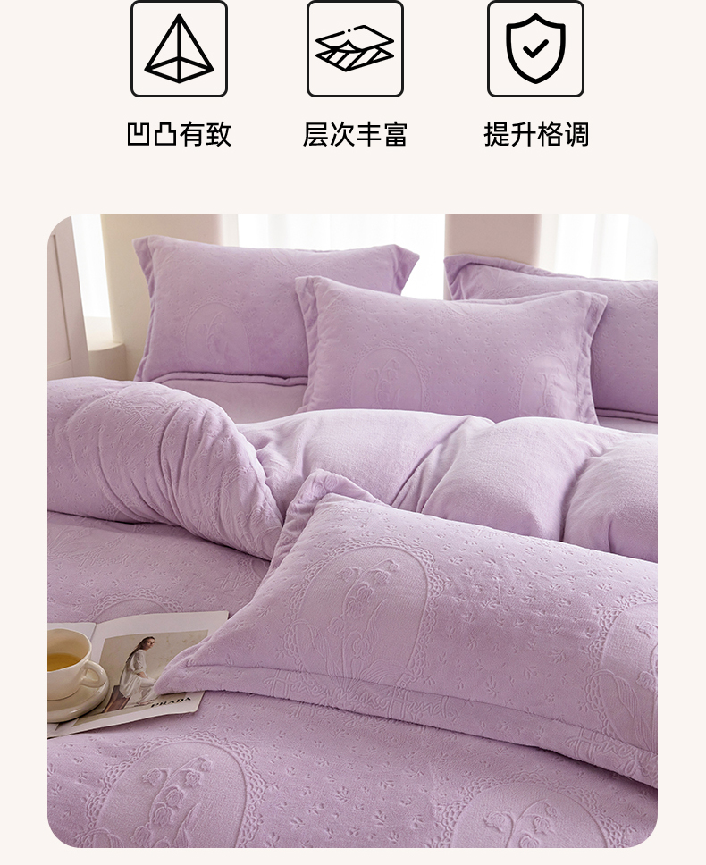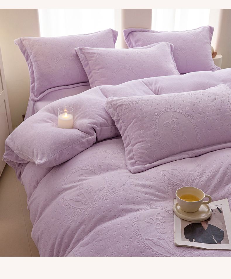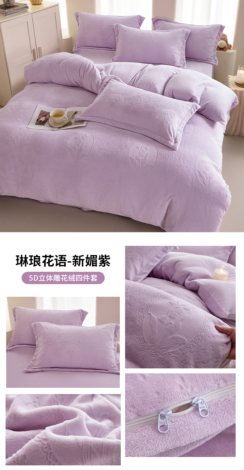 当前位置: 91家纺网 > 商品网购 > 床品套件 > 四件套 > 牛奶绒四件套 > 亿梵 2025秋冬新款A类全消光牛奶绒立体5D雕花绒四件套 琳琅花语-新媚紫