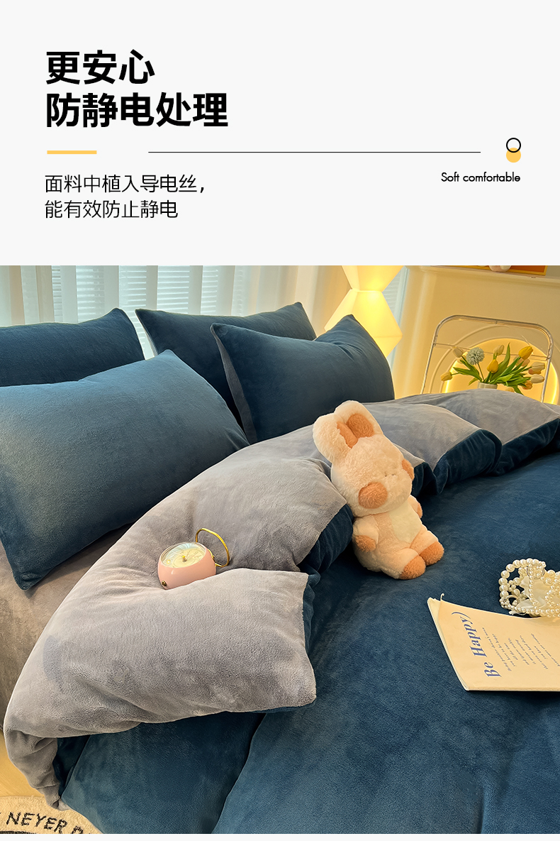 商品名称:(总)悦织湾家纺 2025新款简约纯色牛奶绒四件套条纹轻奢时尚冬季加厚保暖床上用品学生宿舍三四件套