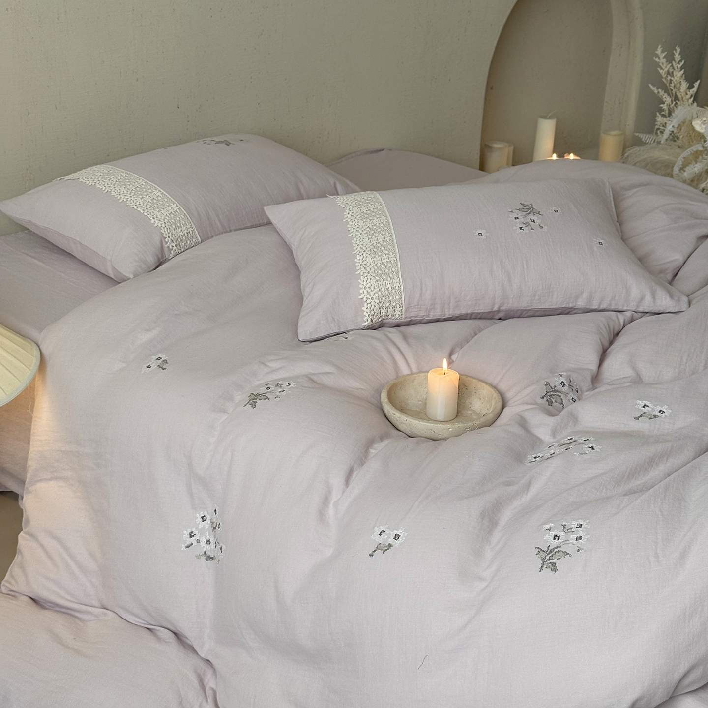 鹿班家居 2025新款秋冬款全棉皱皱纱精密刺绣系列四件套-云舒旧嘢(标准会员-20元) 粉色