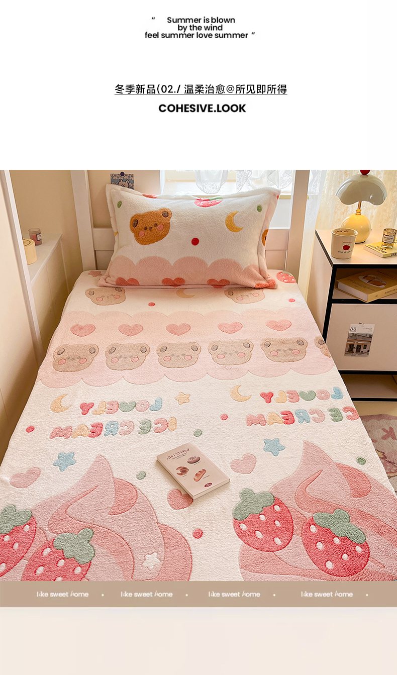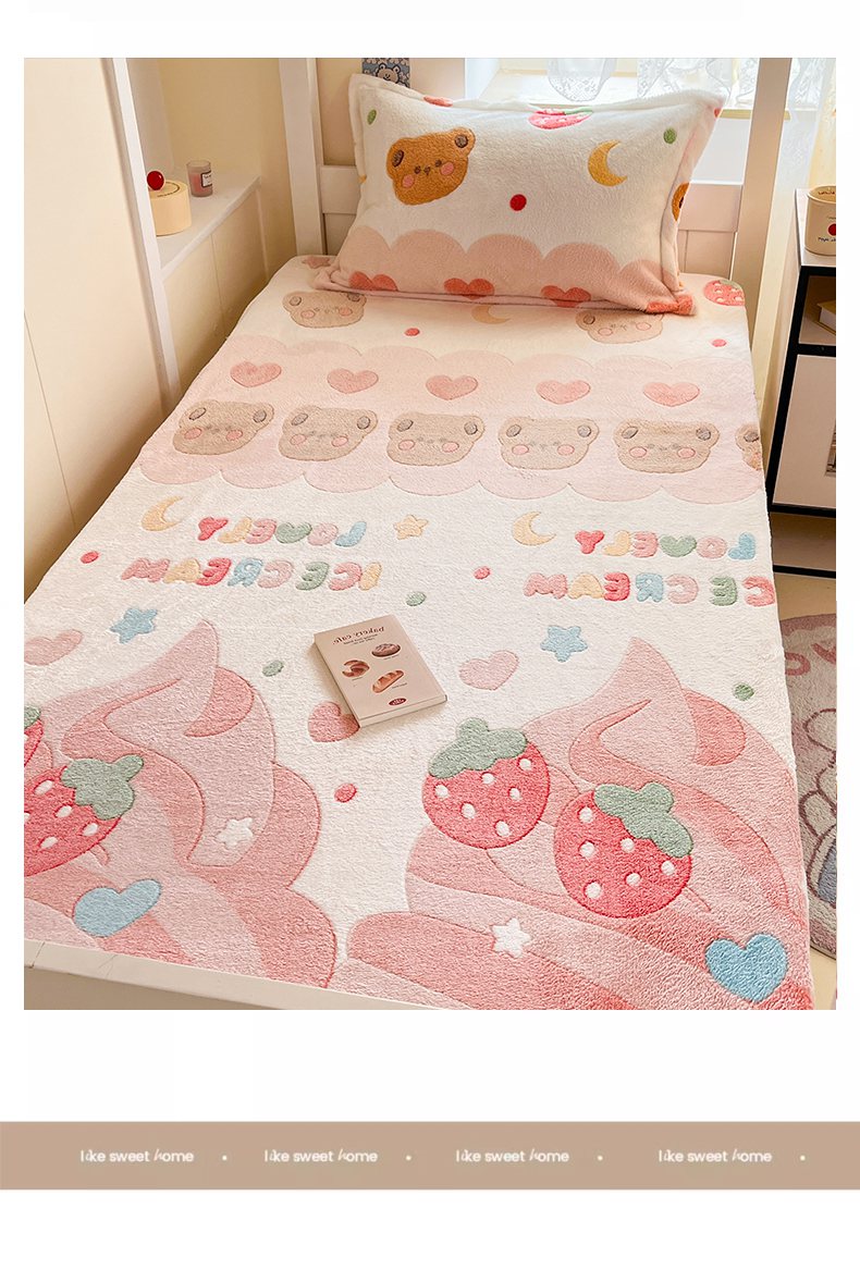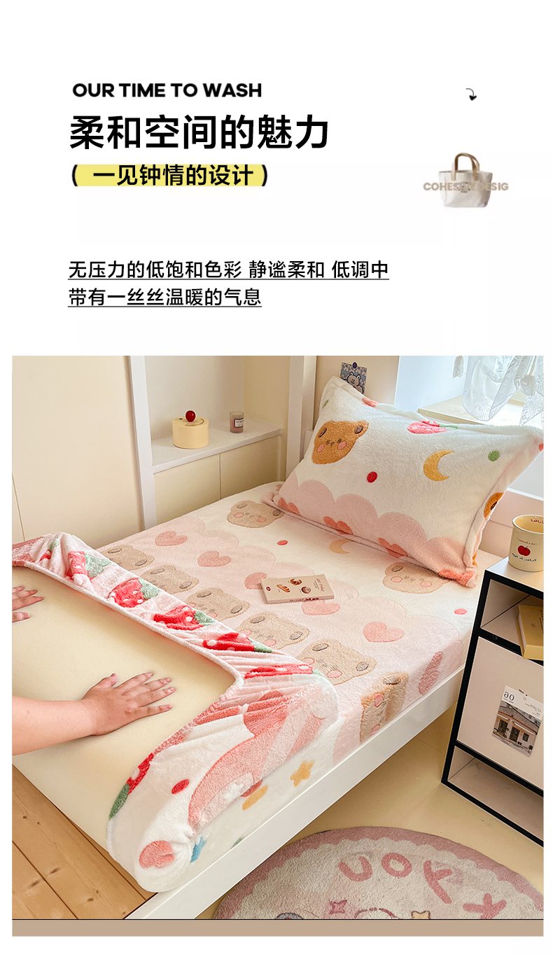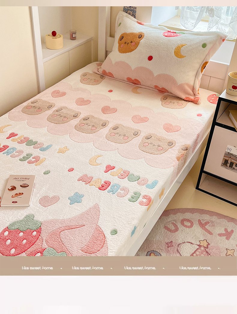 川悦生活 2025新款雪花绒宿舍单床笠 床笠冰激凌熊