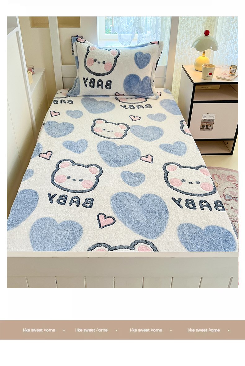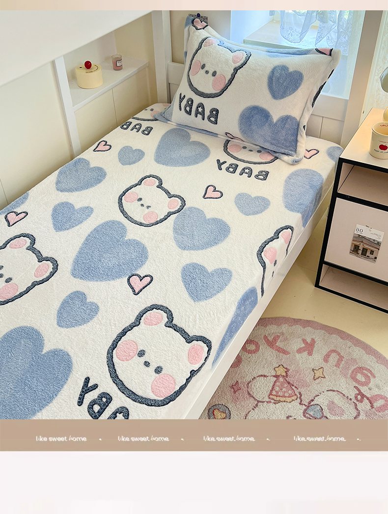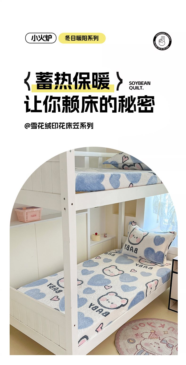 川悦生活 2025新款雪花绒宿舍单床笠 床笠可爱熊
