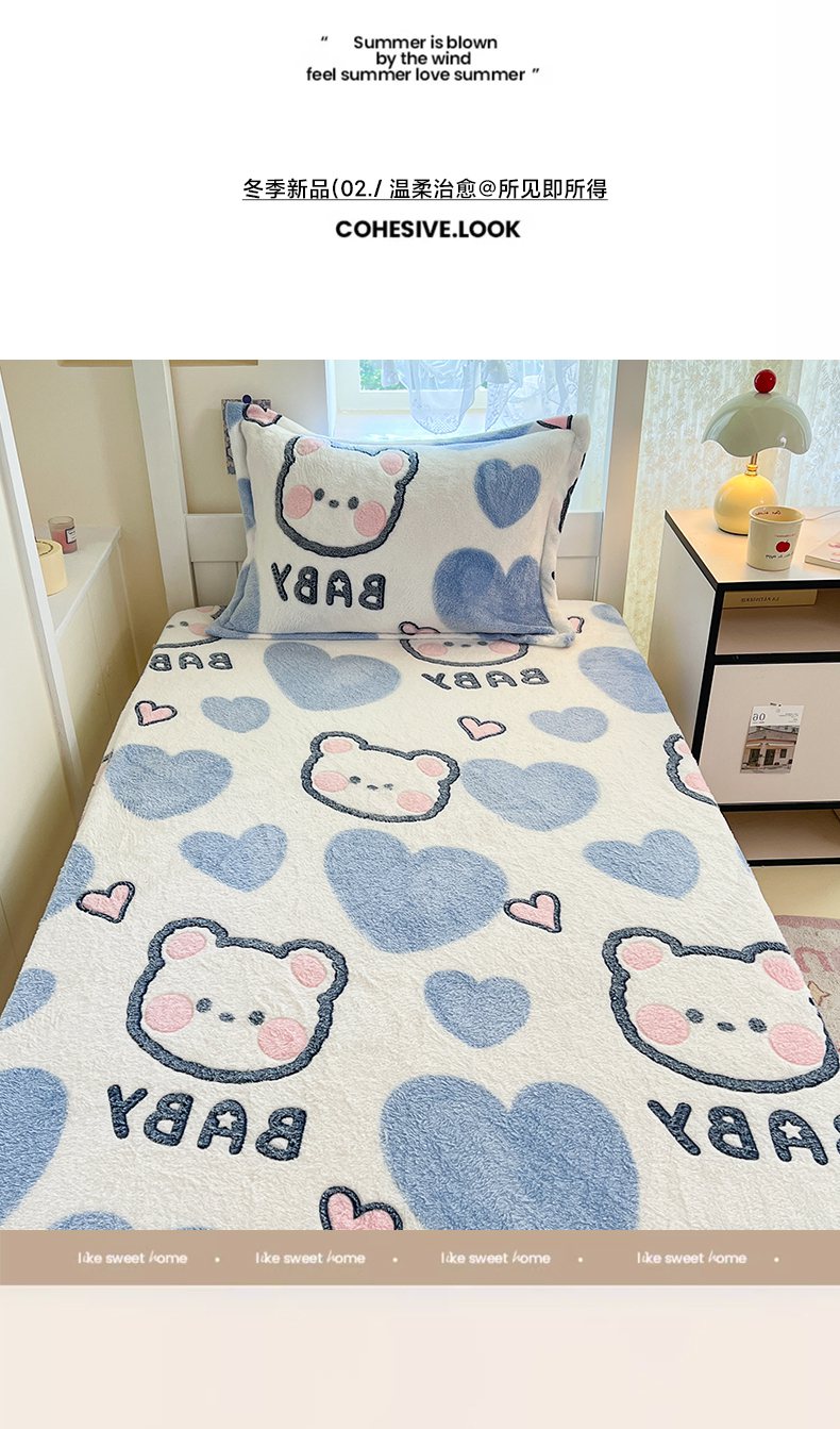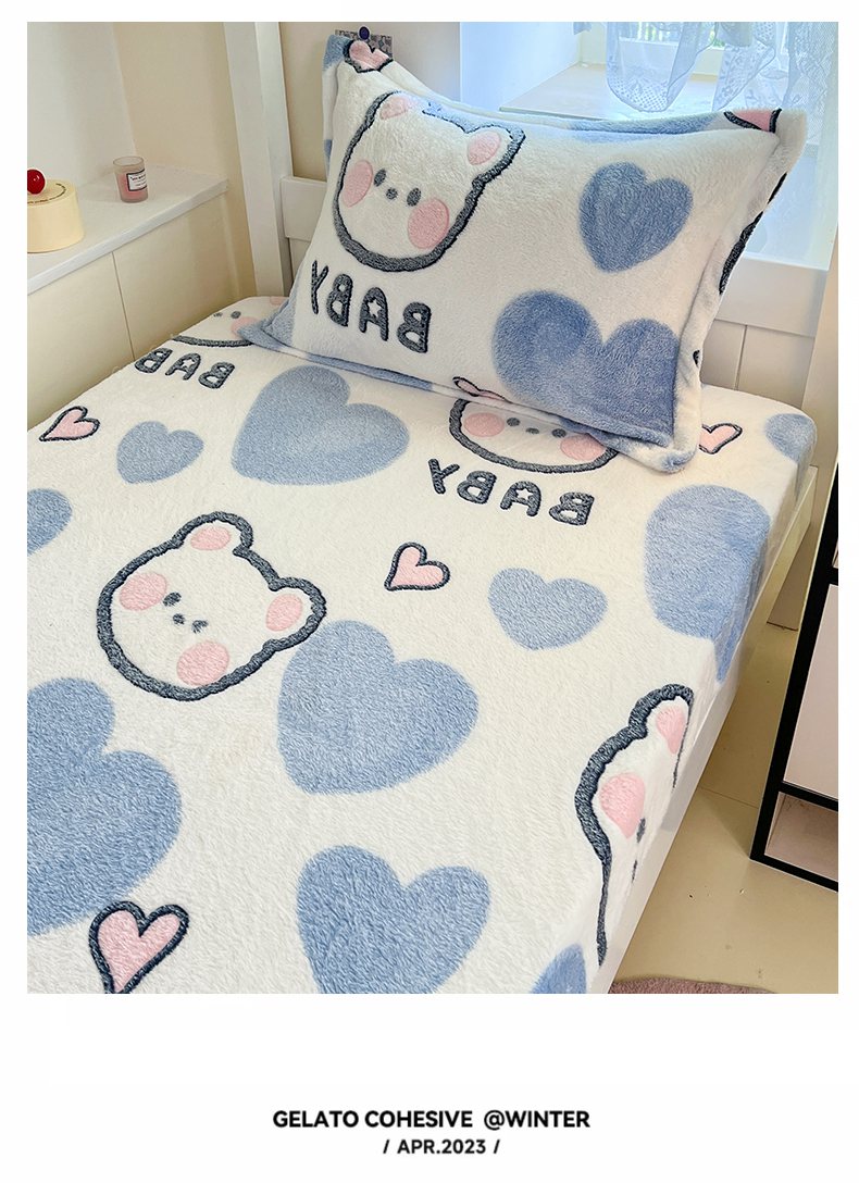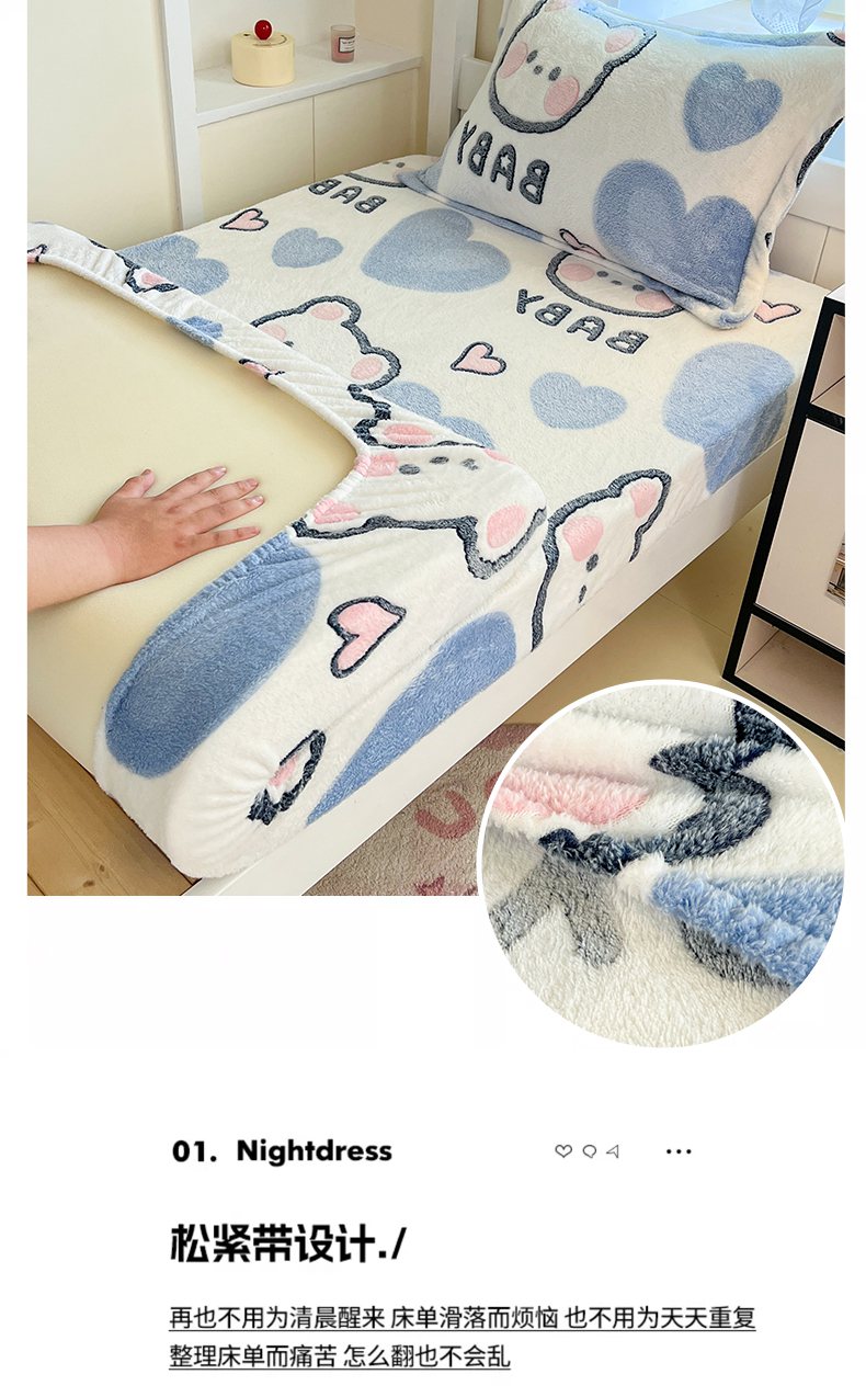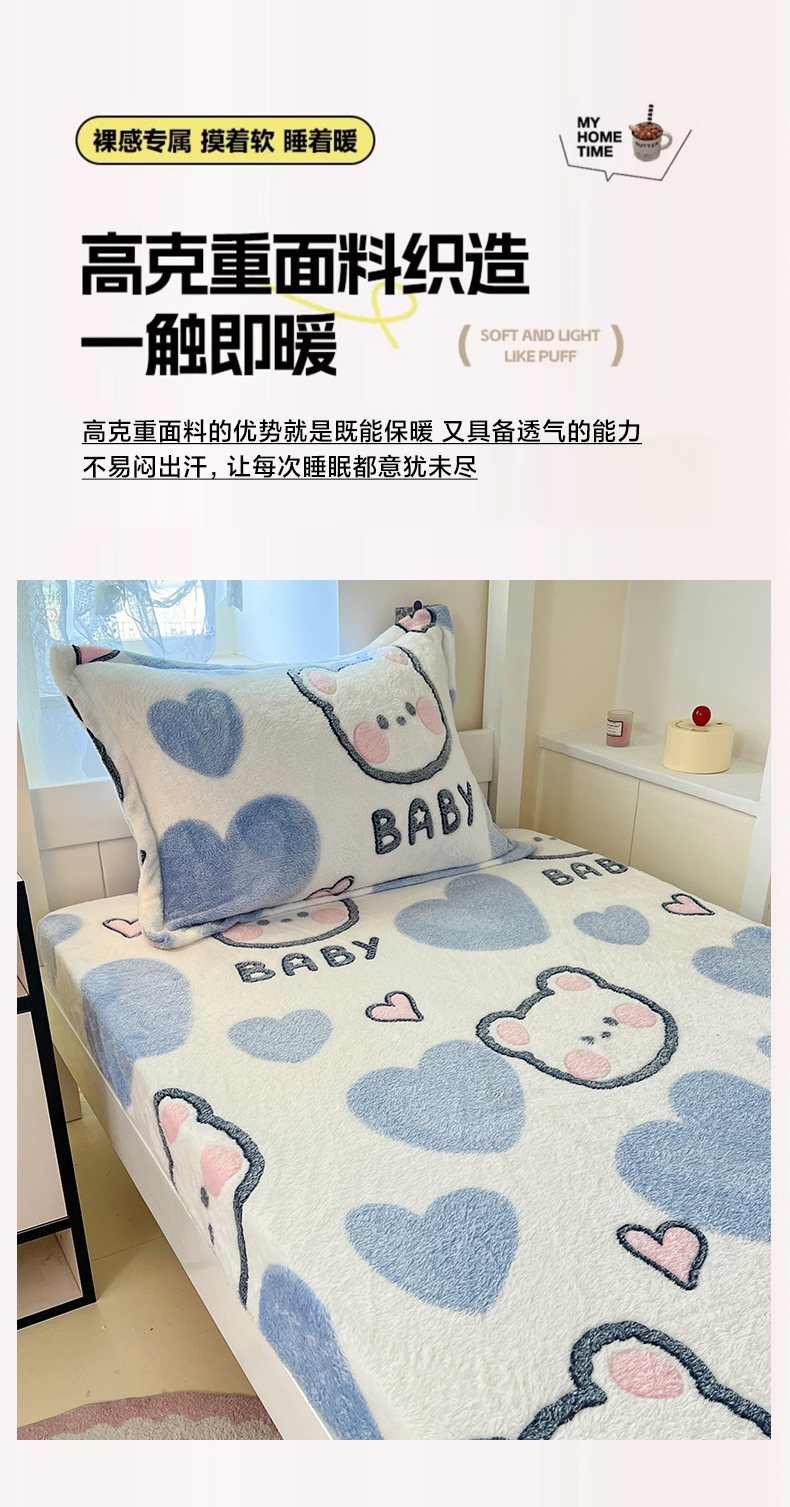川悦生活 2025新款雪花绒宿舍单床笠 床笠可爱熊
