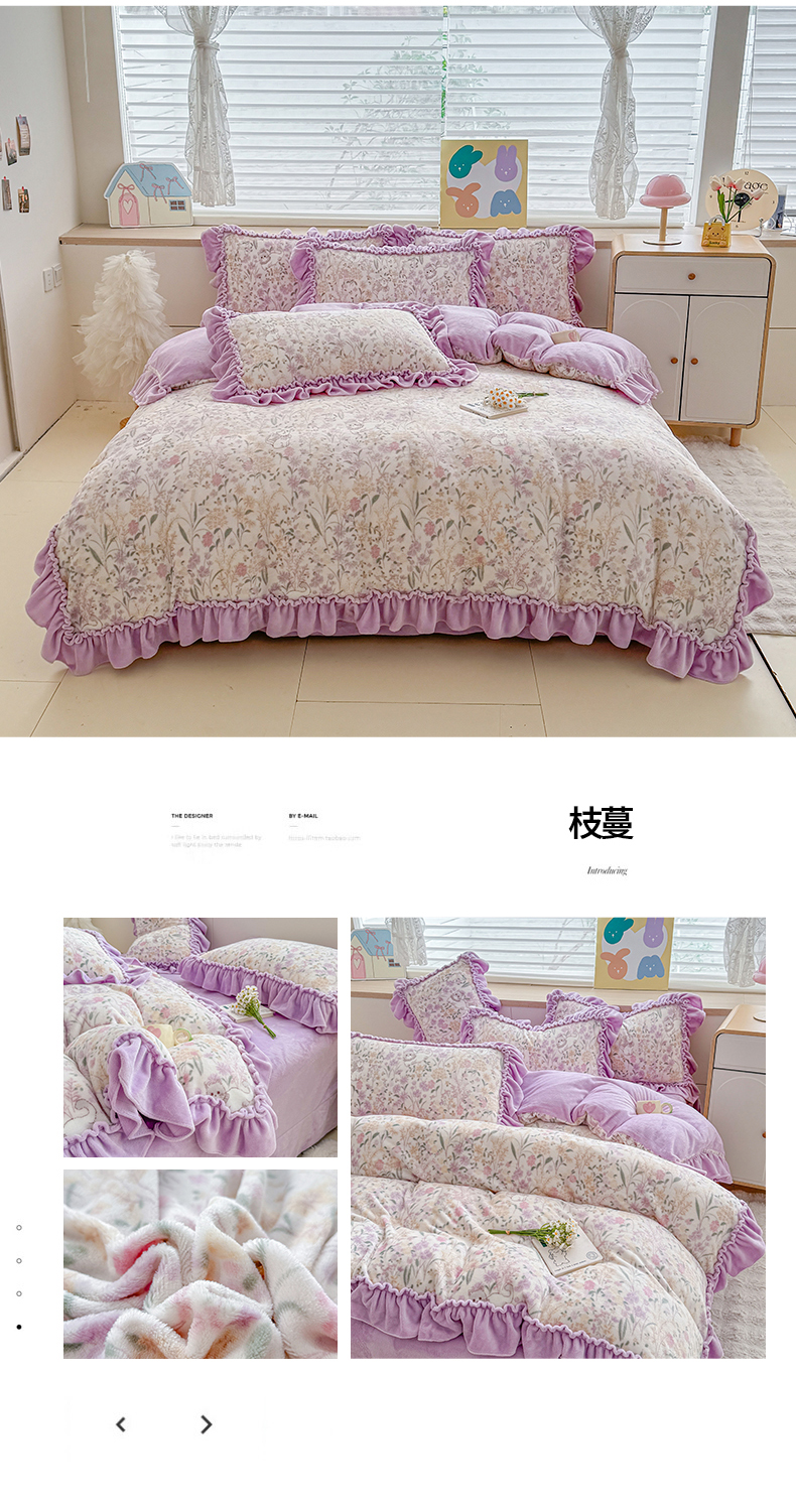商品名称:橘子家 2025轻奢法式花边公主风婴儿绒牛奶绒高克重四件套 枝蔓