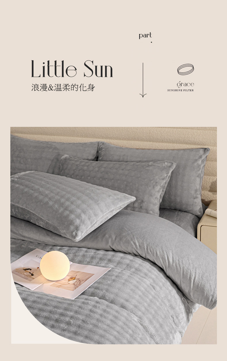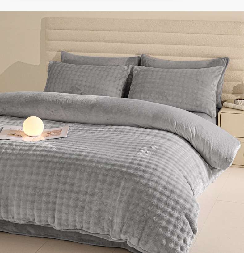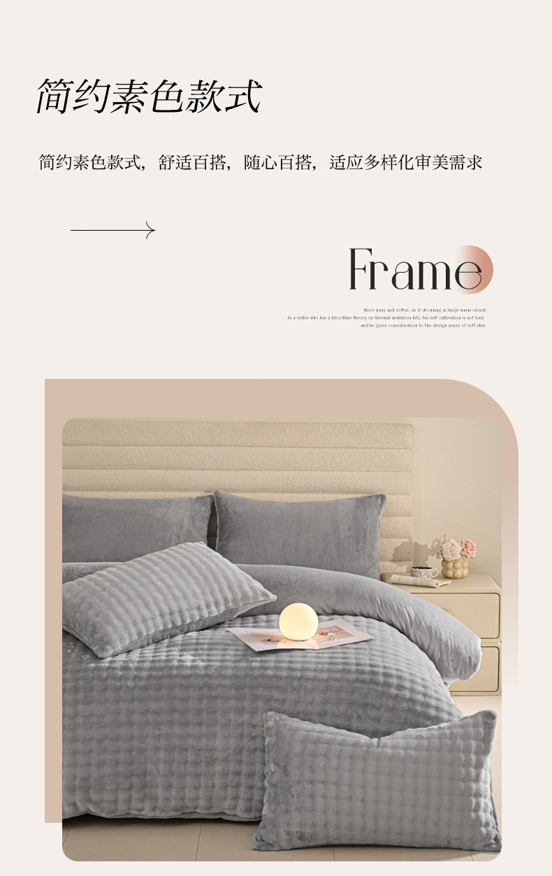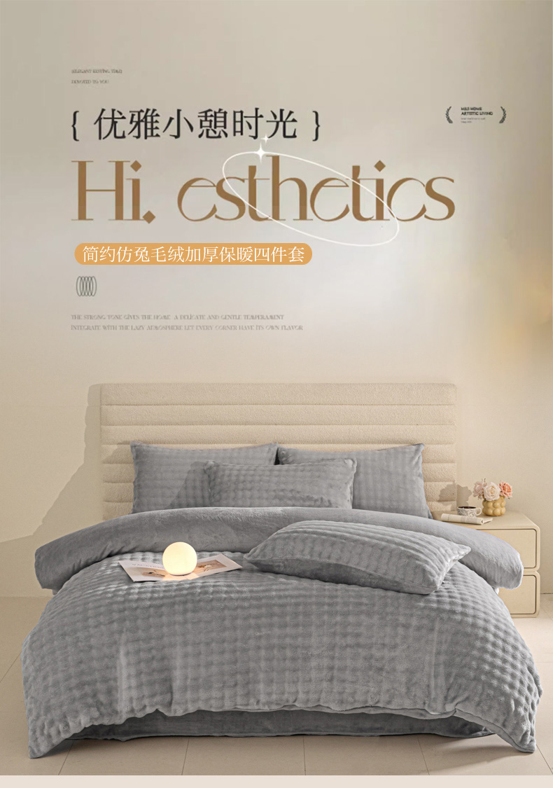 商品名称:眠博士 2025新款兔绒牛奶绒加厚保暖四件套-凯瑟琳场景一 凯瑟琳-暖灰