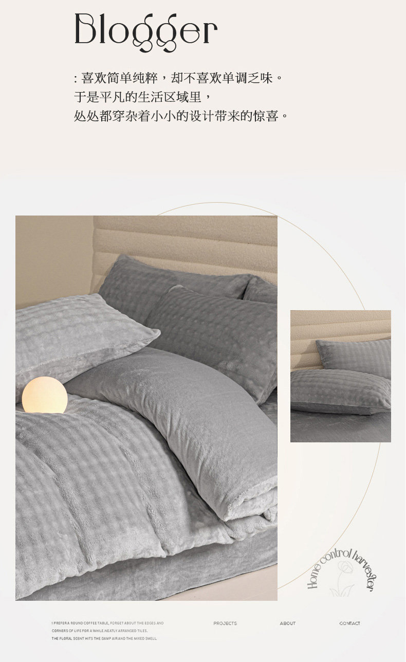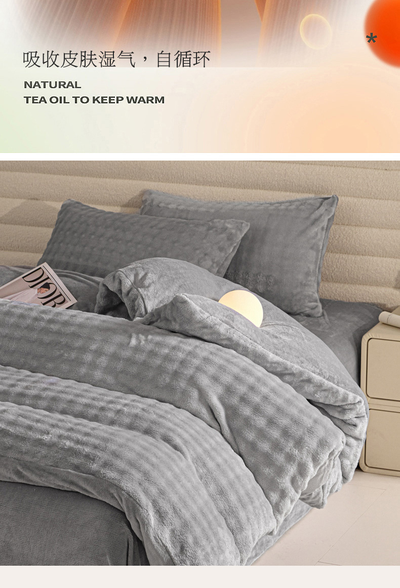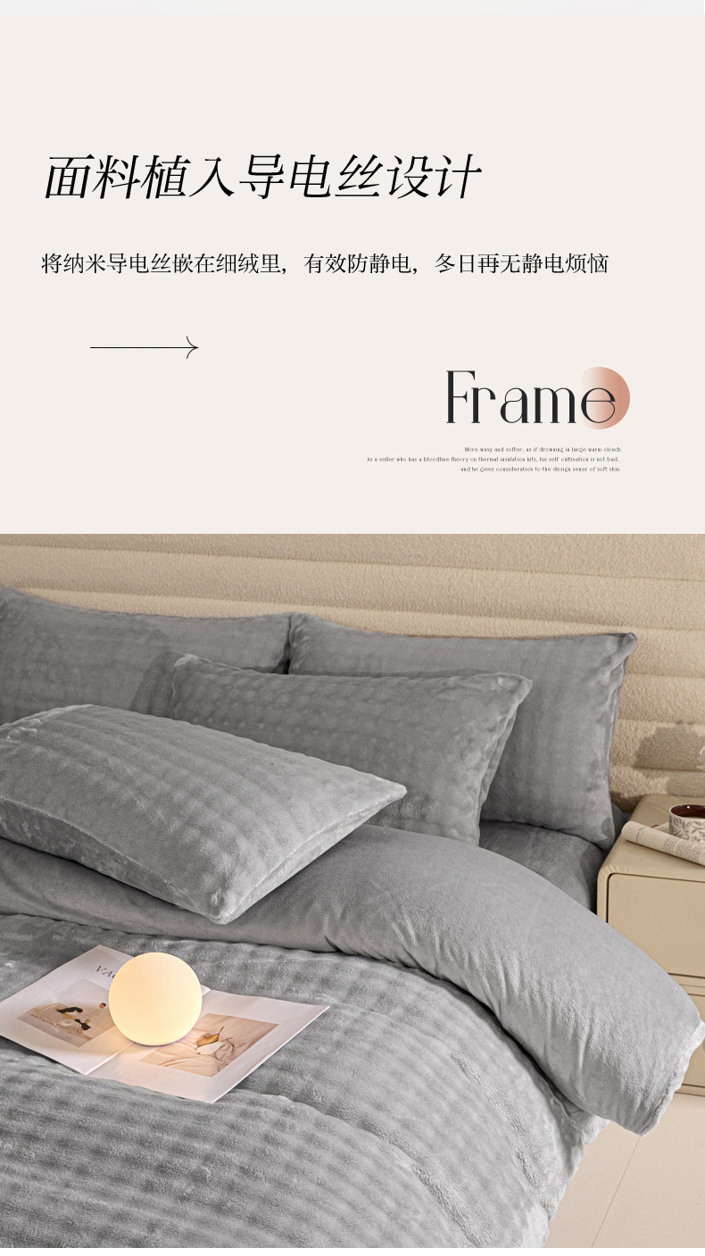 商品名称:眠博士 2025新款兔绒牛奶绒加厚保暖四件套-凯瑟琳场景一 凯瑟琳-暖灰