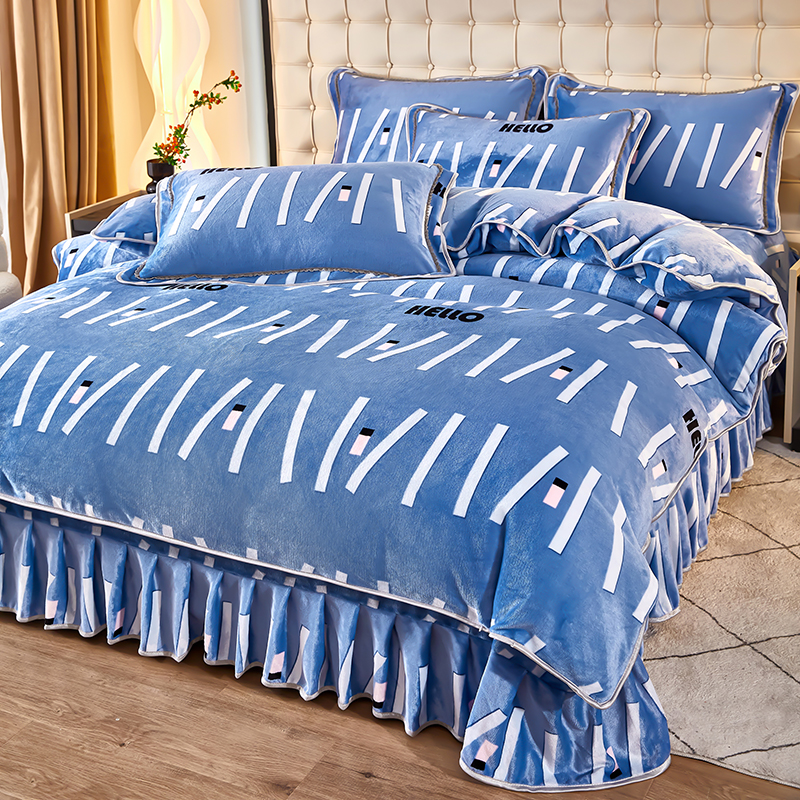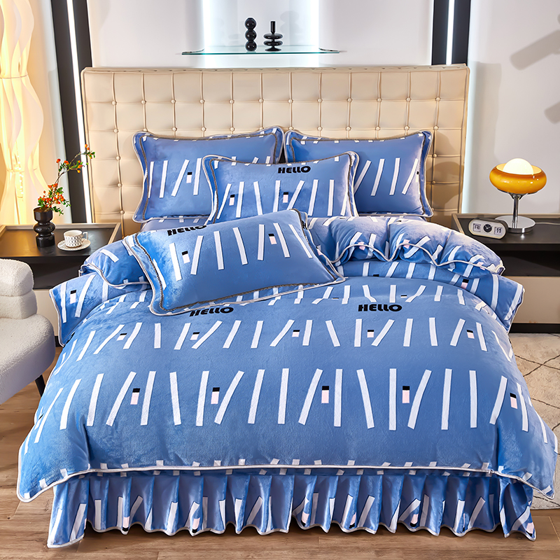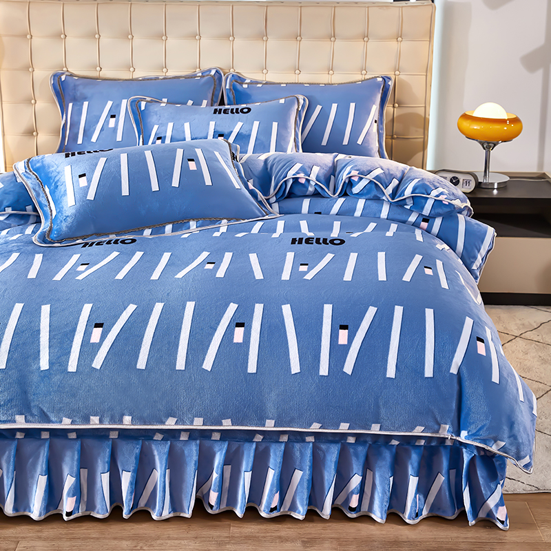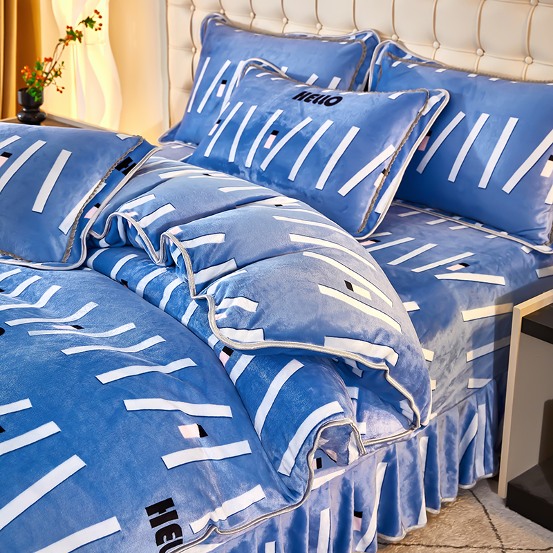 栩裕 2025新款7斤重牛奶金貂绒印花牛奶绒四件套 接力棒