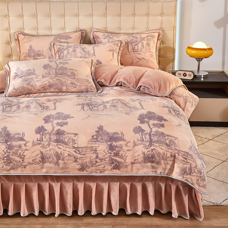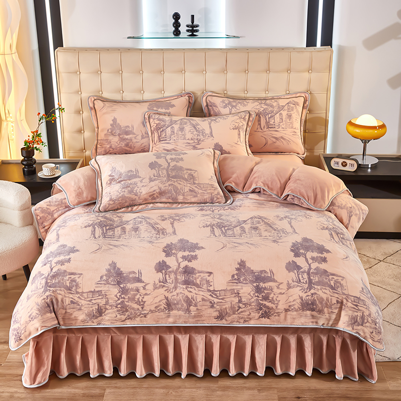 栩裕 2025新款7斤重牛奶金貂绒印花牛奶绒四件套 水墨江南