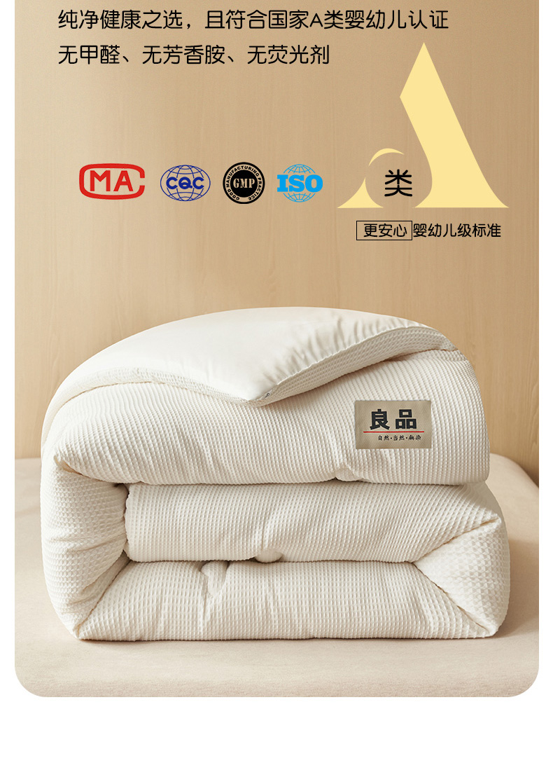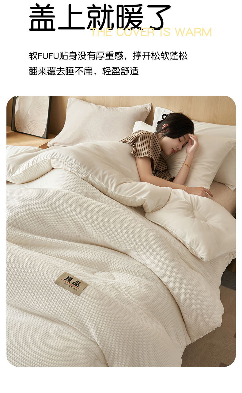 恬思语家纺 2025秋冬新品提花华夫格55%大豆冬被 被子被芯 素锦白