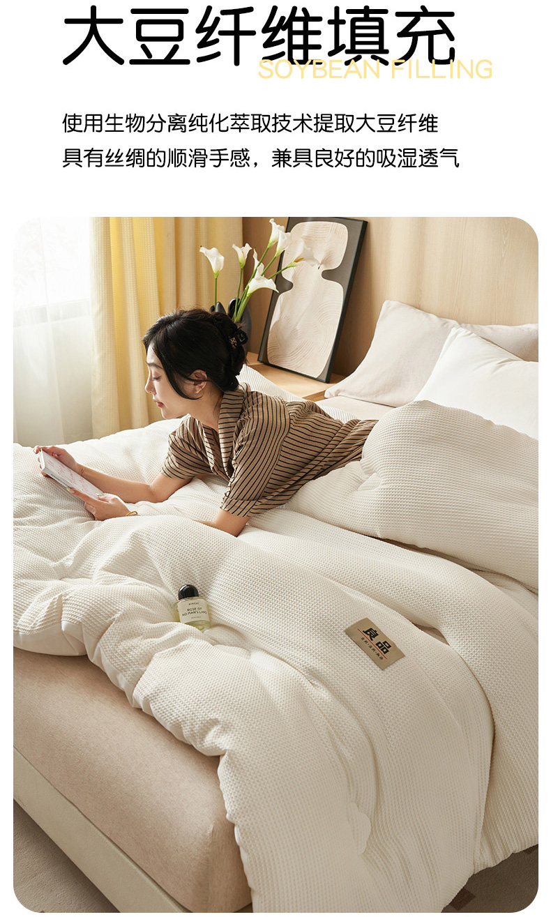 (总)恬思语家纺 2025秋冬新品提花华夫格55%大豆冬被 被子被芯,素锦白,素锦灰