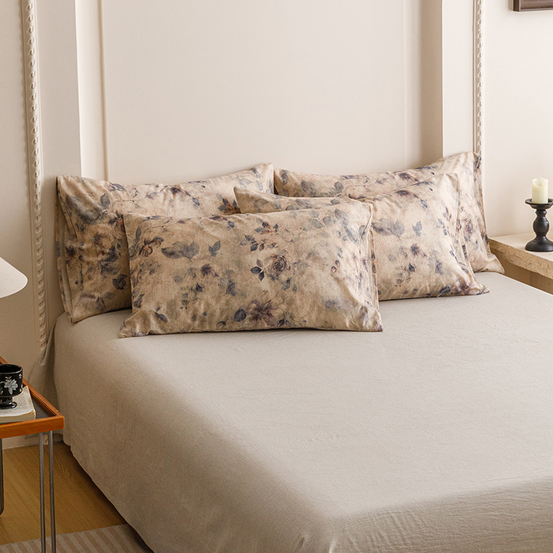 (总)爱思佳 2025新款棉麻数码印花单品床笠床笠单件-单床笠,本色,粉色,灰色,咖色,绿色